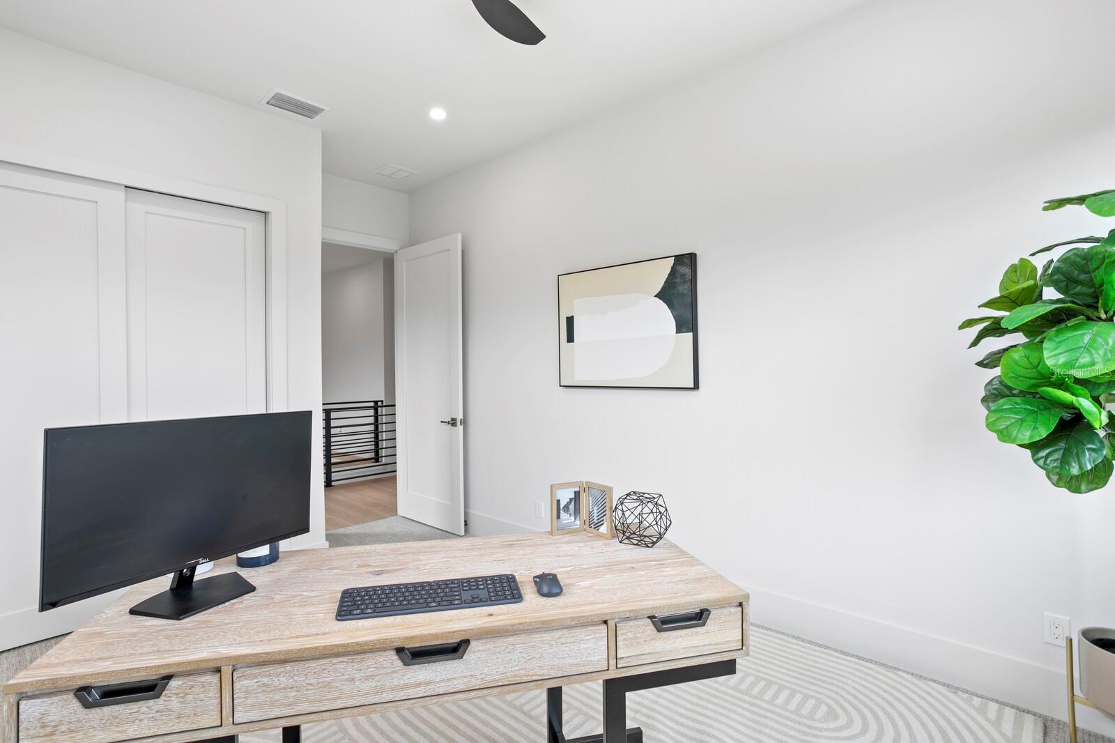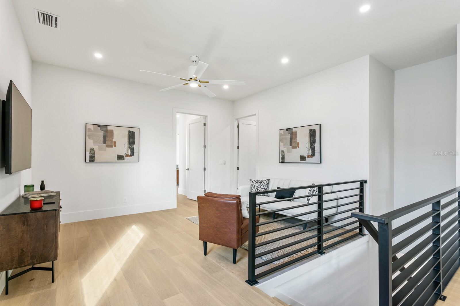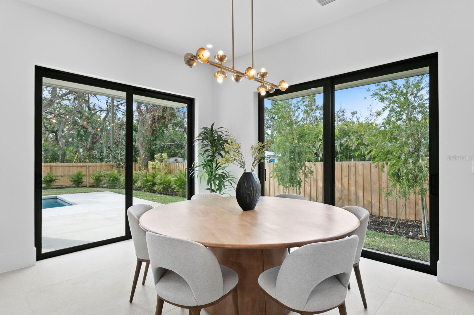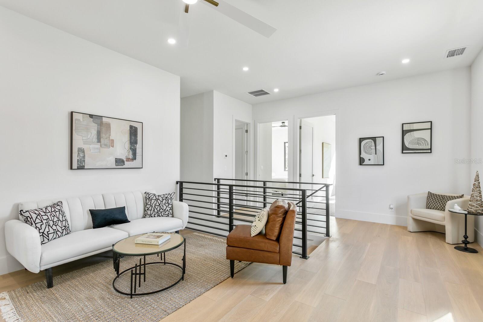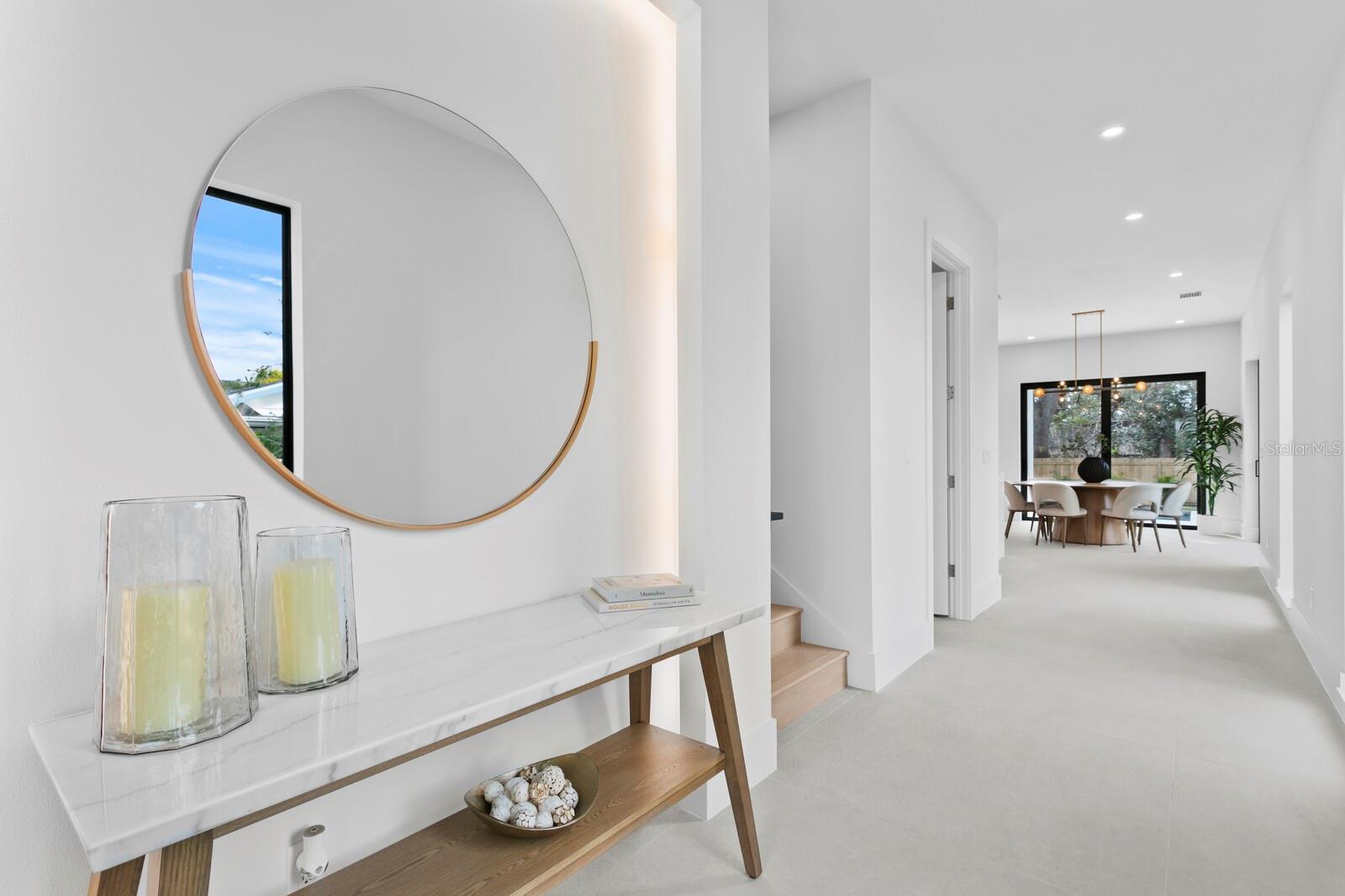 Discover the perfect blend of timeless charm and modern luxury at 2554 Arlington Street, nestled on a quiet cul-de-sac street in Sarasota’s highly sought-after Arlington Park neighborhood. Surrounded by nearby outdoor amenities, including a walkable park and community pool facility, this home offers both tranquility and accessibility. Approach the home and take in its custom landscaping and hardscaping, including young trees, palms, and fresh sod that frame the large front, side, and rear yards. Perfect for hosting gatherings, letting kids and pets run free, or simply relaxing, these outdoor spaces exude versatility. A brand-new fence ensures privacy, while the backyard features a stunning pool with a shelf and Pebble Tec finish, complemented by a covered lanai with a ceiling fan and tongue-and-groove detailing. An upstairs balcony offers a peaceful retreat with its own fan and beautiful views of the serene surroundings. Step inside to a thoughtfully designed interior, where Sherwin Williams Origami White paint, impact-rated energy-efficient windows and sliders, and large-format tile flooring create a clean and inviting atmosphere. The entryway welcomes you with its modern aluminum door, lighted niche, and tall windows. Throughout the home, engineered wood flooring, baseboards, and door casings highlight the meticulous craftsmanship. A dual-zone AC system ensures comfort year-round. At the heart of the home, the gourmet kitchen is as functional as it is stylish. Featuring brand-new stainless steel GE appliances—including a 36” French door fridge with dual freezer drawers, double oven, and microwave—this space was designed for both casual and formal occasions. Custom cabinets, a full-height quartz backsplash at the range, floating shelves, and lighted toe kicks add to the modern aesthetic, while the large island with its 3” mitered edge waterfall top serves as a focal point. Adjacent is a light-filled dining area, perfect for gatherings of any size. The powder room and laundry room elevate functionality and style, featuring custom cabinetry, lighted mirrors, quartz countertops with 3” edges, and brushed gold hardware. The laundry room includes a brand-new GE washer and dryer, utility sink, and air-conditioned storage, with direct garage access for added convenience. The primary suite is a true retreat, complete with a private lanai, engineered wood flooring, a decorative chandelier, and an oversized 8-foot-wide sliding glass door. Two spacious walk-in closets lead to the spa-inspired primary bathroom, which features a freestanding tub, dual showerheads in a walk-in shower with a custom glass enclosure, quartz countertops with a 3” edge, floating cabinets, lighted mirrors, and decorative sconces. Upstairs, the home offers three additional bedrooms, a versatile loft, and access to the upstairs balcony with its tongue-and-groove ceiling detail and custom rail. Bathrooms throughout the home feature neutral finishes, brushed gold hardware, custom floating cabinets, lighted mirrors, and tile surrounds at the showers. Perfectly situated just minutes from Sarasota’s vibrant downtown, top-rated schools, and world-renowned beaches, 2554 Arlington Street offers the ultimate in modern living. From its thoughtful design to its high-end finishes, every detail of this home has been curated to provide a seamless blend of beauty and functionality.