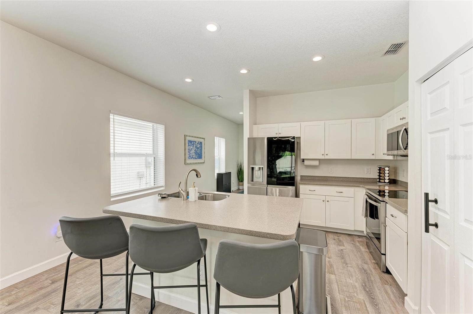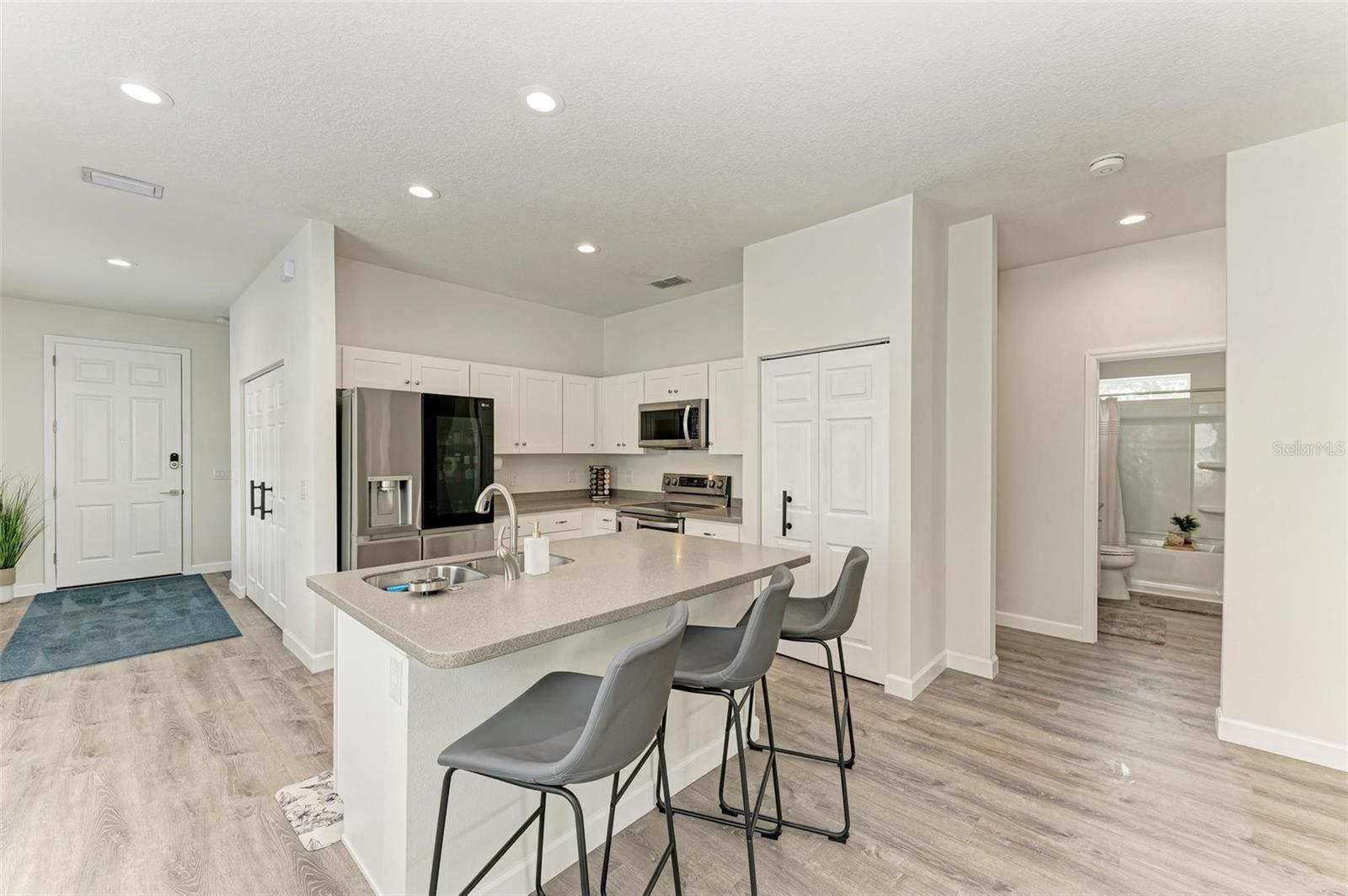 Contemporary and clean, this less-than-three-year-old home in Sarasota will not last long! With 3 Bedrooms, 2 Bathrooms, and a 2 Car Garage, this home more than checks all the boxes. This open floor plan features vinyl floors throughout (no carpet!), high ceilings, and a great room concept. The Kitchen is open and bright with neutral white shaker-style cabinets, Corian counters, an island with bar seating, and upgraded Stainless Steel appliances. Built with superior building standards this home features Insulated Concrete Form (ICF) walls and impact-resistant hurricane windows. Hammock Place is a quaint, gated community with a low HOA that includes lawn maintenance, and homes rarely come on the market. The highly sought-after location is centrally located in Sarasota - just minutes to I75, UTC Shopping, or downtown Sarasota and less than 10 miles to award-winning beaches.