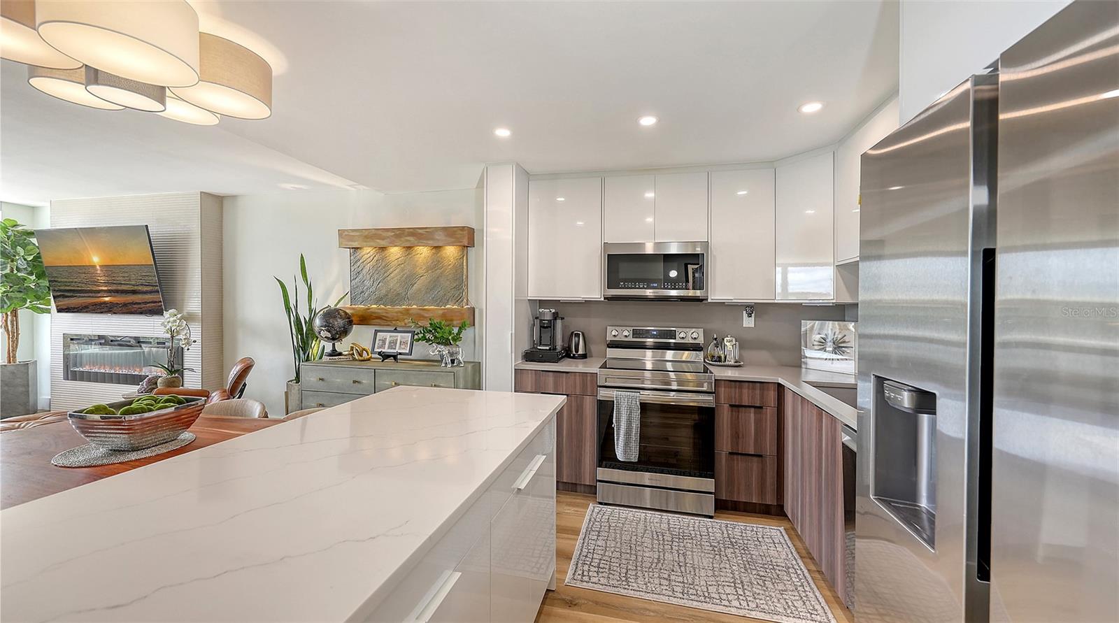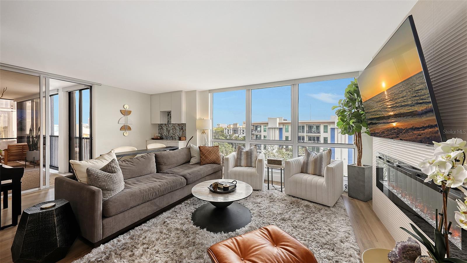 PRICED TO SELL! Motivated Seller! Prime location and downtown living at its very best! Newly renovated, completely move in ready - designer updated downtown condo with convenient location! Custom high end wood cabinetry throughout kitchen, bathrooms, closets and dry bar areas. Custom tile work, electric fireplace, electric uv/blackout shades on all sliding glass doors and windows. Updated appliances, beautiful lvp and hardwood floors with ample built in storage in each room. At sunset, watch the world go by on your peaceful patio with green space. Each nook and cranny meticulously planned to maximize every inch. Friendly building, with resort style amenities to spare. Large swimming pool and quiet sundeck, community fire pit, gazebo and grill, well equipped fitness center with machines and free weights, entertainment room, extra storage and covered under building assigned parking. Structurally sound building, on the hospital grid with a new roof within the last 2 years. Be in the action of downtown, yet tucked away on a quiet cul-de-sac of Gulfstream Ave. City views with building facing beautiful Sarasota Bay, 5 minute walk to Marina and city island, 3 minute walk to burns court, 7 minute walk to all downtown shops and restaurants. Come see for yourself, what a gem this is!