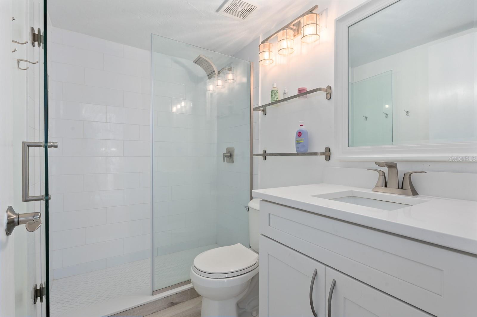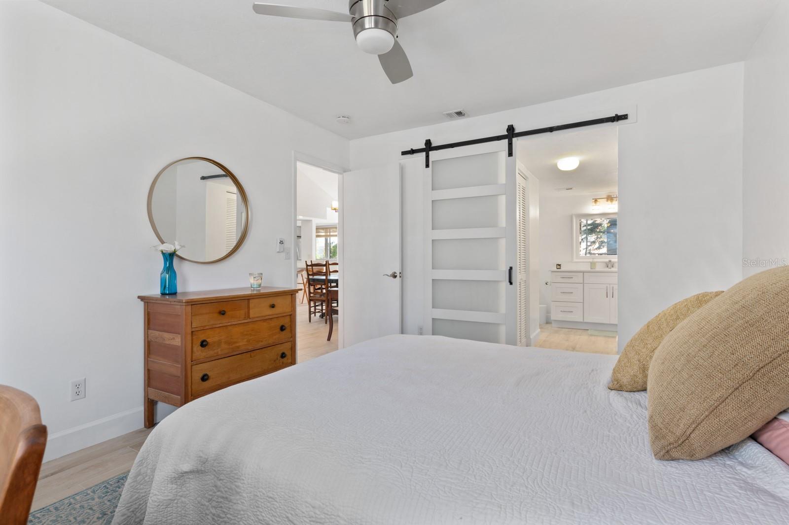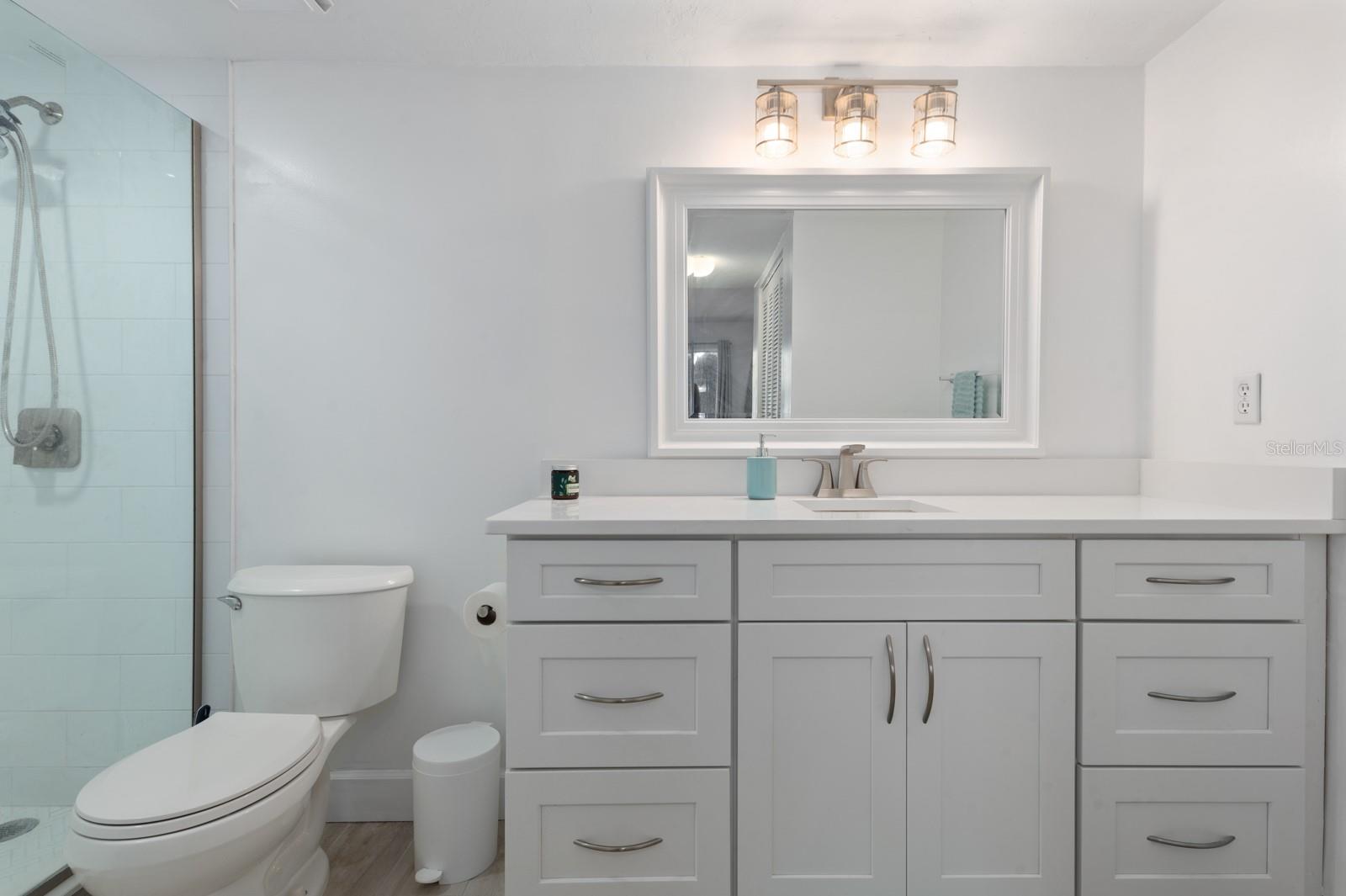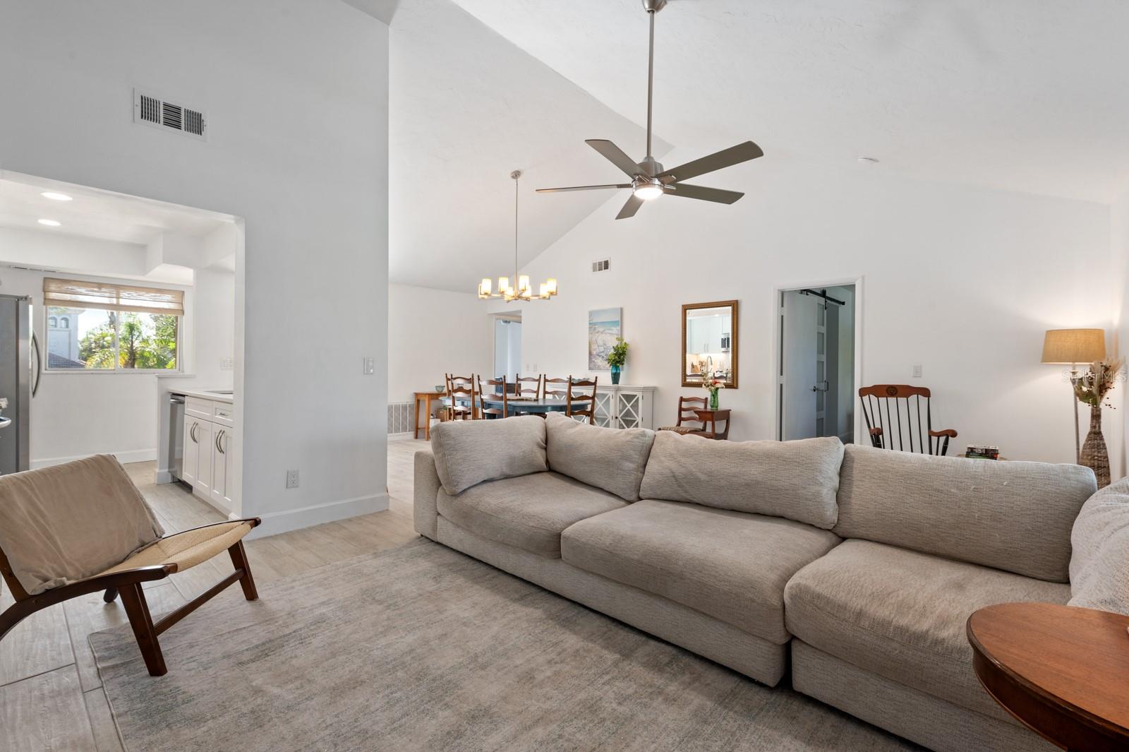 Experience the best of waterfront living in the exclusive, gated Pelican Cove Community. This unit is light and bright and move-in ready! The newly remodeled kitchen boasts quartz countertops and wood cabinets complemented by top-of-the-line stainless steel appliances with open-concept access to both the dining and living areas. Living area features a fireplace wall with built-in bookcase and cathedral ceiling. Bathrooms are also completely remodeled with walk-in showers, glass surrounds, and wood cabinetry with quartz countertops. Hurricane glass-enclosed lanai overlooking the beautiful pool acts as a guest room, office, and/or peaceful meditation/yoga/workout studio. Stacked LG full-sized washer/dryer. Fresh paint and wood-look porcelain tiles throughout, plenty of closet space, and updated water heater (2021). Spread across 75 acres of pristine, gated waterfront property, Pelican Cove is a tropical oasis teeming with amenities and friendly neighbors. Discover the 86-slip protected boat harbor with unbeatable slip fees and lovable manatees directly across the intercoastal from Siesta Key and the newly reopened Midnight Pass providing Gulf access. Launch your kayak or canoe from one of three docks specifically designed for these smaller vessels. Enjoy the six heated swimming pools, a hot tub, three clubhouses, fitness center, lighted tennis and pickleball courts, shuffleboard, basketball, dog walking areas, and over 5 miles of walking trails and boardwalks. Spend your time bird watching in this bird sanctuary and experience spectacular sunsets almost every evening from several platforms along the waterfront. Unleash your creativity with art studios, a pottery classroom, woodworking, and sculpting, or attend classes at Pelican Cove University. Choose from over 37 clubs, including photography, fiber art, biking, yoga, Tai Chi, culinary arts, and card clubs. The community also offers evening jazz and classical music concerts, ensuring an enriched lifestyle for all. Award-winning landscaping and superior management set Pelican Cove apart as the ultimate adult sanctuary. Just minutes from Siesta Key Beach, Turtle Beach, fine dining, and shopping, this stunning condo is your ticket to a life of luxury and leisure by the bay.