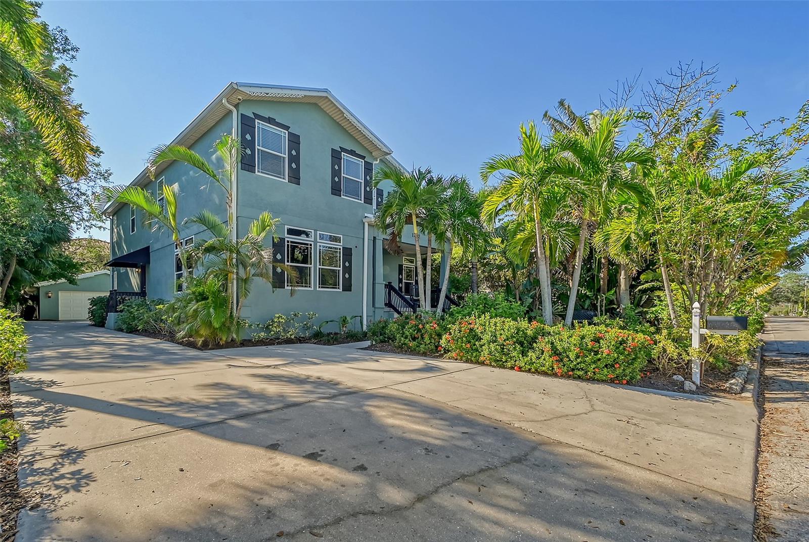 Welcome home to unparalleled luxury in Southside Village, West of Trail. From sunrise coffee to sunset cocktails, this stunning three-bedroom multi-level single-family residence offers the ideal blend of comfort and entertainment living in the heart of it all. Centrally located and within short distance to Southside Village shops, restaurants, medical care facilities, Selby Gardens, downtown Sarasota, Sarasota Bay Front, Marina Jack and a short drive to St. Armands, Lido Key and Siesta Key beaches, and desirable schools, this home promises the grandiose lifestyle. Your first level embodies an entrance foyer, with an open voluminous formal living/dining/kitchen room setting, displaying a fireplace with decorative stones wall running from floor to ceiling with multiple windows providing an ambiance of light to the surrounding environment. The owner’s and bath suite features a walk-in shower, dual vanities, granite countertops, an expansive walk-in closet with customized wooden shelves, cabinets, drawers and plenty of storage. Your second level features two bedrooms with a Jack and Jill bath, an open loft with a billiards pool table available for the new owners, and a bonus front room with a mini wet bar and TV for entertainment. This home comes with a new metal roof, trey ceilings, hardwood floors throughout, ceramic tile in common areas, crown molding throughout entire perimeter of property, granite counters, stainless steel appliances, built-in oven, range and microwave, a walk-in pantry, a breakfast bar, a laundry room, a two-car detached garage in the back of property with a stainless-steel refrigerator and five-car driveway spacing. Delight in a covered front entrance porch and courtyard with lush landscape and tropical plants, back entrance porch with a private fenced backyard and easy maintenance landscaping, surrounded by tropical plants for relaxation. Welcome home!