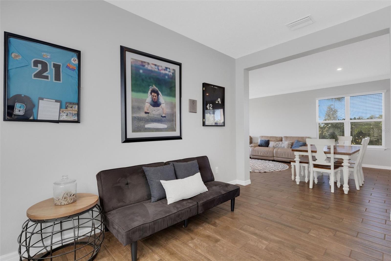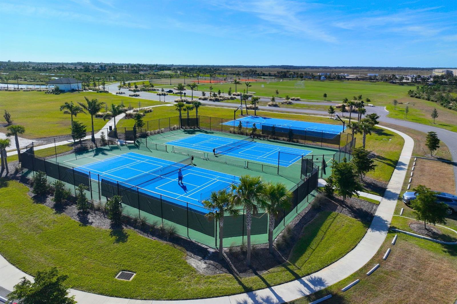 Welcome to your private, pristine oasis in Skye Ranch, one of Sarasota’s most sought-after communities with premium amenities. This beautiful St. Vincent model from Taylor Morrison features 3 bedrooms, a den, and 2.5 baths, with an open floor plan and a separate primary suite located at the back of the home. Not a single square foot is wasted in this floor plan, making it feel much larger than its 1,790 sqft upon entry. Built in 2021, this home boasts a number of builder upgrades, including tile flooring throughout, quartz countertops, an upgraded backsplash, crown molding, and an upgraded appliance package. The exterior has also been improved with new front yard landscaping and a fenced backyard. The back patio features a screened-in lanai with extra lighting and outlets, perfect for an outdoor TV. Both the interior and exterior of this home embody Florida living at its best. Cassia Skye Ranch offers a host of amenities, including a resort-style pool, a lap pool, a fitness center, indoor and outdoor basketball courts, pickleball, volleyball, baseball fields, soccer fields, and more! Skye Ranch School, located next door across the street from Lorraine, is scheduled to open in August 2025!