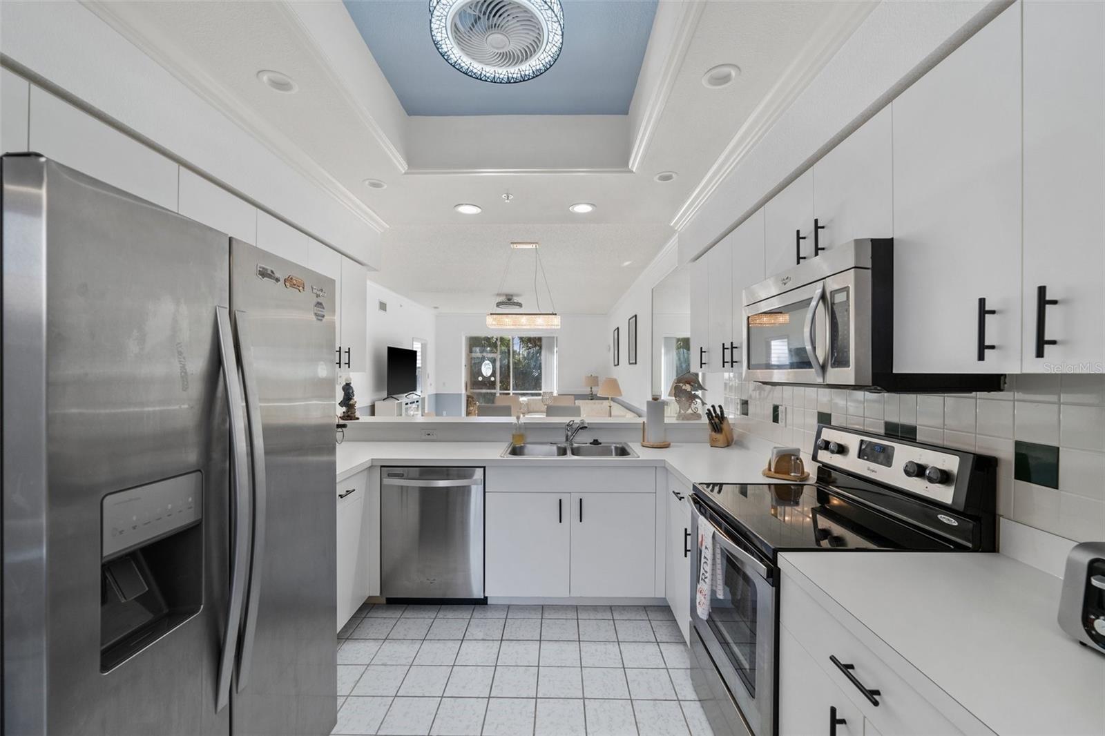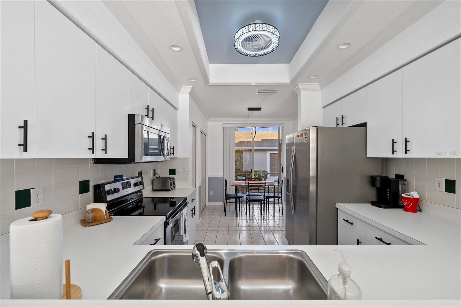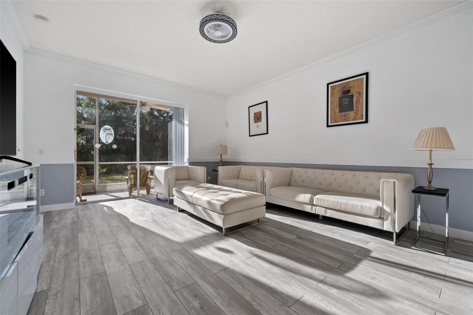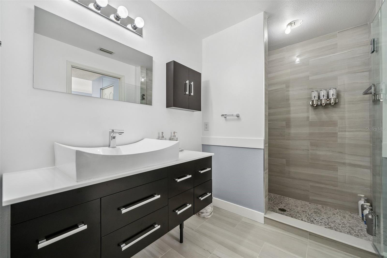 Remodeled, contemporary ground floor condominium located on Castle Point Drive in Stoneybrook Golf & Country Club is now on the market. This meticulously maintained and fully furnished two-bedroom, two-bath unit is situated within the highly sought-after golf and tennis community of Stoneybrook. The condo features newly installed luxury wooden laminate flooring throughout, enhancing ease of living, while updated lighting and ceiling fans contribute to the overall appeal. The master en-suite bathroom serves as a welcoming retreat, complete with a spacious, modern tiled walk-in shower, an updated sink vanity, and a linen closet. The master bedroom is equipped with two walk-in closets and a glass sliding door leading to an additional glass-enclosed lanai, providing extra living space year-round. Enjoy the serene and private views of the preserve, surrounded by abundant nature. The second remodeled full bathroom includes a luxurious vanity and a tub/shower combination. The guest bedroom also features a walk-in closet for added storage convenience. Additionally, there is a dedicated laundry room equipped with shelving and a full-size washer and dryer. Condo has a deeded 1 car garage with plenty of room for your car, beach toys and sports gear. Walk out your front door to your own heated community pool and screened in deck area to visit with neighbors and enjoy the sunshine. Stoneybrook Golf and Country Club is an established community with top-notch amenities that include an 18 hole Arthur Hills designed golf course, lighted Har Tru tennis/pickleball facilities, well-stocked pro-shop, bocce court, an additional heated pool and spa, full service restaurant/bar/meeting rooms, well-equipped fitness center, yoga/dance room, sharing library, walking/biking trails, fishing spots, and loads of planned activities! Stoneybrook is a prime location close to the Legacy Trail, minutes to area beaches, shopping, the arts, restaurants and all Sarasota and Venice has to offer! toneybrook offers its members more than a residence but a social lifestyle to enjoy for years to come. Make your appointment now to see this awesome condo/life style. Come and discover Florida living at its finest!