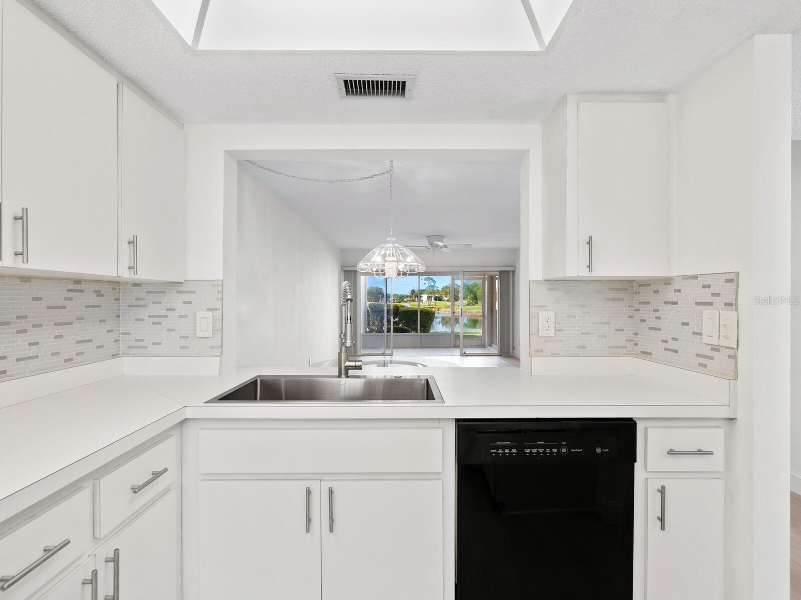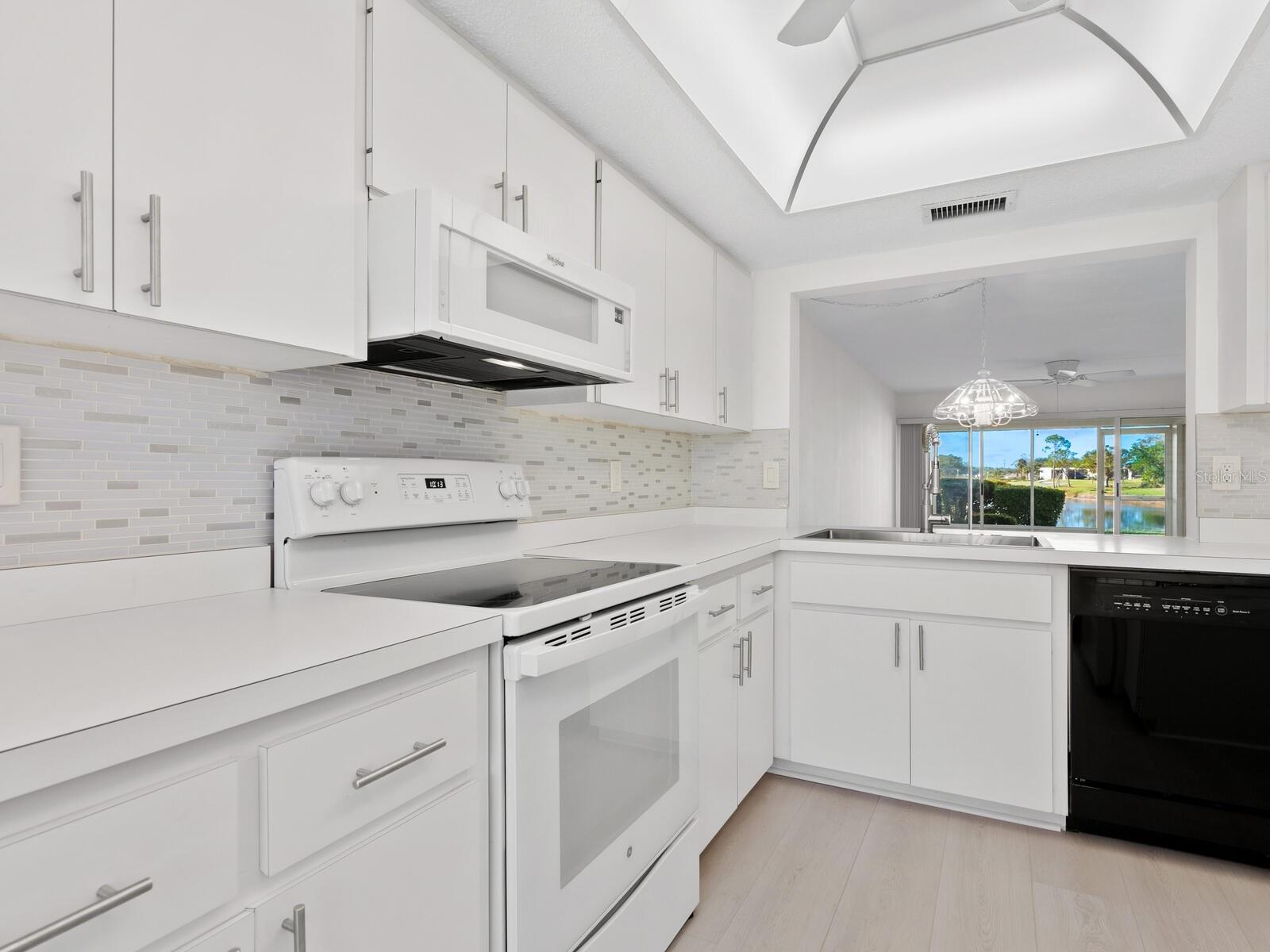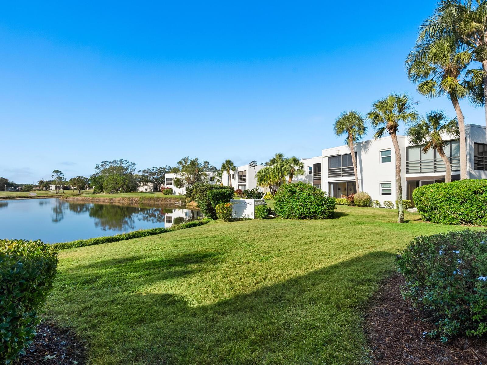Best two bedroom condo available in The Meadows. Ground floor convenience. Tucked away in the Meadows. Outstanding top to bottom all white, light, bright and awesome long views of entire lake and fairway. Newly painted luxury vinyl plank flooring, new HVAC, new bath vanities, new glass tiled kitchen backsplash, beautiful kitchen sink, newer appliances. Nothing to do but get furnished and move in to start enjoying The Meadows lifestyle.