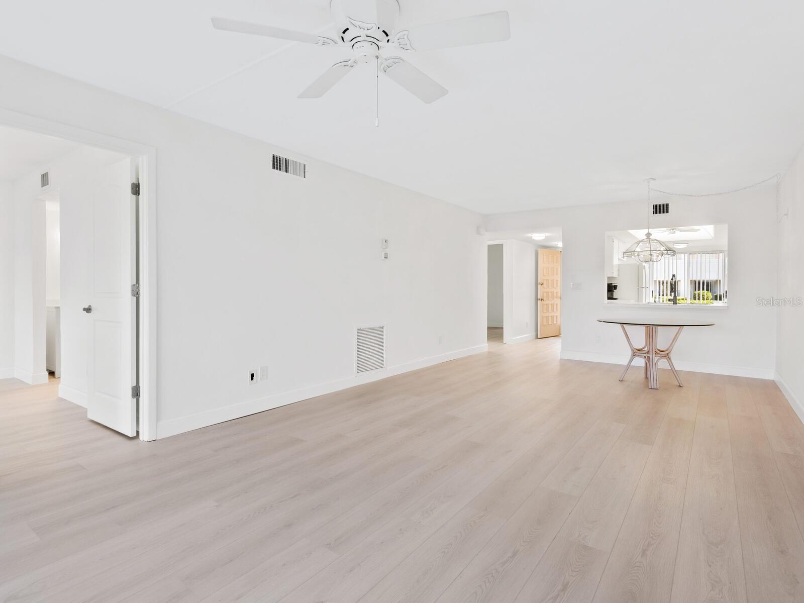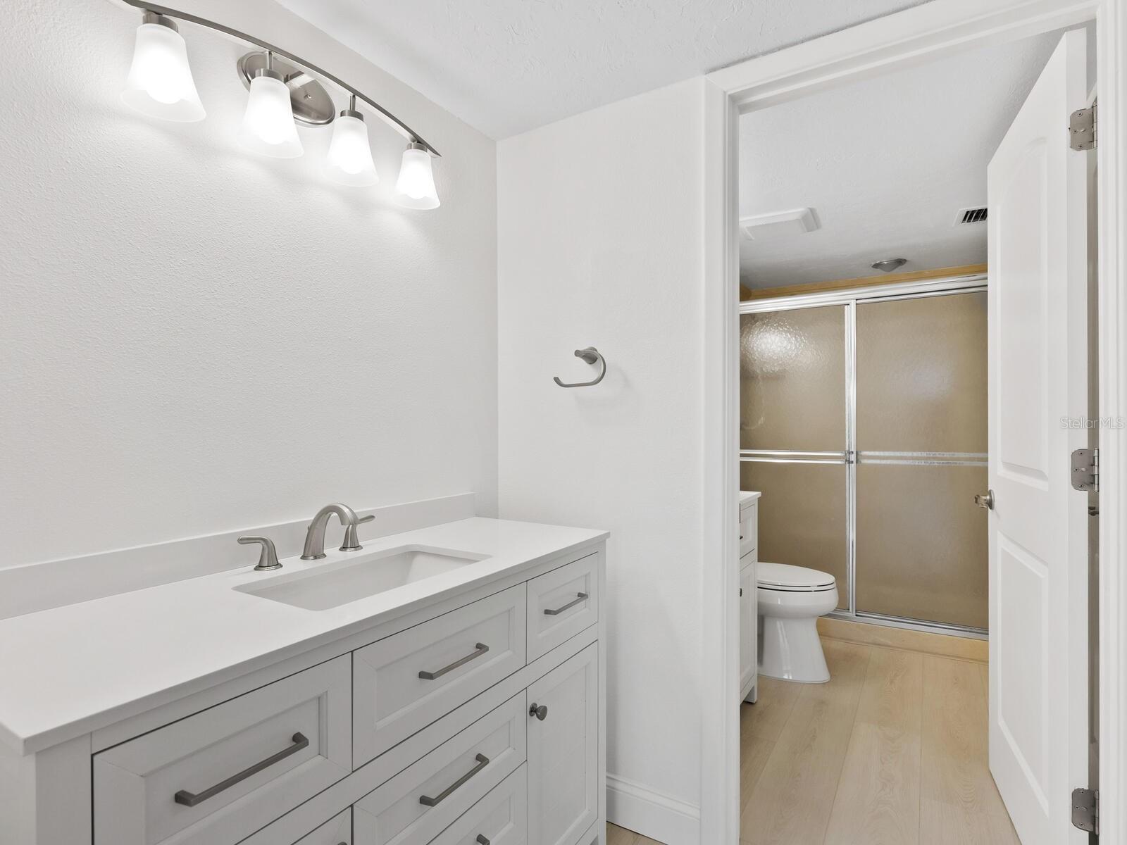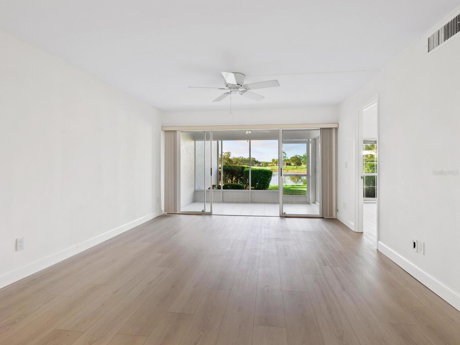 Best two bedroom condo available in The Meadows. Ground floor convenience. Tucked away in the Meadows. Outstanding top to bottom all white, light, bright and awesome long views of entire lake and fairway. Newly painted luxury vinyl plank flooring, new HVAC, new bath vanities, new glass tiled kitchen backsplash, beautiful kitchen sink, newer appliances. Nothing to do but get furnished and move in to start enjoying The Meadows lifestyle.