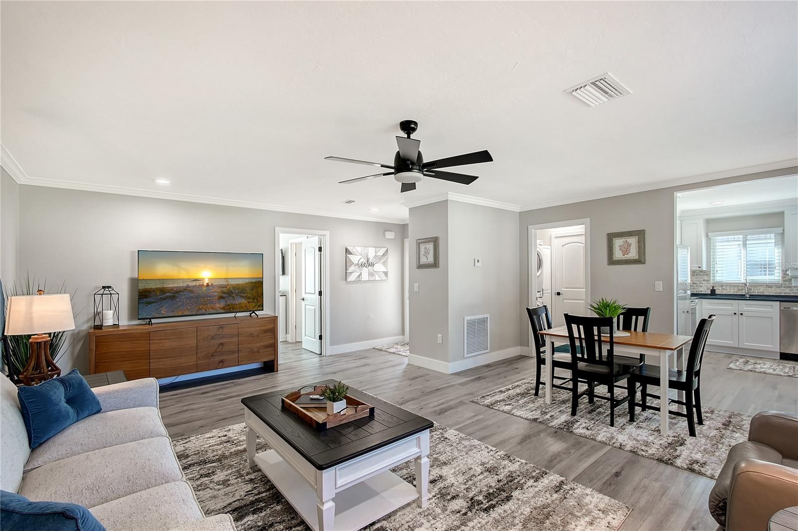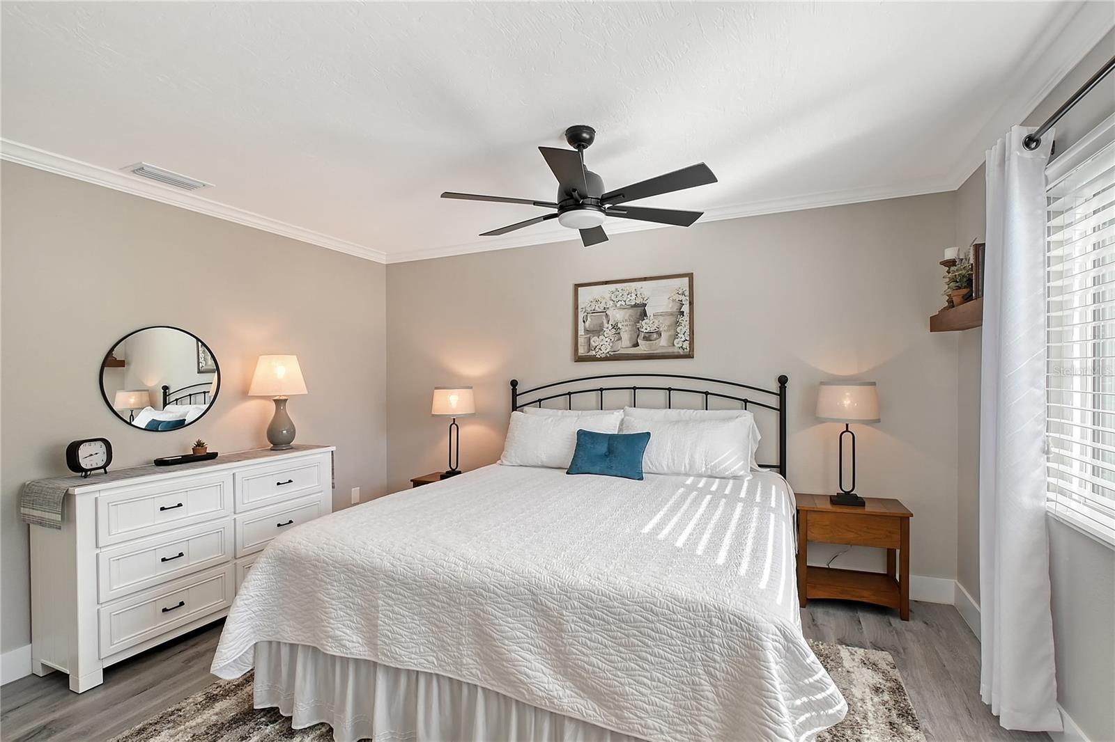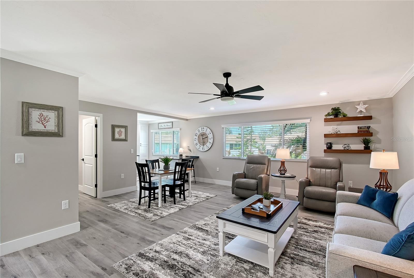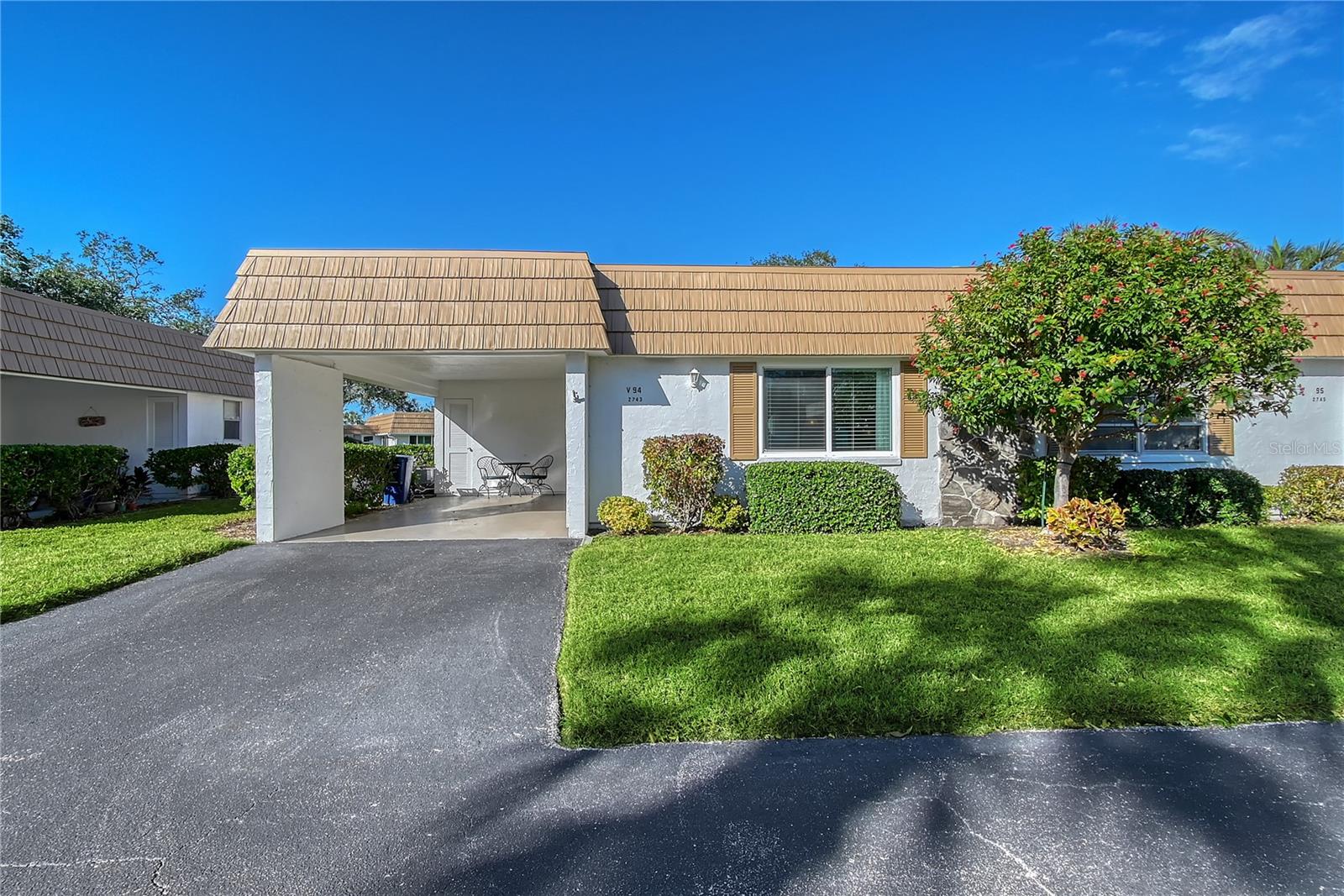 MUST SEE! Unbelievable! Wow! $31,000 Price Reduction! Must see this fantastic Villa! Pristine, Immaculate, Move in Ready and simply Fantastic! Recently updated and fully furnished, this one bedroom with 1 1/2 bath condo is truly ONE OF A KIND! Impact windows and door, roof and A/C unit were all replaced in 2020. Exterior freshly painted in 2024. Interior has been completely updated with vinyl flooring throughout, interior walls removed to create large open floor plan, crown molding throughout, LG stacked washer/dryer, neutral color palette, kitchen updated with new cabinets, stainless appliances, quartz counters, built in breakfast table, new window treatments with wood blinds, new ceiling fans and light fixtures. The Main bedroom suite offers a full comfort kingsize bed, dresser, bedside tables, wall hung TV, walk in organizer closet and an ensuite bath with shower, assist bars and bench, vanity and lighted mirror. The recently purchased furniture package includes 65" inch TV in Living area, Lazy Boy queen size pull out sleeper sofa, two luxury Lazy Boy leather recliners, credenza cabinet and dining table with four chairs. (Furniture Package Valued at $30,000). Strathmore Riverside is an over 55 community offering boat docks in its own marina in a well protected boat basin just off of Phillippi Creek and the Intracoastal Waterway. Boat slips are available to rent, with electric and water. This Active (over 55) community offers a clubhouse, shuffleboard, fitness area, large heated pool and so much more. A short drive to Siesta Key, #1 in USA, offers fantastic sunsets and miles of quartz crystal sands to walk and enjoy. A short drive to Downtown Sarasota to enjoy The Florida Studio Theaters, Main Street Shopping and Restaurants and so much more. A fantastic Place to live and enjoy vibrant Sarasota Lifestyle.