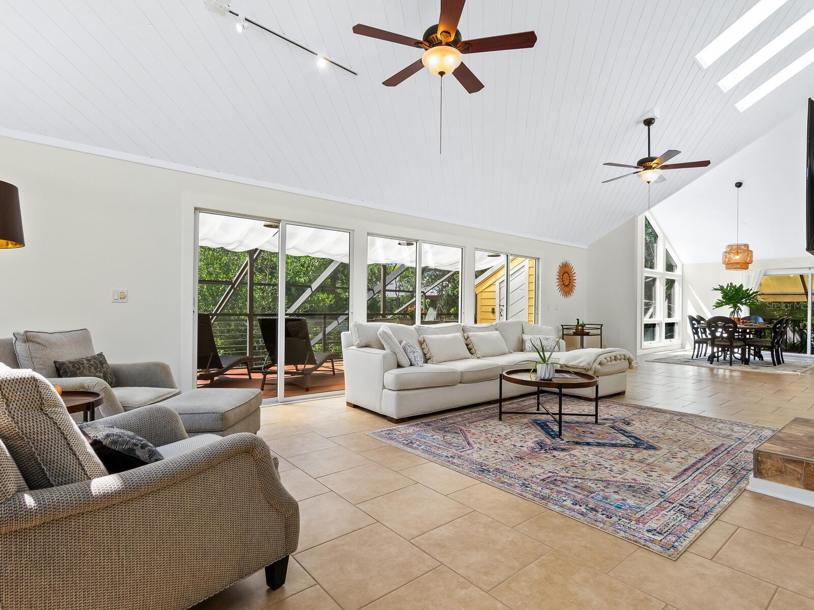 Welcome to this expansive coastal residence located in South Siesta Key Village, offering seamless access to both the Gulf and Sarasota Bay. Encompassing 3,681 square feet of interior space and 6,751 total square feet, this three-bedroom, three-bath home is designed for elevated waterfront living. The primary bedroom features a spa-style bath with double sinks, a large soaking tub, an expansive walk-in shower, and built-in closet systems. The kitchen includes a dedicated bar area, pantry, and direct access to the elevator. The light-filled living room offers vaulted ceilings, a wood-burning fireplace, and access to multiple balconies, providing amazing sunset and sunrise views. Additional interior highlights include two air-conditioned storage rooms, two oversized garages, and a light filled loft with many uses. A full bedroom and living room suite on the ground level opens directly to the heated, south-facing pool. A covered and screened patio with a six-person jacuzzi enhances the outdoor living experience. Boaters will appreciate the 10,000-pound boat lift, jet ski float, and direct, bridge-free access to Sarasota Bay within minutes from your dock. The home is a short stroll to Point of Rocks beach access and within close strolling proximity to the dining and entertainment options of South Siesta Key Village. The tropical landscape has been completely updated and this home is move in ready and a perfect escape from the northern winters.