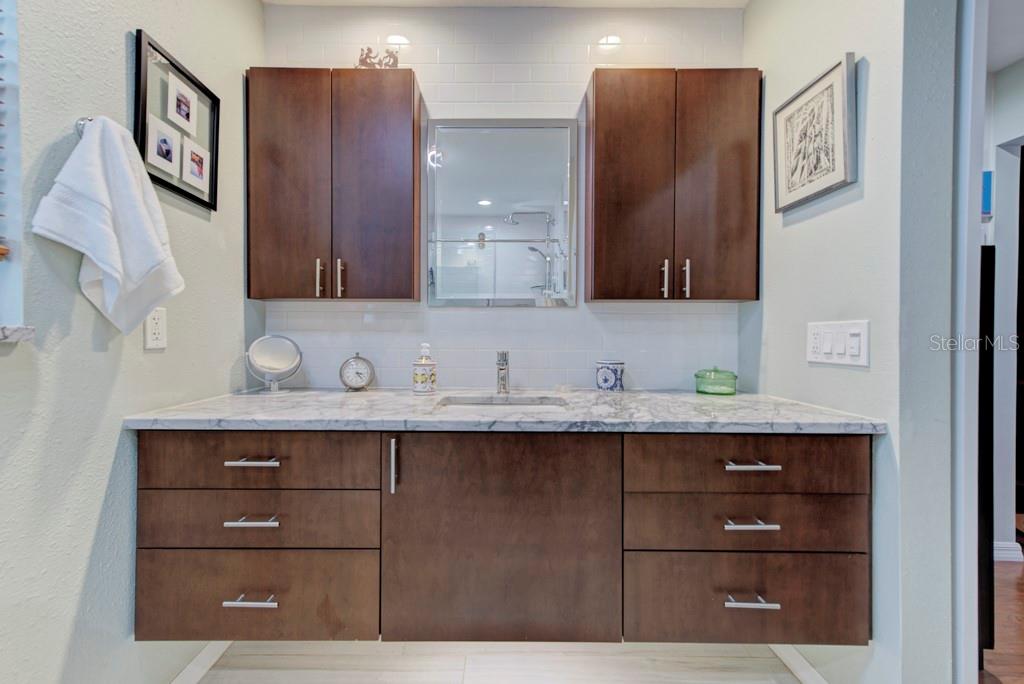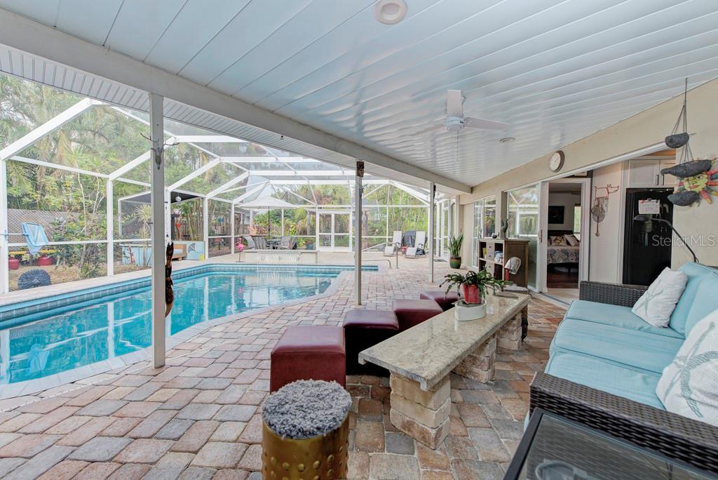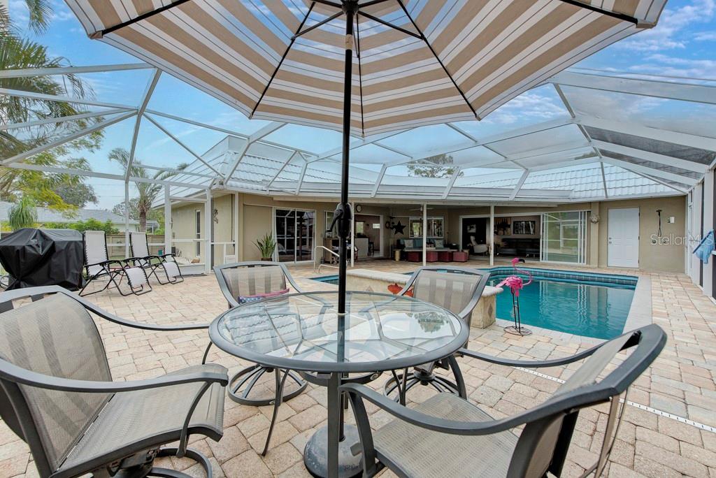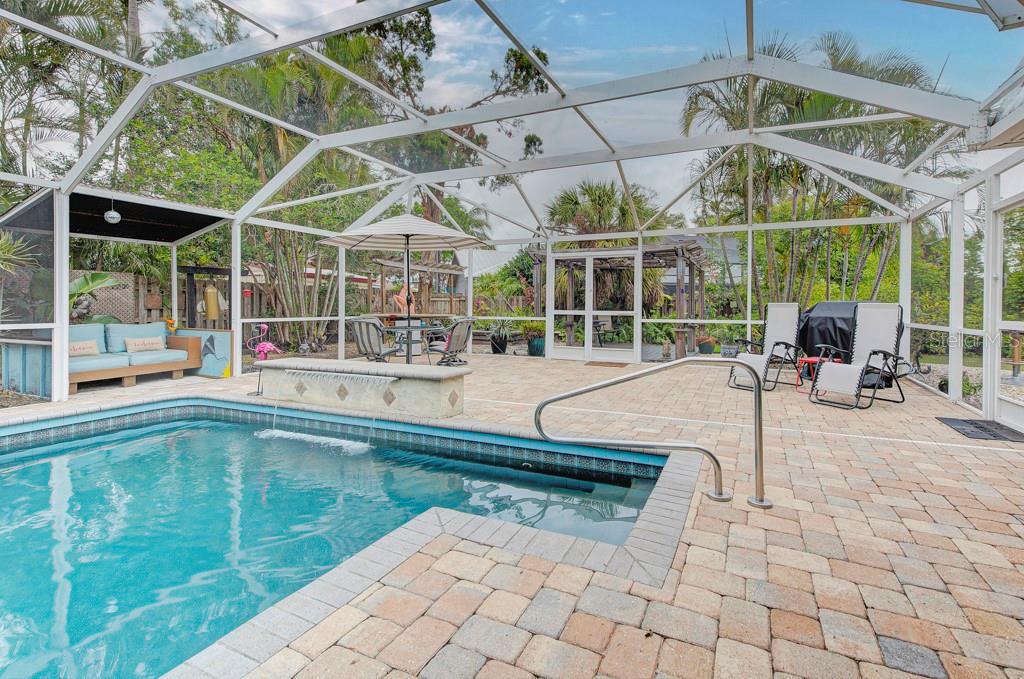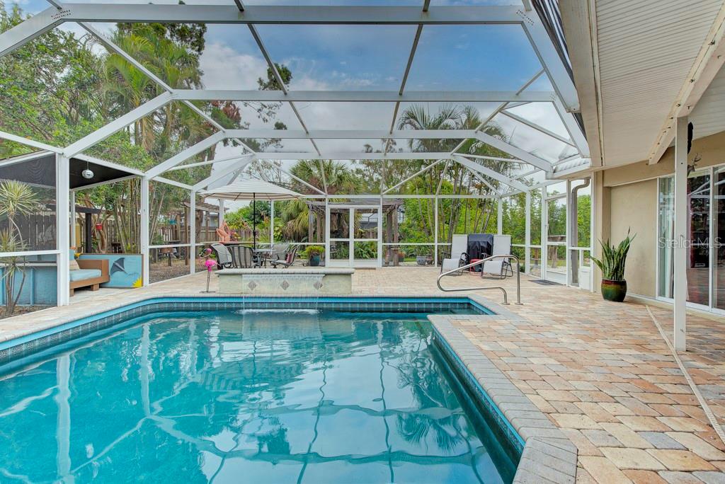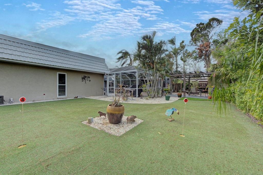 Drive up and enjoy the ambiance, curb appeal, and affordability, NO FEES, as you begin to admire this mini resort and private oasis right in Palm Aire. Imagine a beautiful 3-bedroom, 2 full bath and 1 half bath, open, versatile floor plan, lots of sun, on a large corner lot with a circular driveway, attached 2 car and golf cart garage providing parking space for cars and toys. This vision all surrounds a salt water heated pool, 6-hole practice putting green, a pergola, and separate private sitting areas within a totally fenced yard and an enclosed outdoor living area with hot and cold-water shower. The 33 ft. lanai is covered for naps in the rain, grill parties, and bar area with fridge and comfortable seating. This gorgeous home opens entirely in the back with hurricane protected sliders to this unbelievable outdoor life. The split floor plan is open to your ideas with opportunities unlimited and accentuated by an updated kitchen with designer tiles, granite counter tops, all newer appliances, and beautiful lighting. The dining room is contiguous to a large great room with a wood burning fireplace all on perfect tile flooring. The utility room and half bath are conveniently placed for guests, laundry and access to the garage. Then consider the possibilities of the private guest area with a comfortable and spacious bedroom and full bath with its own access to the outside. The main bedroom has a newly updated and beautiful bathroom with a barn door, a large walk-in closet, motion sensor lights under floating vanity, Bluetooth speaker in ceiling fan and plug-ins in each cabinet. The third bedroom could be an office or den. Now, for some of the additions, metal roof, air conditioning and ductwork 2019, hurricane impact resistant windows and doors across the front of the home, designer landscaping, outdoor lighting, sheds for storage, and most importantly, owners that prided themselves on the care of this incredible home. This is not in your imagination, make an appointment today to see this for real! Seller EXTREMELY motivated!!!
