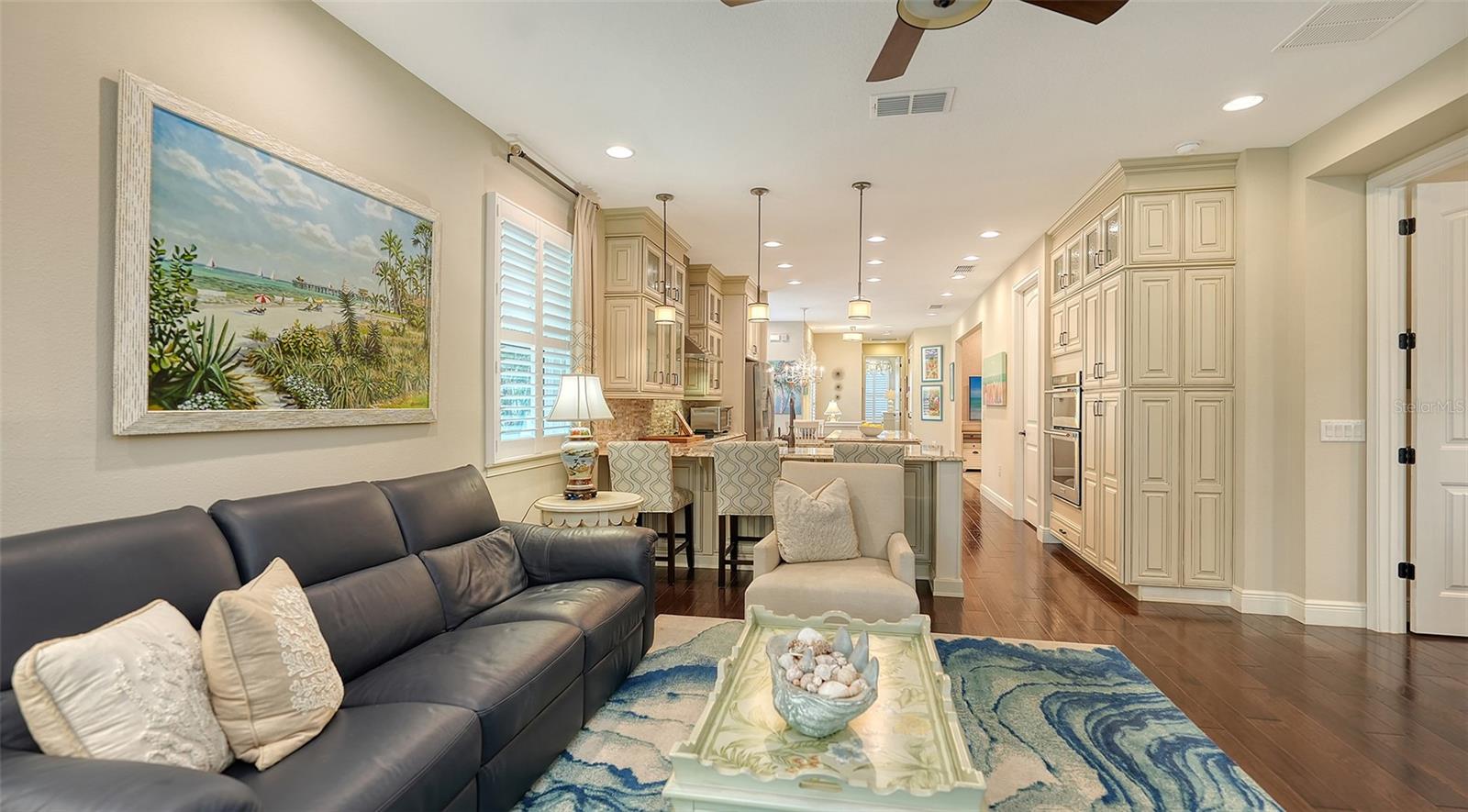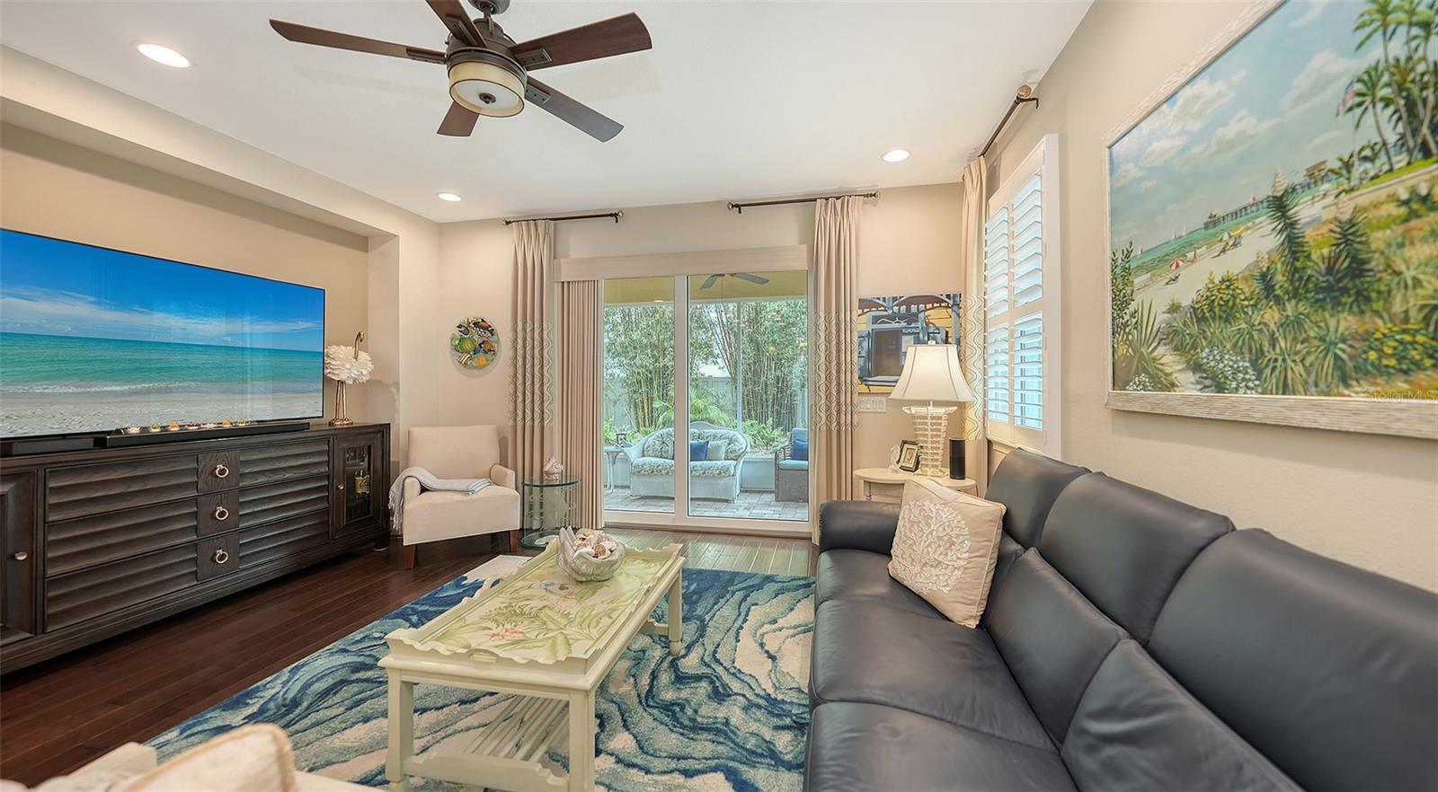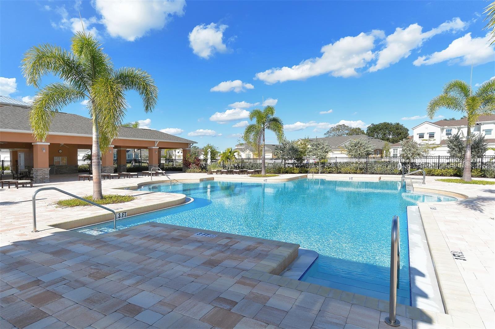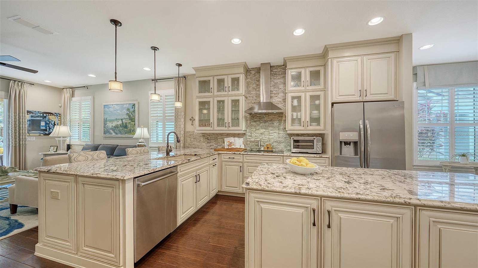 Nestled in the gated community of Enclave at Forest Lakes, this stunning former model home combines luxury, style, and convenience. Updated with over $40,000 in interior enhancements and $10,000 in exterior landscaping and paver upgrades, this 2-bedroom, 2-bathroom home with bonus space is truly one-of-a-kind. Bright and welcoming open floorplan features soaring ceilings, elegant paneled doors, decorative moldings, and custom plantation shutters throughout. Wood flooring flows seamlessly through the main living areas and primary bedroom. The gourmet kitchen is a chef’s dream complete with custom cabinetry including upper glass-front cabinets and under-cabinet lighting, beveled-edge granite countertops, stacked stone backsplash, and top-of-the-line stainless steel appliances: Bosch induction cooktop, Bosch dishwasher, Frigidaire Gallery refrigerator, and KitchenAid built-in wall oven and microwave. A large center island and peninsula provide casual dining space and seamlessly flow into the dining room and living room. Enjoy peaceful outdoor living on the private screened lanai, featuring a sunshade and extended pavers. The primary suite is a serene retreat with a tray ceiling, stacked stone feature wall, generous walk-in closet, and a spa-inspired ensuite bath with dual sinks, built-in cabinetry, luxurious walk-in shower, and private water closet. A flexible den provides versatile space for an office or additional living area. The second bedroom is thoughtfully located near the beautifully updated bathroom, providing privacy with a split bedroom floorplan. A convenient laundry room offers easy access from both the primary bathroom and kitchen. Additional highlights include all impact windows and doors (installed February 2024), a two-car attached garage, and a low-maintenance lifestyle with low HOA fees. The Enclave at Forest Lakes offers a serene setting with sidewalks, green space, a heated community pool, poolside pavilion, and dog park. Ideally located just minutes from Sarasota’s finest attractions, including vibrant dining, boutique shopping, golf courses, cultural venues, and world-renowned beaches like Siesta Key and Lido Key. No flood insurance required (Flood Zone X, Evacuation Level D). Don’t miss the opportunity to own this highly sought-after former model home in a prime Sarasota location.
