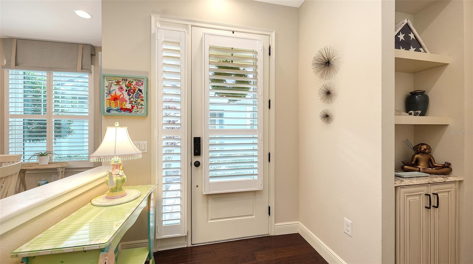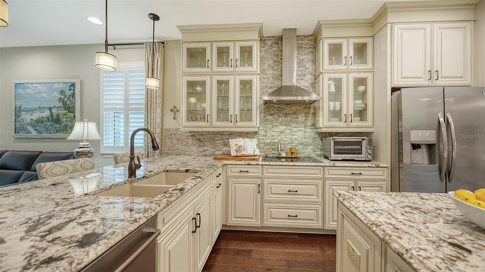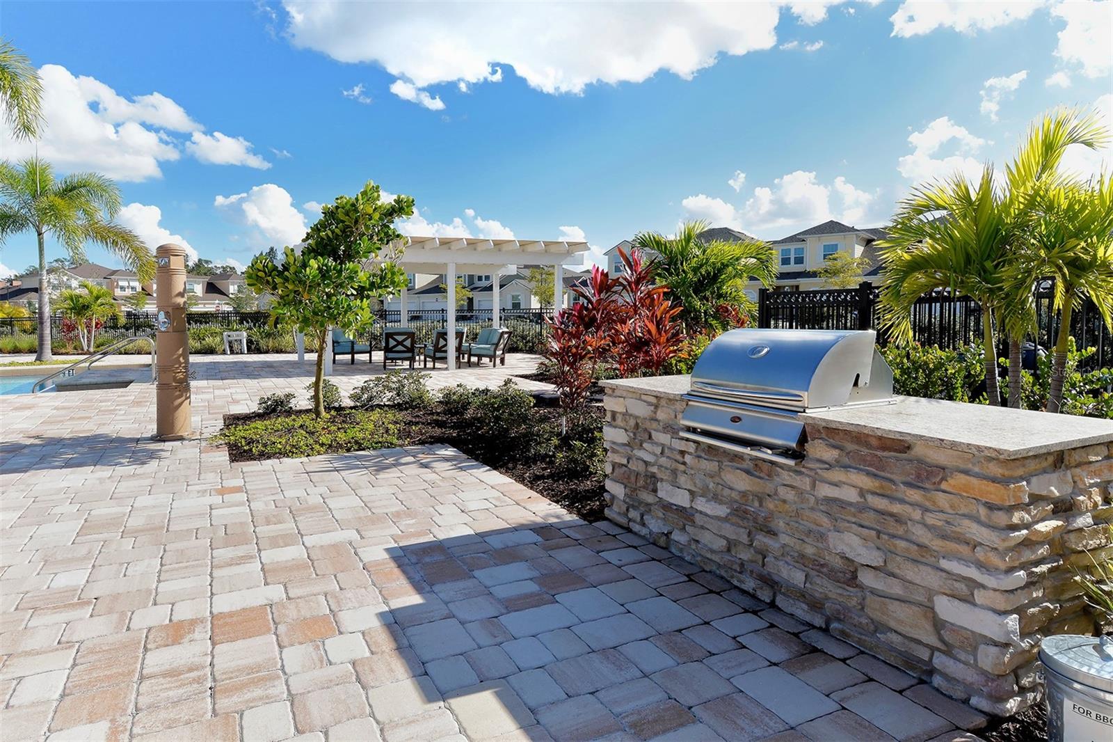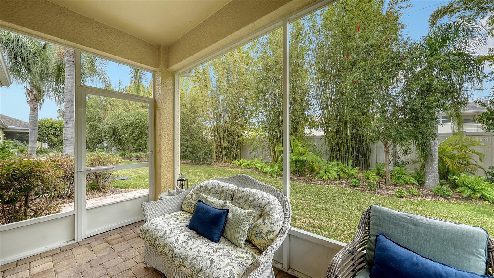 Nestled in the gated community of Enclave at Forest Lakes, this stunning former model home combines luxury, style, and convenience. Updated with over $40,000 in interior enhancements and $10,000 in exterior landscaping and paver upgrades, this 2-bedroom, 2-bathroom home with bonus space is truly one-of-a-kind. Bright and welcoming open floorplan features soaring ceilings, elegant paneled doors, decorative moldings, and custom plantation shutters throughout. Wood flooring flows seamlessly through the main living areas and primary bedroom. The gourmet kitchen is a chef’s dream complete with custom cabinetry including upper glass-front cabinets and under-cabinet lighting, beveled-edge granite countertops, stacked stone backsplash, and top-of-the-line stainless steel appliances: Bosch induction cooktop, Bosch dishwasher, Frigidaire Gallery refrigerator, and KitchenAid built-in wall oven and microwave. A large center island and peninsula provide casual dining space and seamlessly flow into the dining room and living room. Enjoy peaceful outdoor living on the private screened lanai, featuring a sunshade and extended pavers. The primary suite is a serene retreat with a tray ceiling, stacked stone feature wall, generous walk-in closet, and a spa-inspired ensuite bath with dual sinks, built-in cabinetry, luxurious walk-in shower, and private water closet. A flexible den provides versatile space for an office or additional living area. The second bedroom is thoughtfully located near the beautifully updated bathroom, providing privacy with a split bedroom floorplan. A convenient laundry room offers easy access from both the primary bathroom and kitchen. Additional highlights include all impact windows and doors (installed February 2024), a two-car attached garage, and a low-maintenance lifestyle with low HOA fees. The Enclave at Forest Lakes offers a serene setting with sidewalks, green space, a heated community pool, poolside pavilion, and dog park. Ideally located just minutes from Sarasota’s finest attractions, including vibrant dining, boutique shopping, golf courses, cultural venues, and world-renowned beaches like Siesta Key and Lido Key. No flood insurance required (Flood Zone X, Evacuation Level D). Don’t miss the opportunity to own this highly sought-after former model home in a prime Sarasota location.