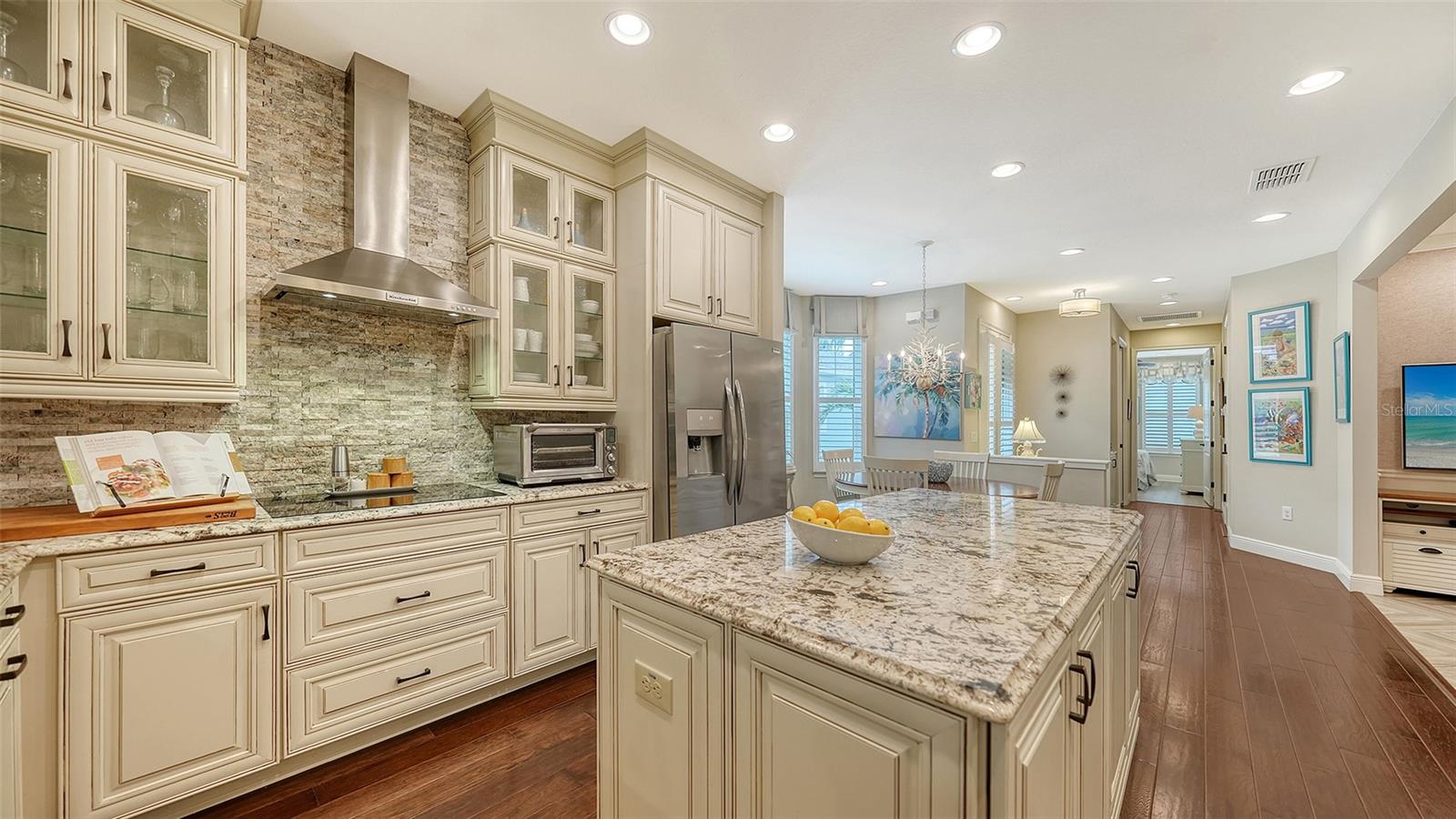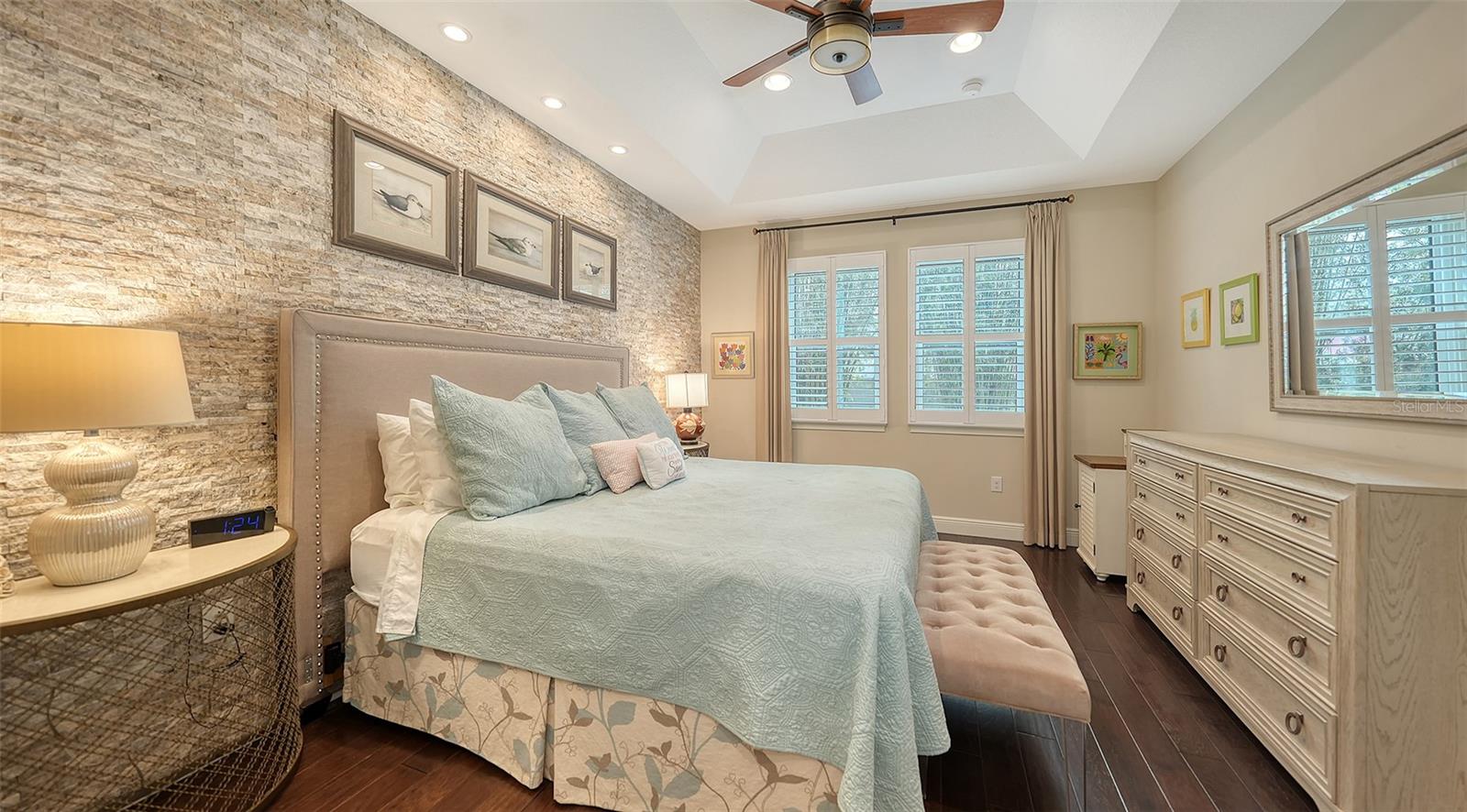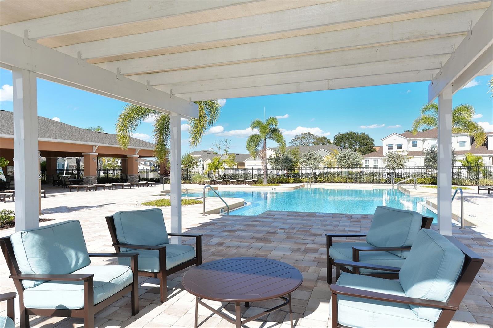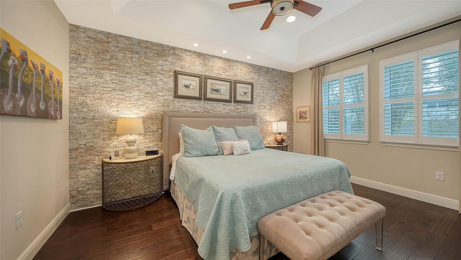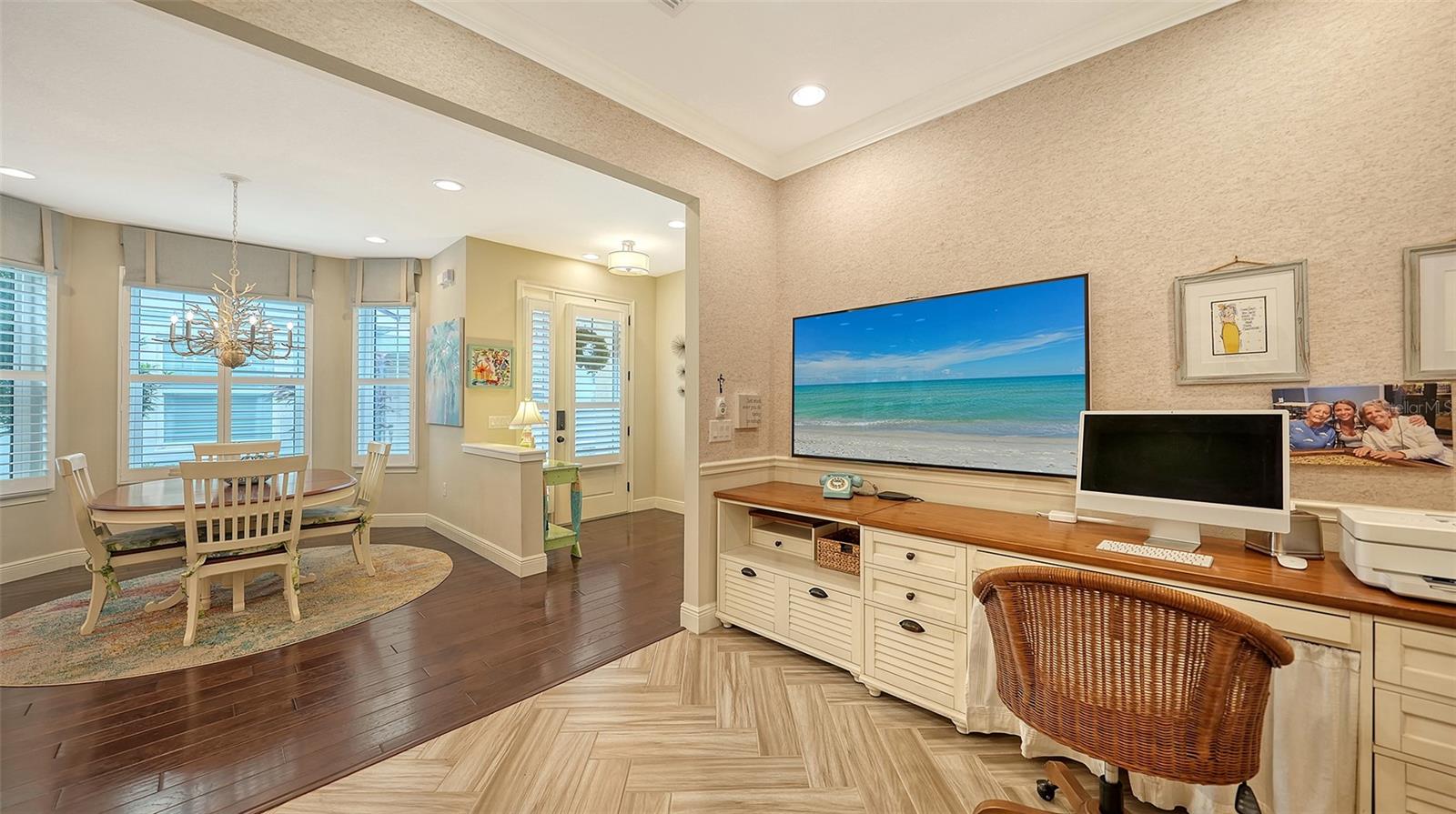 Nestled in the gated community of Enclave at Forest Lakes, this stunning former model home combines luxury, style, and convenience. Updated with over $40,000 in interior enhancements and $10,000 in exterior landscaping and paver upgrades, this 2-bedroom, 2-bathroom home with bonus space is truly one-of-a-kind. Bright and welcoming open floorplan features soaring ceilings, elegant paneled doors, decorative moldings, and custom plantation shutters throughout. Wood flooring flows seamlessly through the main living areas and primary bedroom. The gourmet kitchen is a chef’s dream complete with custom cabinetry including upper glass-front cabinets and under-cabinet lighting, beveled-edge granite countertops, stacked stone backsplash, and top-of-the-line stainless steel appliances: Bosch induction cooktop, Bosch dishwasher, Frigidaire Gallery refrigerator, and KitchenAid built-in wall oven and microwave. A large center island and peninsula provide casual dining space and seamlessly flow into the dining room and living room. Enjoy peaceful outdoor living on the private screened lanai, featuring a sunshade and extended pavers. The primary suite is a serene retreat with a tray ceiling, stacked stone feature wall, generous walk-in closet, and a spa-inspired ensuite bath with dual sinks, built-in cabinetry, luxurious walk-in shower, and private water closet. A flexible den provides versatile space for an office or additional living area. The second bedroom is thoughtfully located near the beautifully updated bathroom, providing privacy with a split bedroom floorplan. A convenient laundry room offers easy access from both the primary bathroom and kitchen. Additional highlights include all impact windows and doors (installed February 2024), a two-car attached garage, and a low-maintenance lifestyle with low HOA fees. The Enclave at Forest Lakes offers a serene setting with sidewalks, green space, a heated community pool, poolside pavilion, and dog park. Ideally located just minutes from Sarasota’s finest attractions, including vibrant dining, boutique shopping, golf courses, cultural venues, and world-renowned beaches like Siesta Key and Lido Key. No flood insurance required (Flood Zone X, Evacuation Level D). Don’t miss the opportunity to own this highly sought-after former model home in a prime Sarasota location.