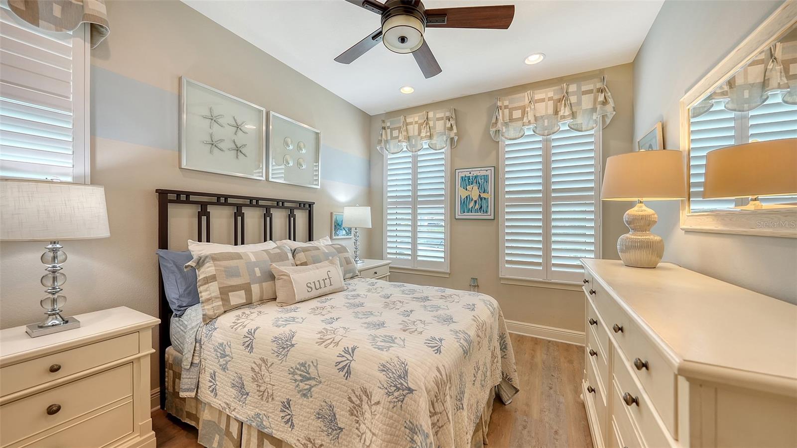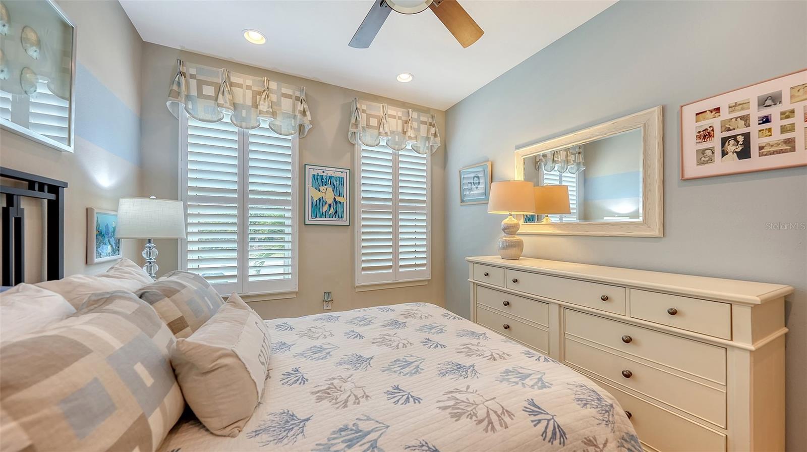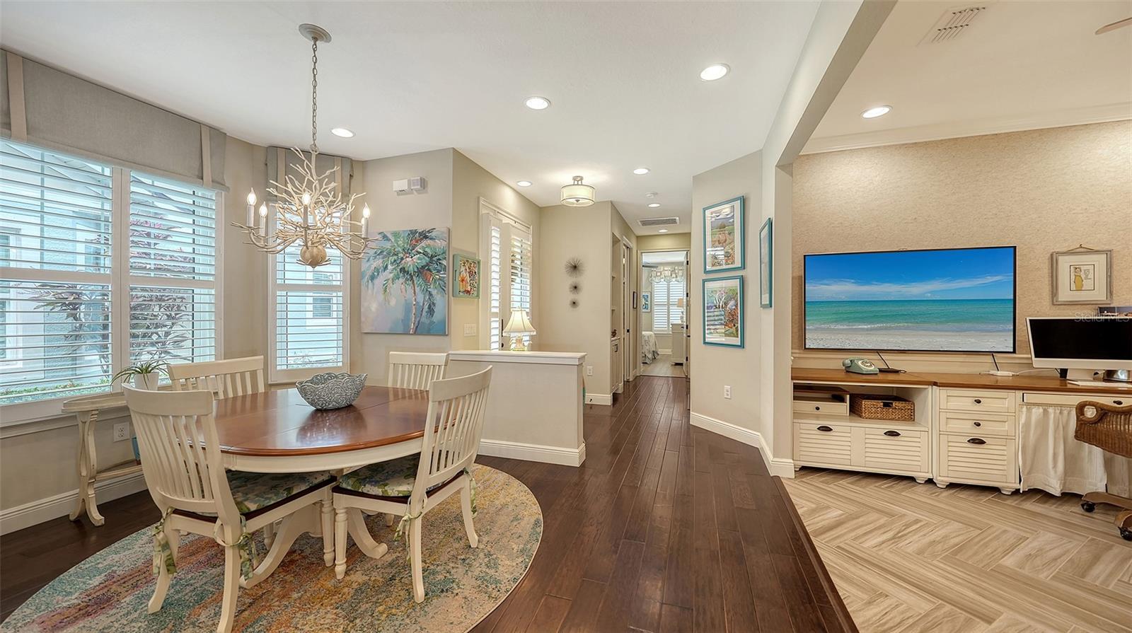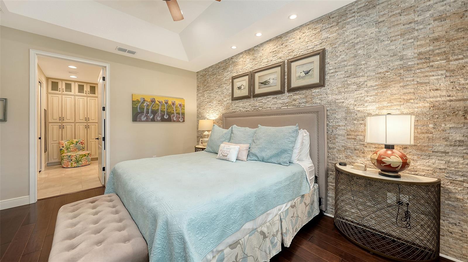 Nestled in the gated community of Enclave at Forest Lakes, this stunning former model home combines luxury, style, and convenience. Updated with over $40,000 in interior enhancements and $10,000 in exterior landscaping and paver upgrades, this 2-bedroom, 2-bathroom home with bonus space is truly one-of-a-kind. Bright and welcoming open floorplan features soaring ceilings, elegant paneled doors, decorative moldings, and custom plantation shutters throughout. Wood flooring flows seamlessly through the main living areas and primary bedroom. The gourmet kitchen is a chef’s dream complete with custom cabinetry including upper glass-front cabinets and under-cabinet lighting, beveled-edge granite countertops, stacked stone backsplash, and top-of-the-line stainless steel appliances: Bosch induction cooktop, Bosch dishwasher, Frigidaire Gallery refrigerator, and KitchenAid built-in wall oven and microwave. A large center island and peninsula provide casual dining space and seamlessly flow into the dining room and living room. Enjoy peaceful outdoor living on the private screened lanai, featuring a sunshade and extended pavers. The primary suite is a serene retreat with a tray ceiling, stacked stone feature wall, generous walk-in closet, and a spa-inspired ensuite bath with dual sinks, built-in cabinetry, luxurious walk-in shower, and private water closet. A flexible den provides versatile space for an office or additional living area. The second bedroom is thoughtfully located near the beautifully updated bathroom, providing privacy with a split bedroom floorplan. A convenient laundry room offers easy access from both the primary bathroom and kitchen. Additional highlights include all impact windows and doors (installed February 2024), a two-car attached garage, and a low-maintenance lifestyle with low HOA fees. The Enclave at Forest Lakes offers a serene setting with sidewalks, green space, a heated community pool, poolside pavilion, and dog park. Ideally located just minutes from Sarasota’s finest attractions, including vibrant dining, boutique shopping, golf courses, cultural venues, and world-renowned beaches like Siesta Key and Lido Key. No flood insurance required (Flood Zone X, Evacuation Level D). Don’t miss the opportunity to own this highly sought-after former model home in a prime Sarasota location.