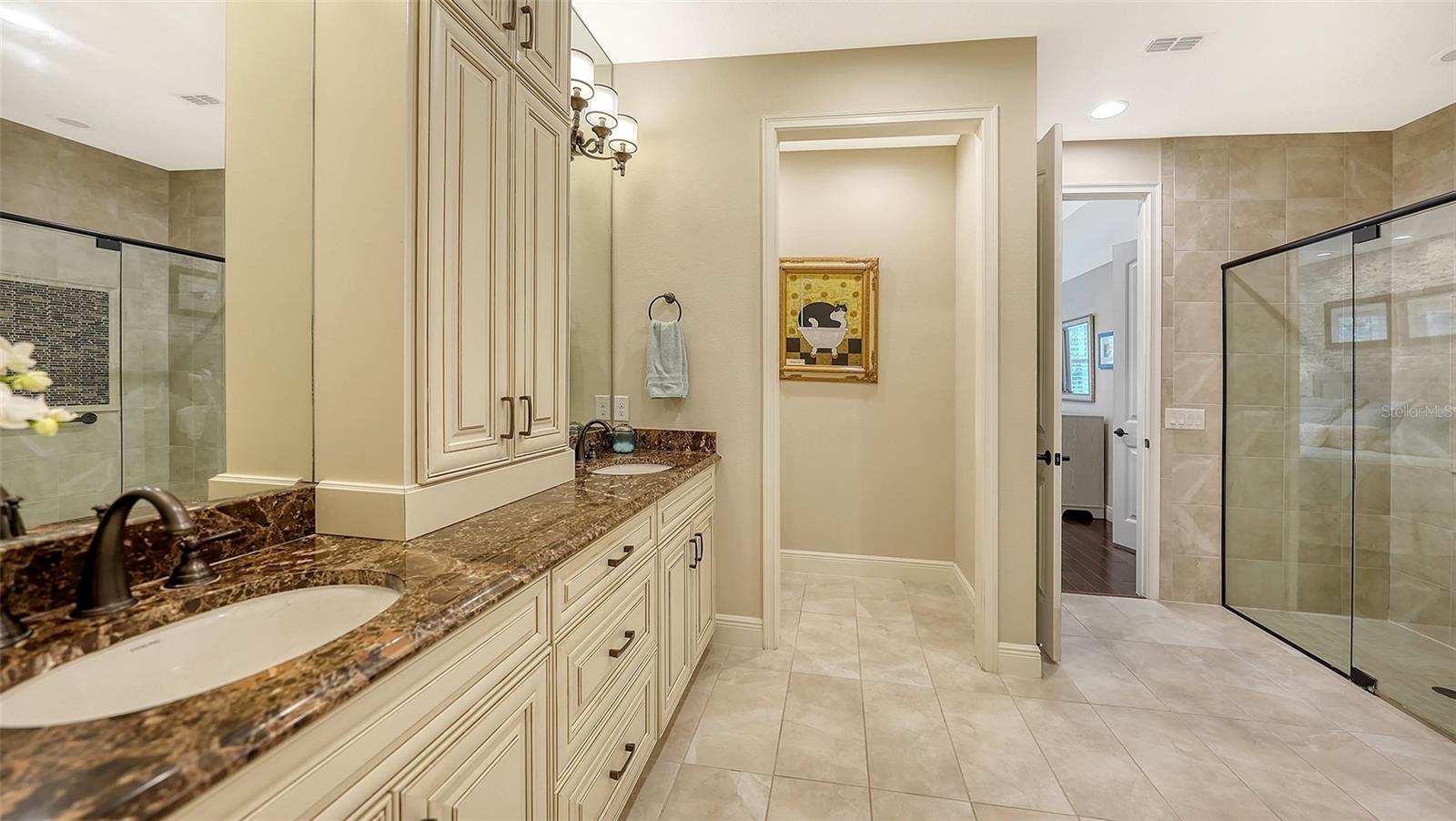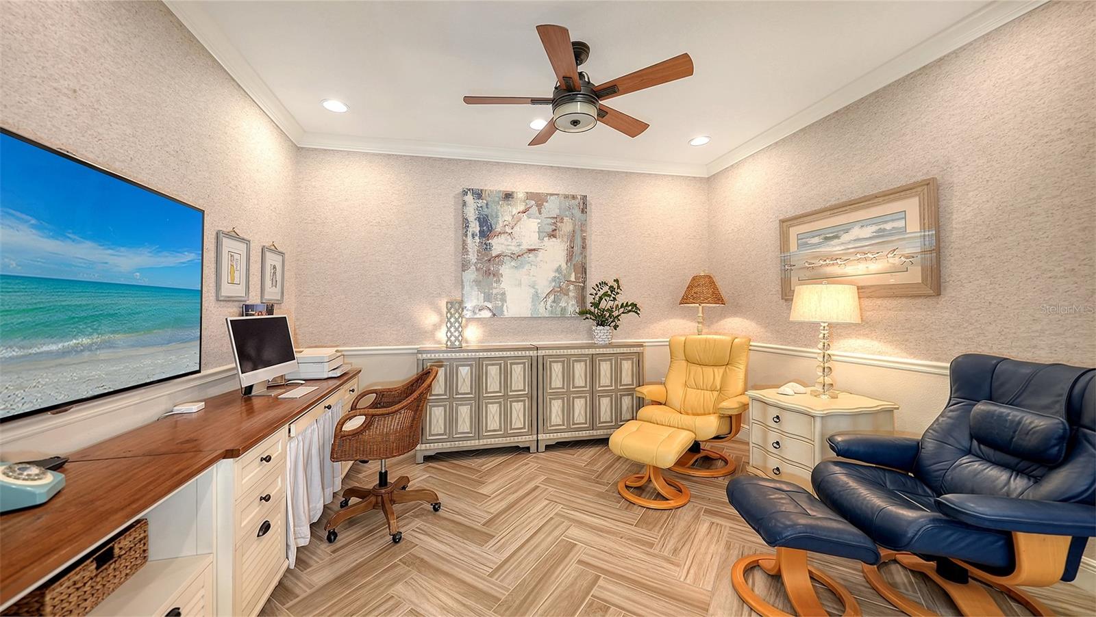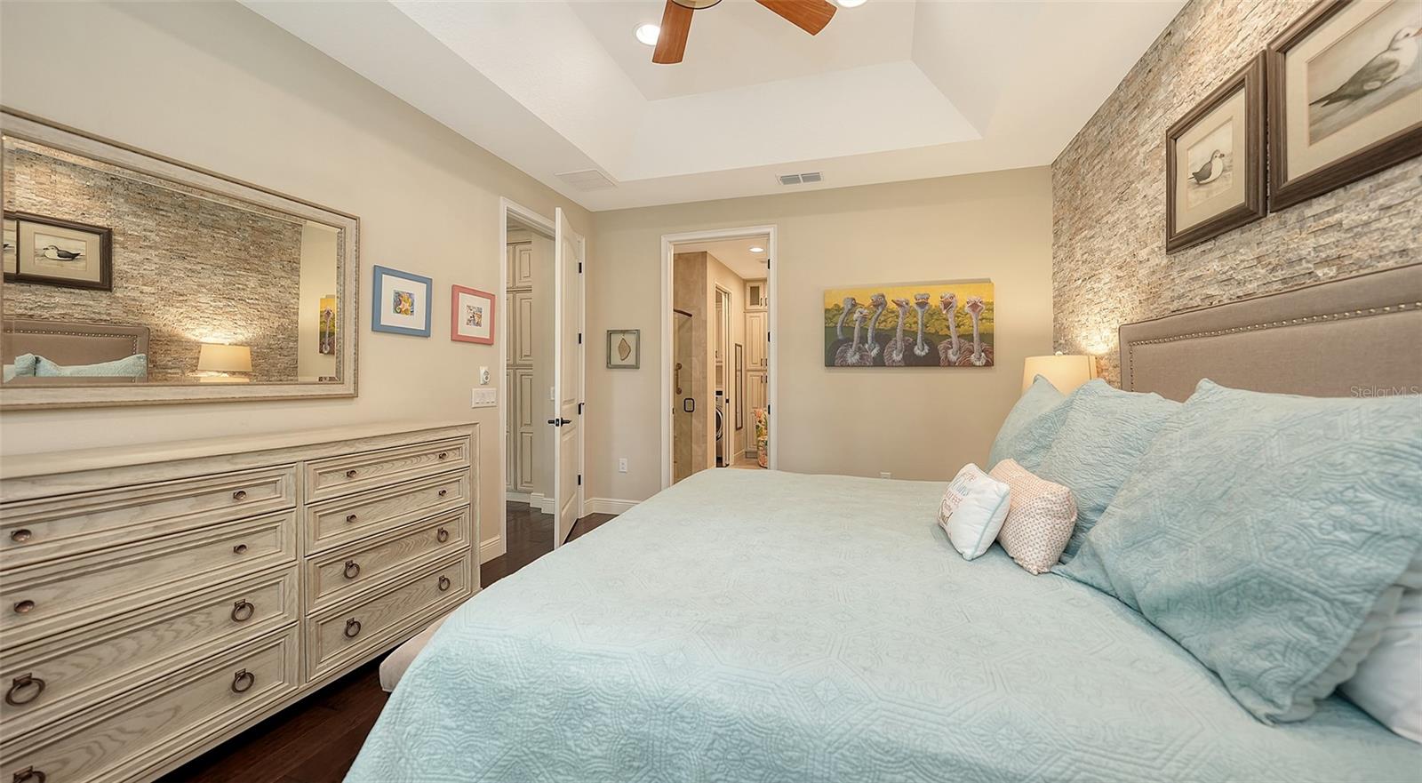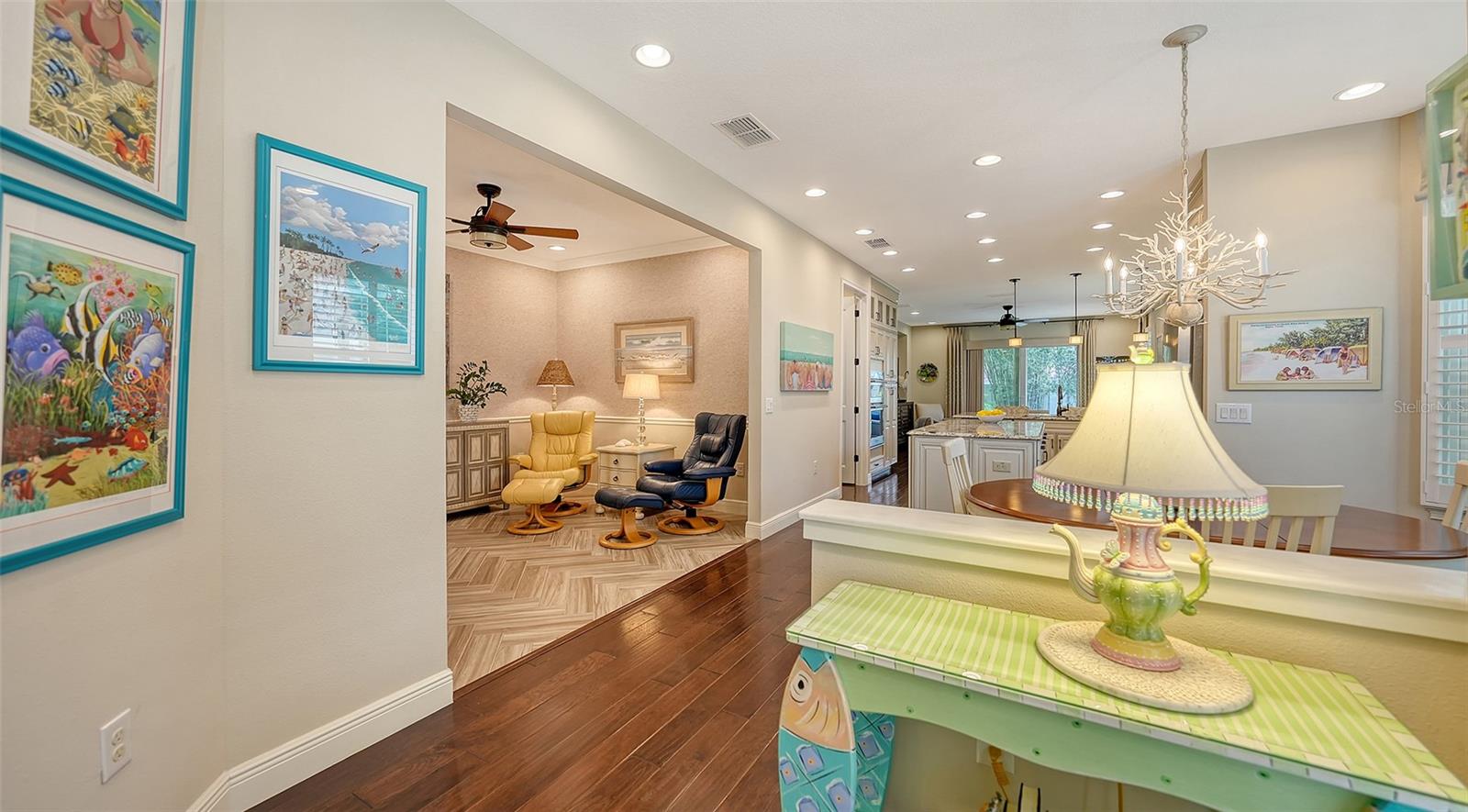 Nestled in the gated community of Enclave at Forest Lakes, this stunning former model home combines luxury, style, and convenience. Updated with over $40,000 in interior enhancements and $10,000 in exterior landscaping and paver upgrades, this 2-bedroom, 2-bathroom home with bonus space is truly one-of-a-kind. Bright and welcoming open floorplan features soaring ceilings, elegant paneled doors, decorative moldings, and custom plantation shutters throughout. Wood flooring flows seamlessly through the main living areas and primary bedroom. The gourmet kitchen is a chef’s dream complete with custom cabinetry including upper glass-front cabinets and under-cabinet lighting, beveled-edge granite countertops, stacked stone backsplash, and top-of-the-line stainless steel appliances: Bosch induction cooktop, Bosch dishwasher, Frigidaire Gallery refrigerator, and KitchenAid built-in wall oven and microwave. A large center island and peninsula provide casual dining space and seamlessly flow into the dining room and living room. Enjoy peaceful outdoor living on the private screened lanai, featuring a sunshade and extended pavers. The primary suite is a serene retreat with a tray ceiling, stacked stone feature wall, generous walk-in closet, and a spa-inspired ensuite bath with dual sinks, built-in cabinetry, luxurious walk-in shower, and private water closet. A flexible den provides versatile space for an office or additional living area. The second bedroom is thoughtfully located near the beautifully updated bathroom, providing privacy with a split bedroom floorplan. A convenient laundry room offers easy access from both the primary bathroom and kitchen. Additional highlights include all impact windows and doors (installed February 2024), a two-car attached garage, and a low-maintenance lifestyle with low HOA fees. The Enclave at Forest Lakes offers a serene setting with sidewalks, green space, a heated community pool, poolside pavilion, and dog park. Ideally located just minutes from Sarasota’s finest attractions, including vibrant dining, boutique shopping, golf courses, cultural venues, and world-renowned beaches like Siesta Key and Lido Key. No flood insurance required (Flood Zone X, Evacuation Level D). Don’t miss the opportunity to own this highly sought-after former model home in a prime Sarasota location.