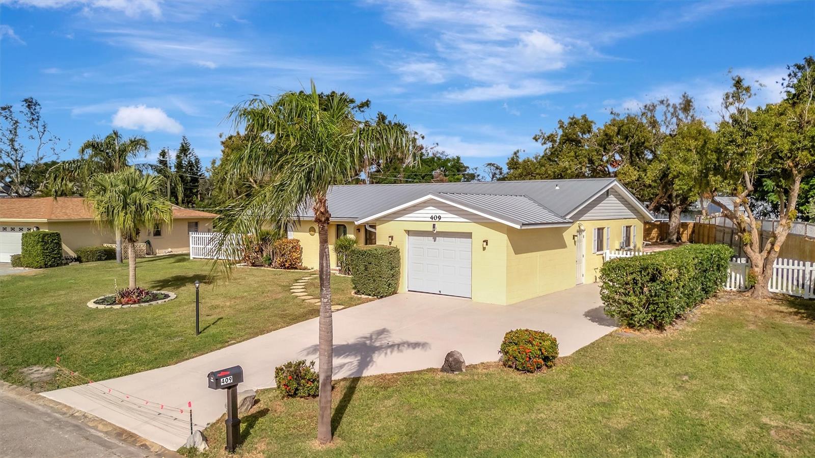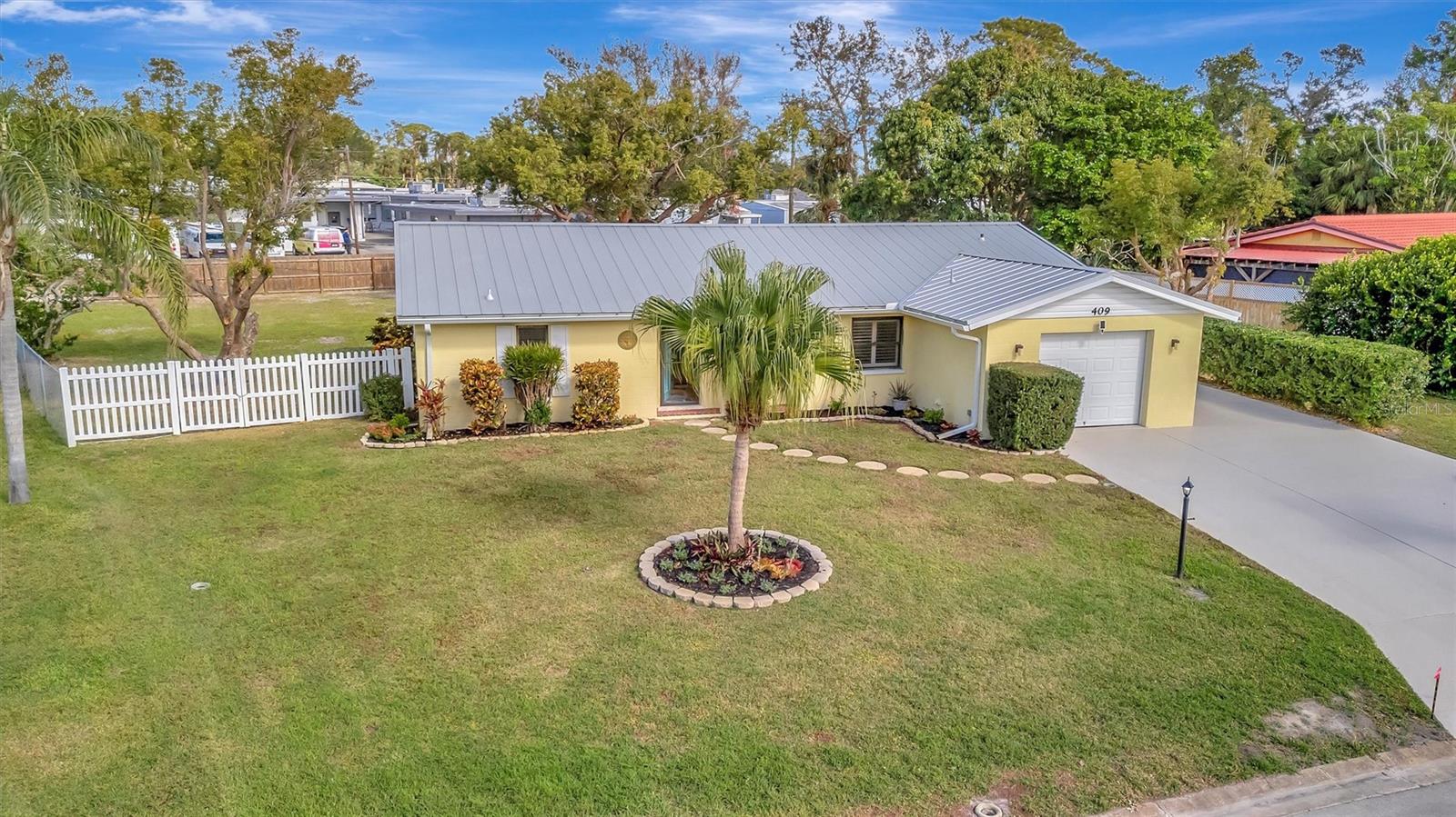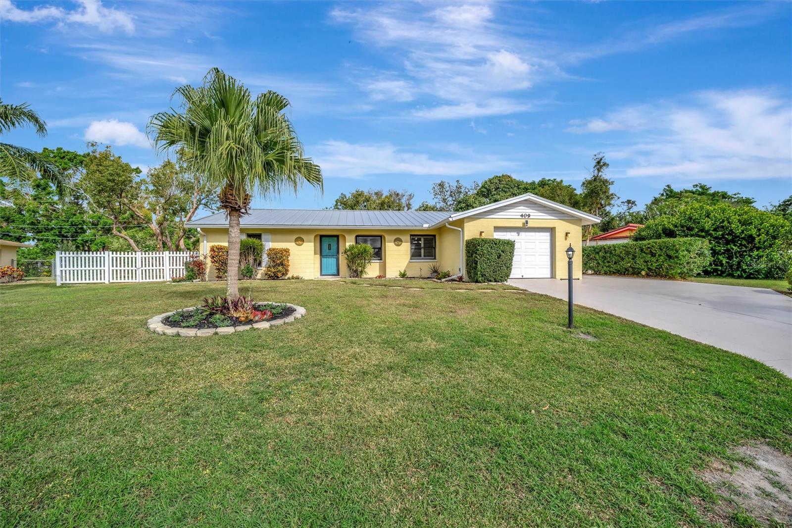 Welcome to paradise!!! Living in Sarasota, Florida has so many pluses from the Gulf of Mexico beaches to the thriving arts community, innovative dining, world class shopping outdoor activities and diverse neighborhoods to fit every taste and desire. This beautiful well maintained Turnkey 2 bedroom 2 full bath home located at 409 Archibald Ave on an oversized lot with no deed restrictions. Plenty of space throughout the huge property to build your backyard oasis such as a pool and extra garage for your RV, toys and yard equipment. Pull into the beautiful over sized driveway entering the new garage door and nicely painted garage. Ammenities and Updates include: new AC ductwork and insulation in the attic, ring cameras, electrical light lamp post entering the keyless front door entry way, steel roof, rain gutters, outside lighting, front and back yards sprinker system run by free well water, back privacy fence and large patio. Inside enjoy updated bathrooms, plumbing, vanities, mirrors and toilets. Corian counter tops, ceiling fans and light fixtures, electrical outlets, kitchen refaced, new refrigerator and plantation shutters window treatments. Only 2 blocks to Sarasota Bay, a short distance to SRQ Sarasota Bradenton Airport, UTC Mall and downtown Sarasota. Also this property is in the desired location of Flood Zone X so flood insurance is not required to enjoy this Sarasota home which is waiting for you to enjoy. #JustAnotherDayInParadise