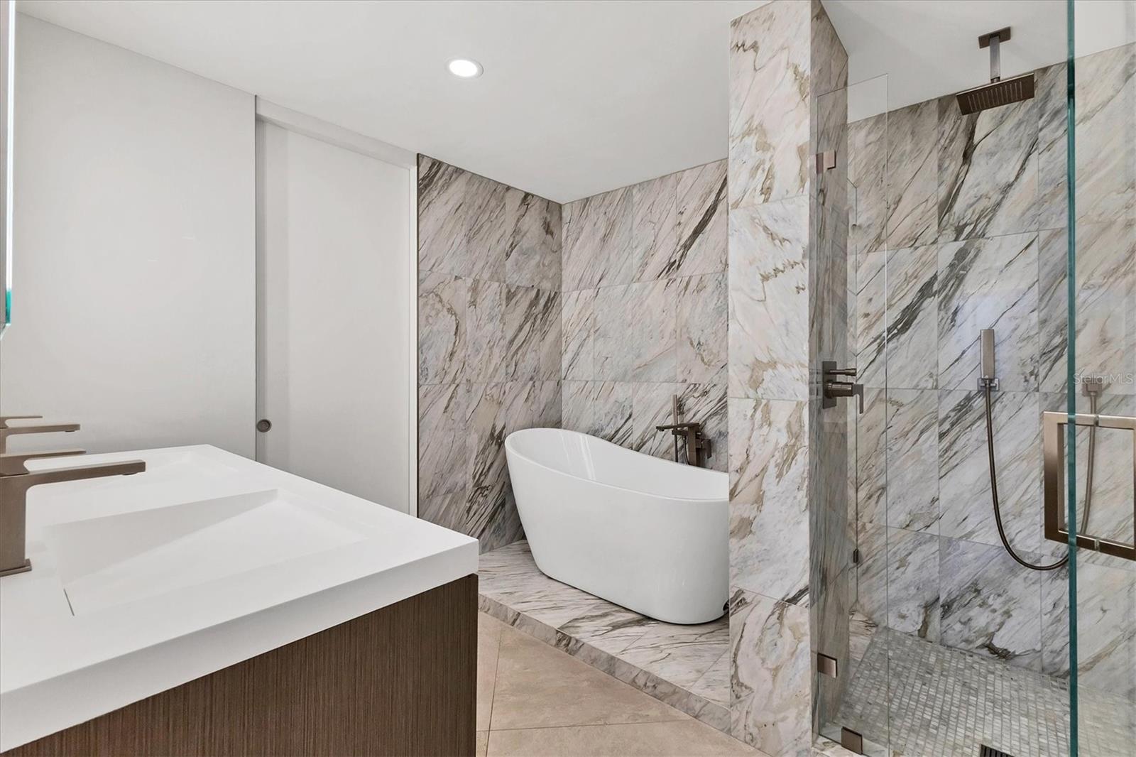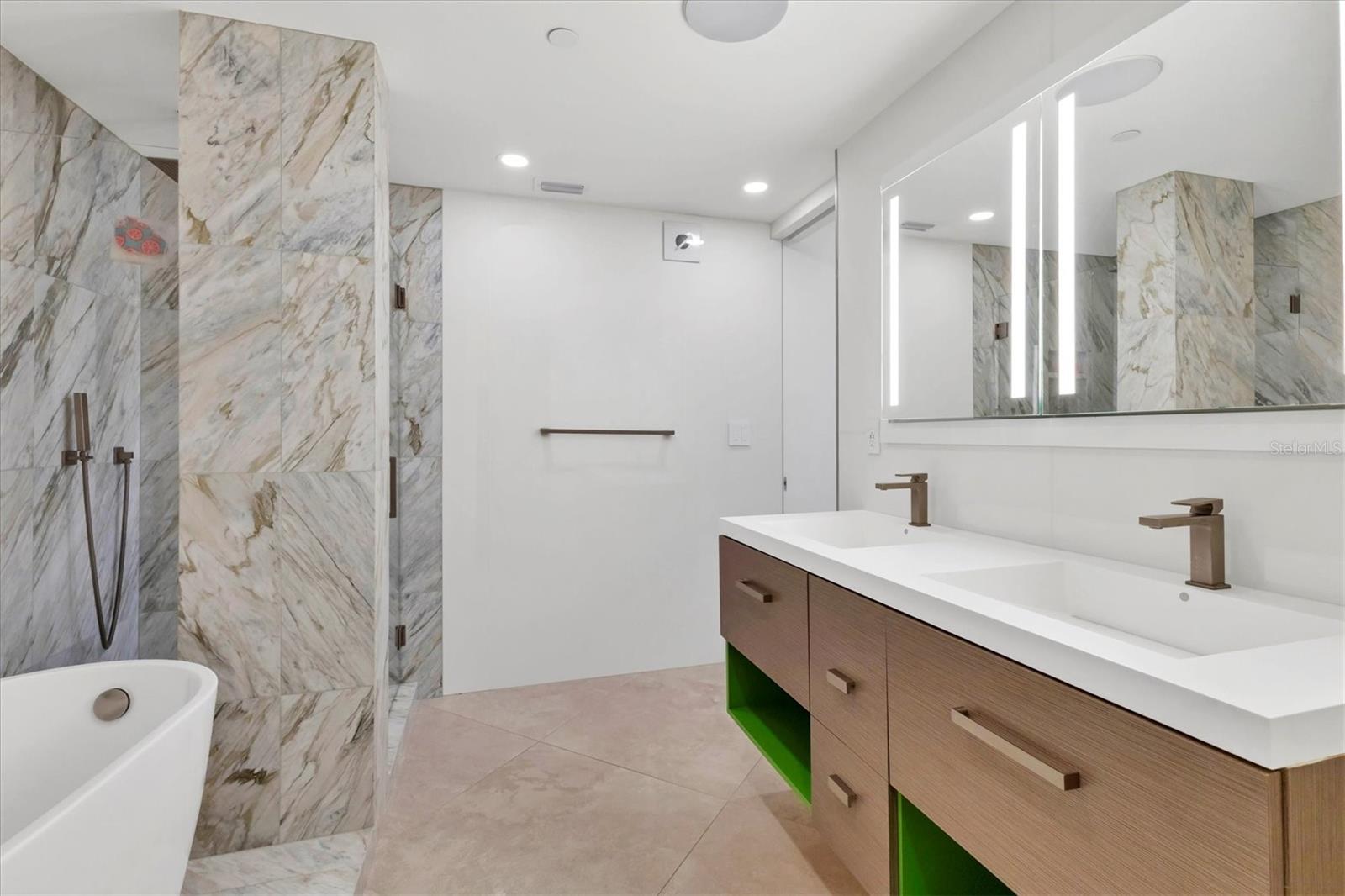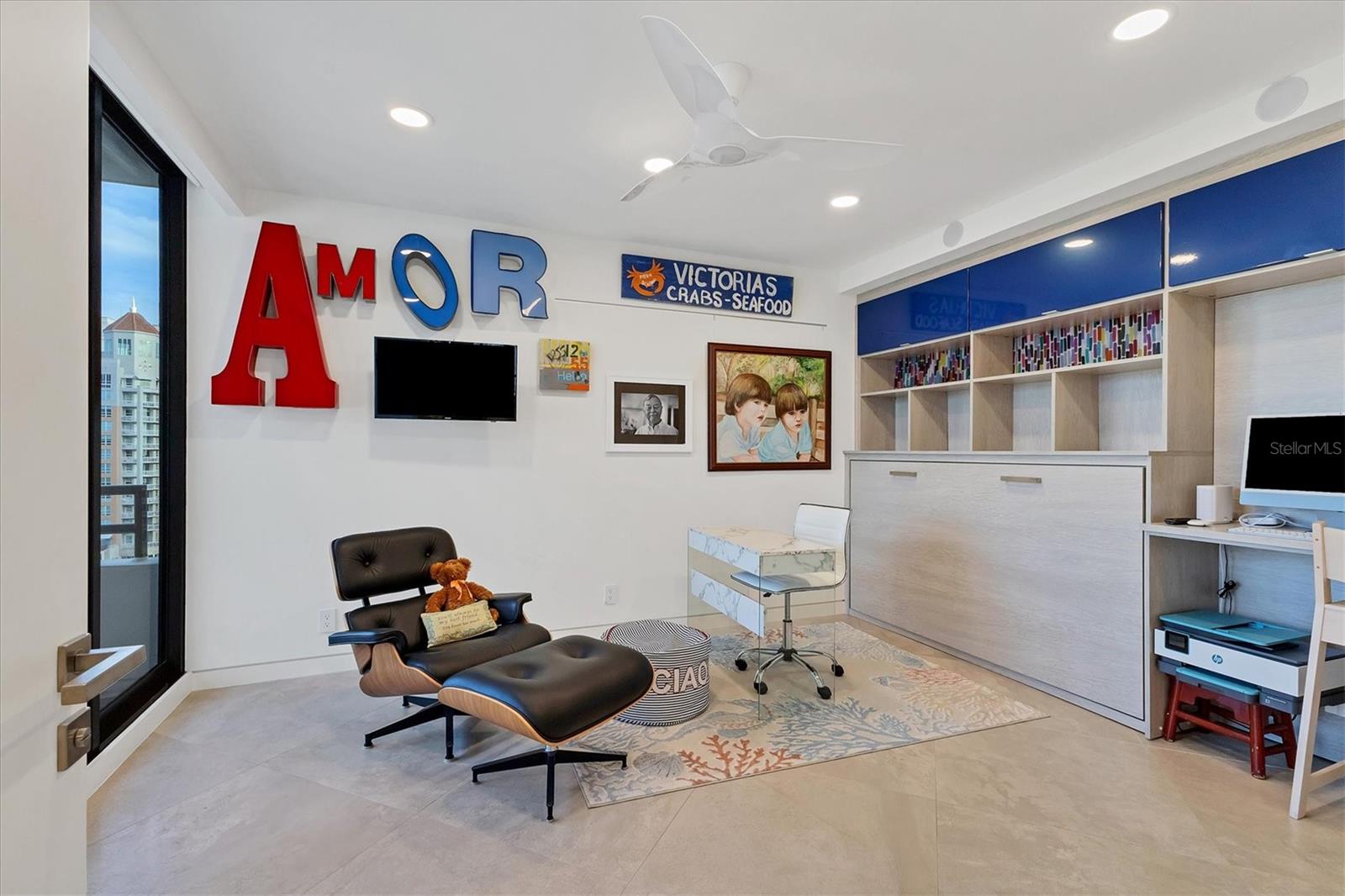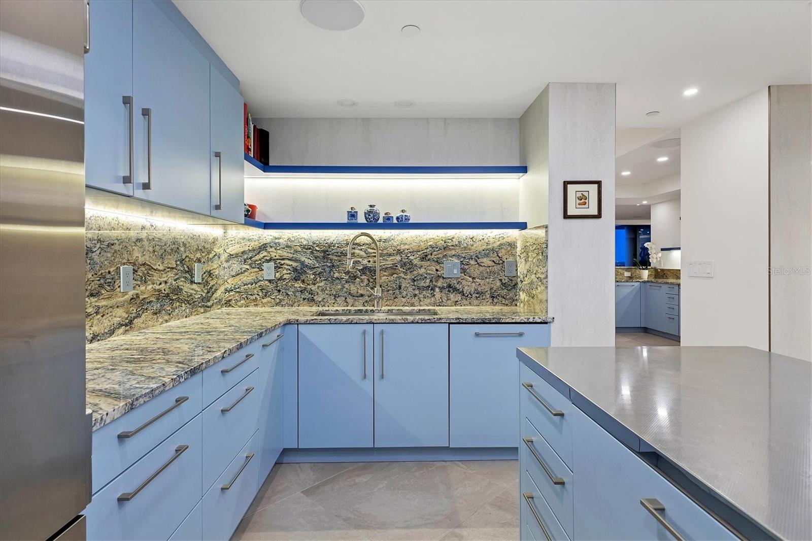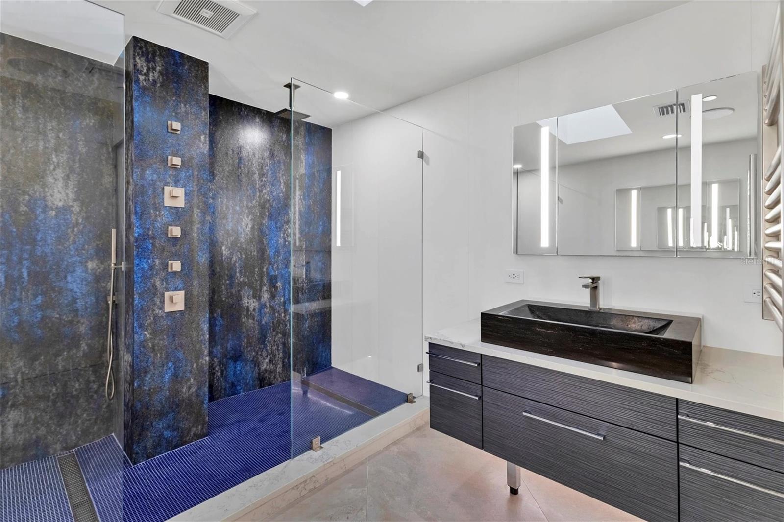 Sophisticated Downtown Sarasota Penthouse with Unmatched Bay and Skyline Views. Experience the pinnacle of luxury living in this fully renovated, architect-designed Sarasota penthouse in the heart of the city’s vibrant cultural district. Offered fully furnished (excluding art and sculptures), this residence blends mid-century modern architecture with sleek, contemporary upgrades for a timeless yet fresh aesthetic. Designed by acclaimed architect Bill Niblock, the expansive open floor plan connects the living, dining, and kitchen spaces with effortless flow—perfect for both intimate evenings and large-scale entertaining. Seven wraparound balconies showcase breathtaking 360-degree views of Sarasota Bay, the city skyline, and beyond, creating a seamless indoor-outdoor lifestyle. Originally renovated in 2019 and further elevated in 2024, the home meets Miami-Dade HVHZ impact standards with floor-to-ceiling sliding glass doors and windows, delivering safety, energy efficiency, and uninterrupted panoramas. Modern infrastructure includes a 200-amp electrical panel, high-efficiency HVAC, an 85-gallon commercial-grade water heater, and a manifold-based PEX plumbing system for superior performance. At the heart of the home, the Studio Becker-designed chef’s kitchen boasts Sub-Zero and Miele appliances, custom cabinetry, and striking blue granite surfaces. Adjacent, a custom media room features an 85-inch television, an 11-speaker Dolby ATMOS sound system, and rich walnut cabinetry for the ultimate cinematic experience. The owner’s suite is a private retreat with two balconies, three walk-in closets, an 85-inch television, and a spa-inspired bath with dual rain showers and limestone sinks. Throughout the home, you’ll find smart home technology, including motorized Hunter Douglas shades, Wi-Fi-enabled Haiku ceiling fans, CAT-6 cabling, USB charging outlets, and a WaterCop leak detection system. Elegant finishes include 32" x 32" imported porcelain tile, flush Italian doors, an art hanging system, and LED recessed lighting. Located in the prestigious Bay Plaza condominium, residents enjoy 24-hour concierge and valet services, a heated pool, fitness center, EV charging stations, and three deeded parking spaces. Step outside to explore Sarasota’s renowned arts venues, fine dining, and waterfront attractions just moments from your door. This one-of-a-kind penthouse offers architectural pedigree, world-class amenities, and a premier downtown Sarasota location—now available at $4.25M.