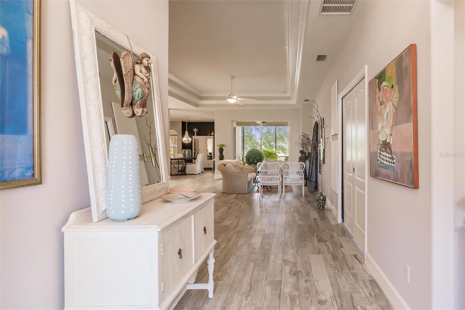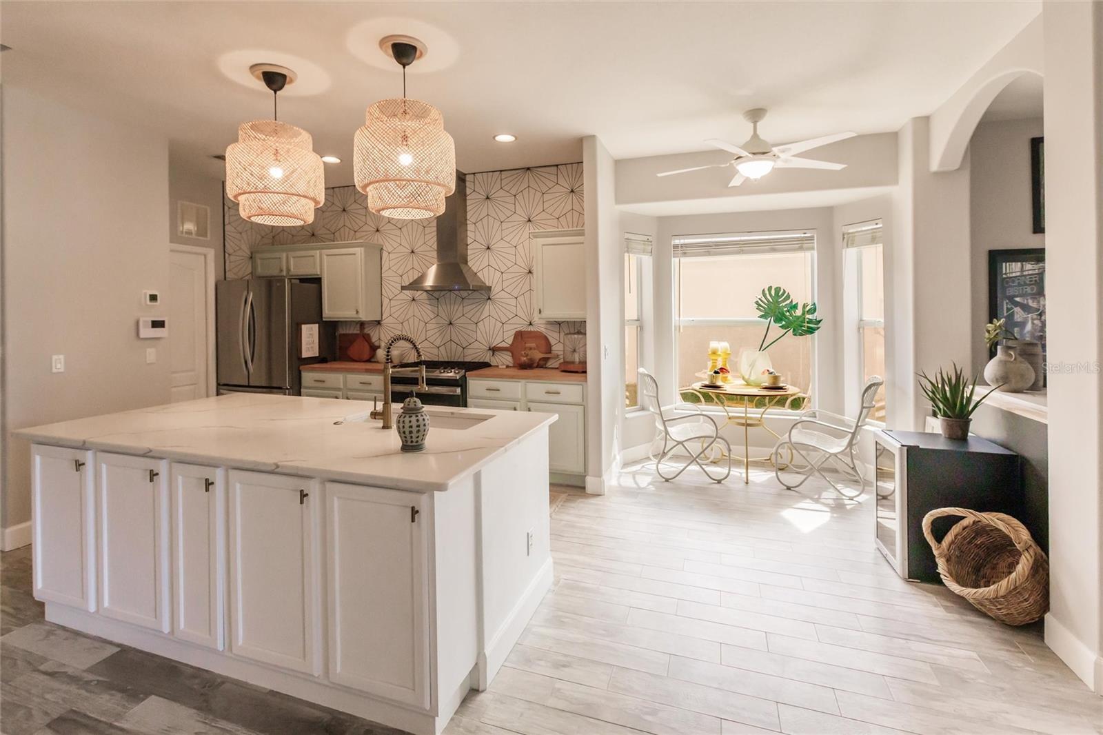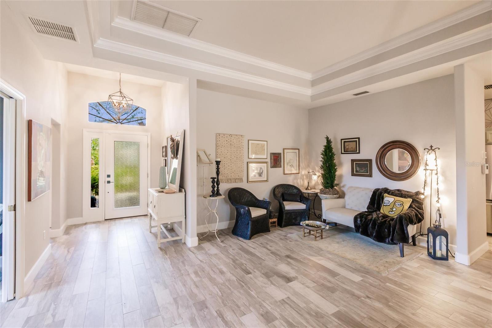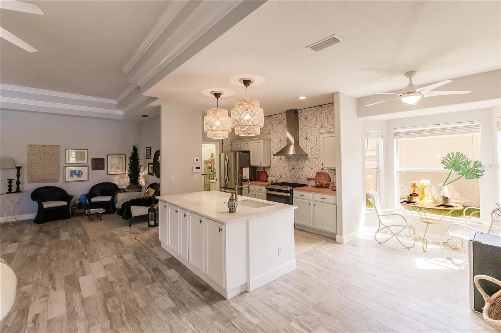 New Opportunity! Stunning Home in Carlyle at Villages of Palm-Aire - Renovated with Modern Upgrades! Welcome to this beautifully renovated treasure in the sought-after Carlyle at Villages of Palm-Aire in vibrant Sarasota. This exceptional home offers luxury and comfort, boasting NO CDD fees and an attractive, budget-friendly HOA. Step inside to discover elegant crown molding and tray ceilings, which set the tone for an exceptional living experience. The property has undergone a renovation, featuring a newer roof (2023), an A/C unit (2024), and a water heater (2024). The home is enhanced with new stylish lighting fixtures, adding a touch of elegance and modernity to each room. Enjoy new tile flooring and a designer backsplash that add a touch of contemporary flair to the kitchen, fully equipped with newer appliances from 2023. This kitchen is ready to inspire your inner chef, highlighting a quartz island with a storage area, ample counter space, a breakfast nook, and a gas range. The open-concept living area is bathed in abundant natural light, with a stunning aquarium window that perfectly frames breathtaking views of the water and natural preserve areas. The fully renovated primary bathroom offers luxurious amenities, including a jacuzzi, a walk-in shower with an optional handheld shower head, and separate dual vanities with elegant stone countertops. It is a prime location that offers the convenience of nearby shopping, the UTC Mall, an array of restaurants, pristine beaches, the interstate, Sarasota Airport, and downtown Sarasota. Embrace an active lifestyle with community amenities that include a sparkling pool, pickleball and tennis courts, a basketball court, and a playground. For those seeking optimal leisure selections, there is an opportunity to join the Palm-Aire Country Club-not mandatory. This home is an excellent opportunity to own a slice of paradise in an unbeatable location. Schedule your private showing today and make this exquisite property your new forever home!