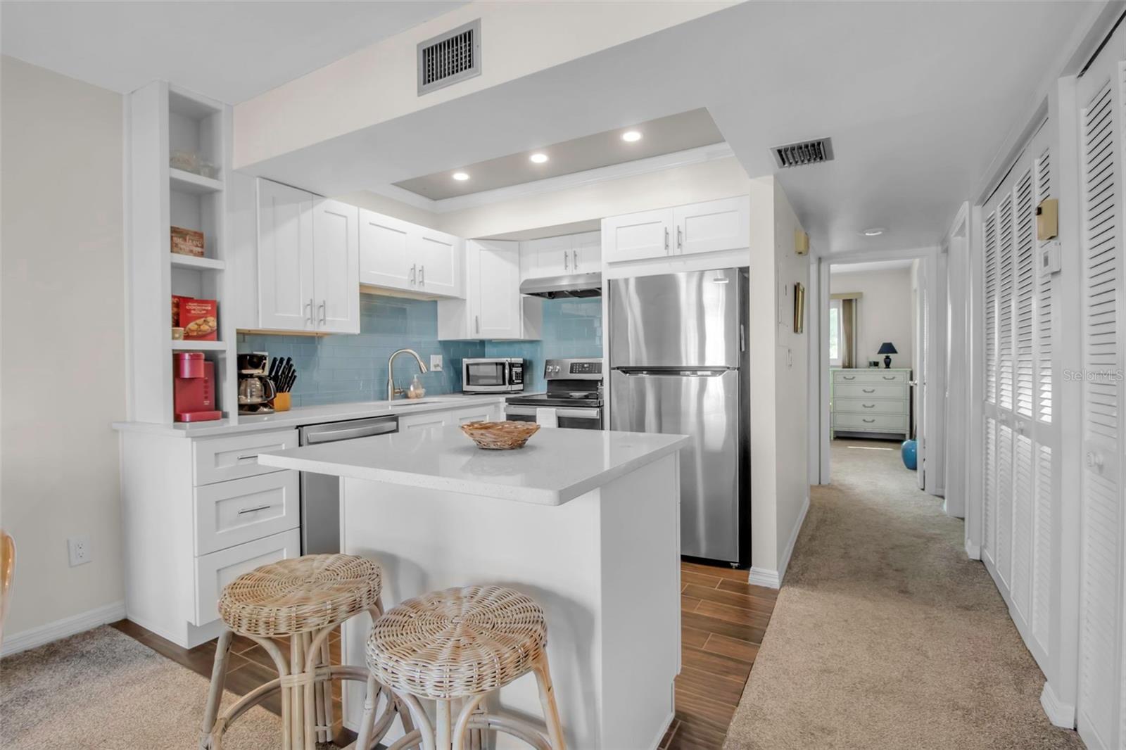 TURN-KEY FURNISHED 2 Bedroom, 2 Bathroom condo only 3 miles from our renowned Siesta Key Beach. The open floor plan creates a spacious and welcoming atmosphere, allowing for a seamless flow between the kitchen, dining area, and living room. The kitchen has been recently updated with Quartz countertops and shaker cabinets. The two bedrooms allow for ample space. The Primary bedroom includes an en-suite bathroom with an upgraded walk-in shower. The screened-in lanai allows for outdoor space to enjoy the Florida weather. Whether you're looking for a full-time residence or a vacation home, this property provides the ideal location and comfortable living space. Detwilers market, Ace Hardware, CVS are only a few minutes away from the condo.