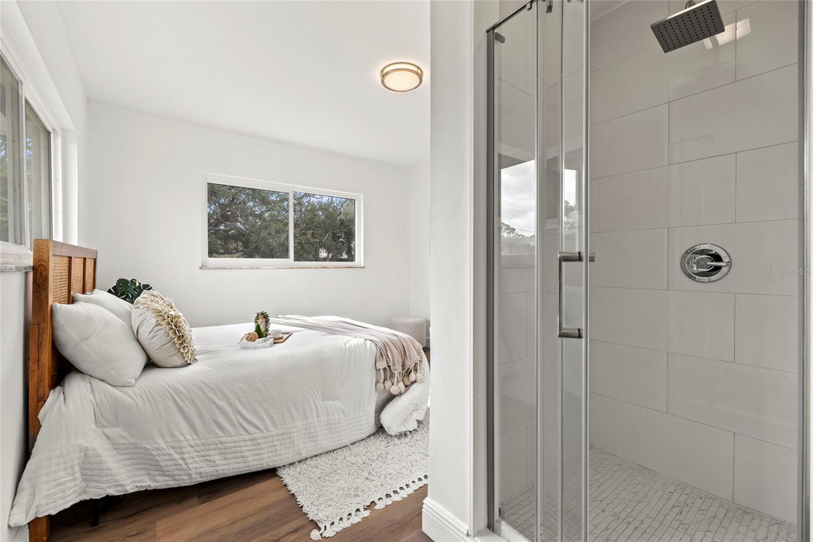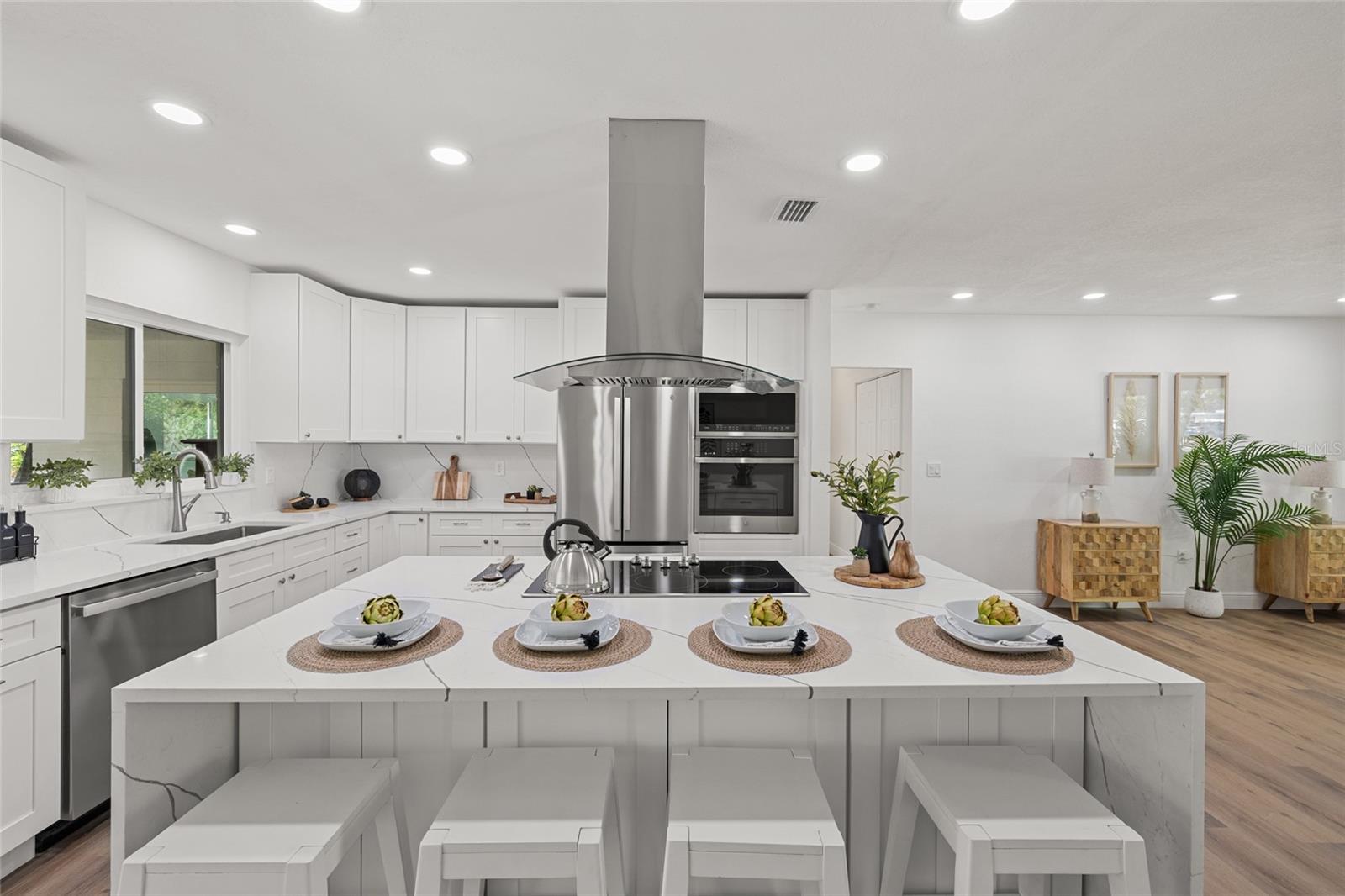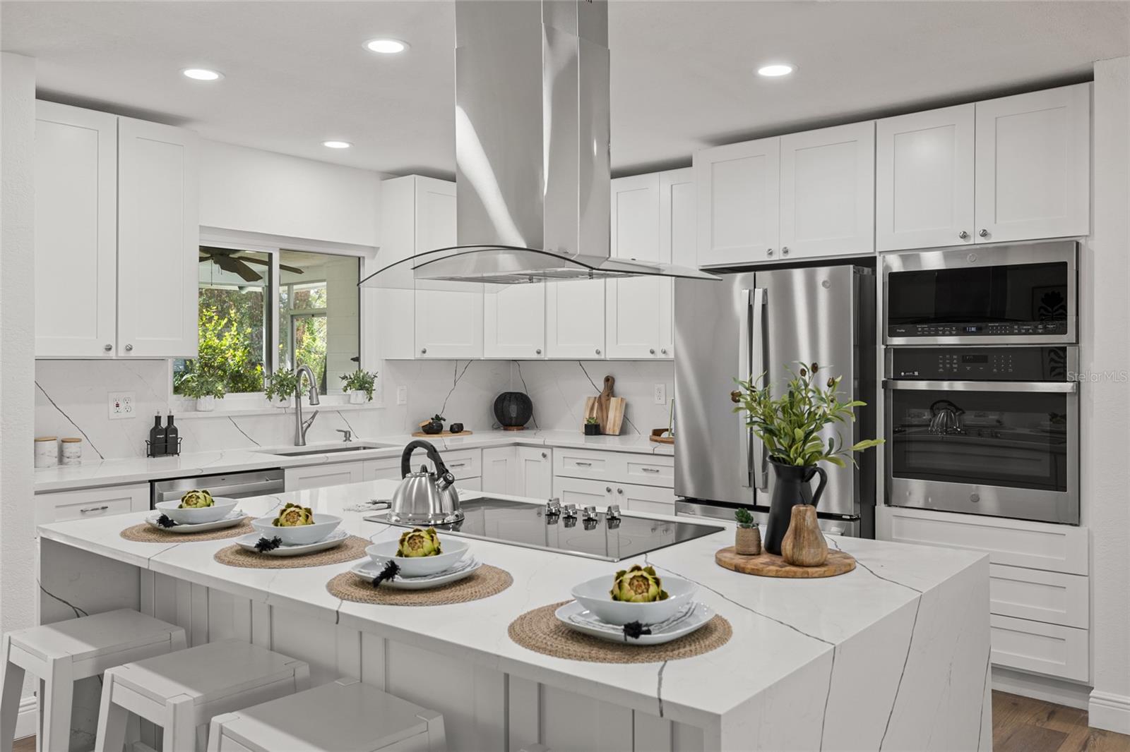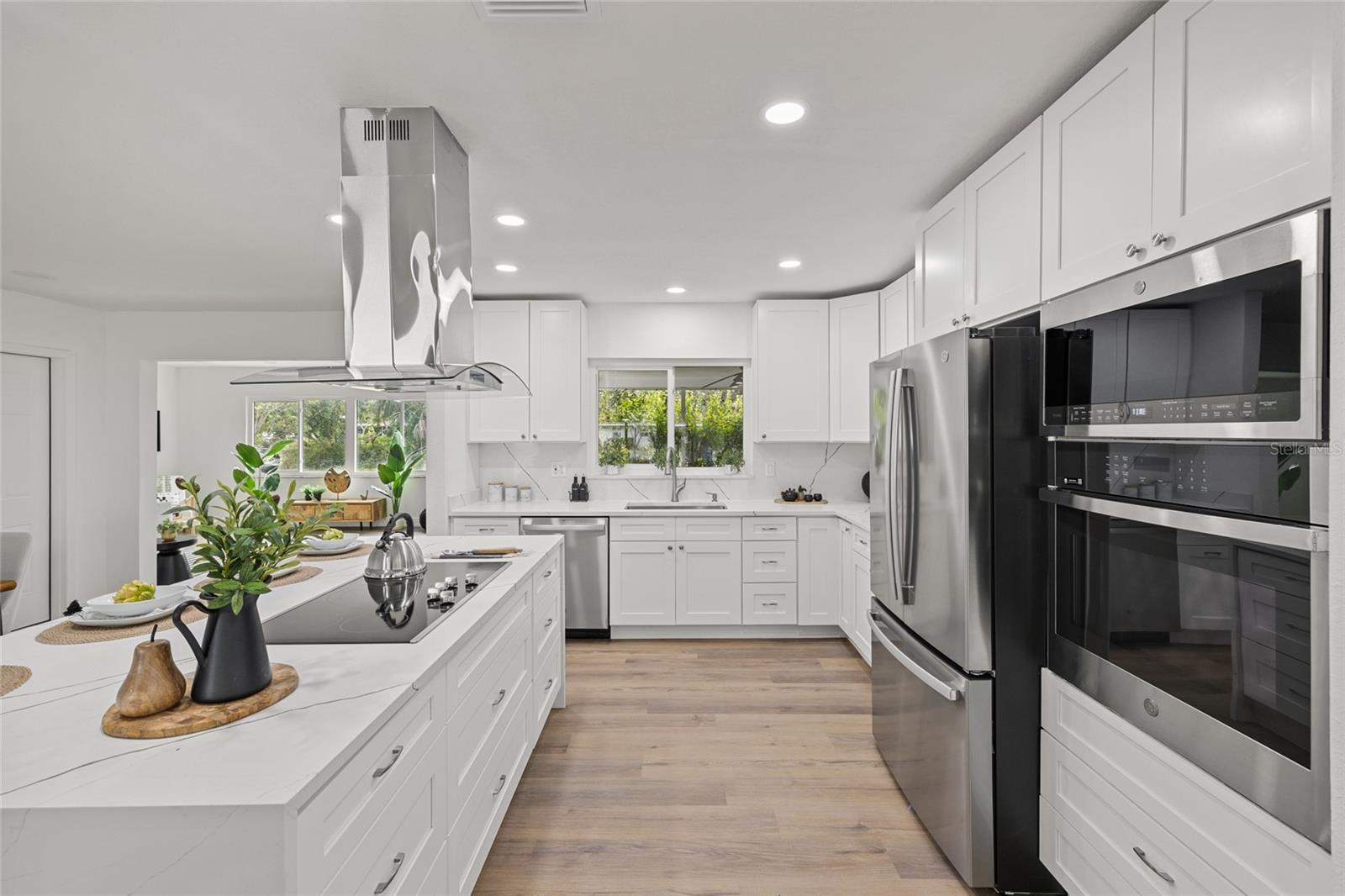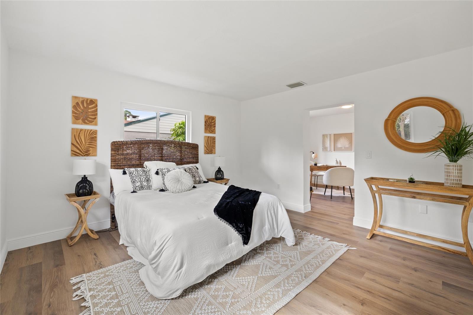 Welcome to Your Dream Home at Ballentine Manor Estates! THIS PROPERTY QUALIFIES FOR A 1% LENDER INCENTIVE IF USING PREFERRED LENDER? This beautifully remodeled property offers a perfect blend of modern style and comfortable living, all with the added bonus of no restrictive HOAs. From the moment you enter through the custom-designed front door, you’ll feel the charm and sophistication of this home. The spacious Great Room serves as the centerpiece, combining the kitchen, dining, and living areas into one seamless and inviting space. The kitchen is a true masterpiece, boasting a striking waterfall island with cooktop and custom stainless hood, brand-new stainless steel appliances, built-in oven and microwave, quartz countertops, a tile backsplash, and stunning 42-inch cabinets. It’s a modern chef’s dream, ideal for both entertaining and everyday living. The adjoining living area is bright and airy, thanks to large windows that fill the space with natural light. The family room, with its free-standing wood-burning fireplace, adds a cozy touch and creates a perfect gathering place. Just off the family room, the third bedroom features an ensuite bathroom and private outdoor entrance, making it ideal for guests or extended family. Down the hallway, you’ll find a convenient powder room and a large storage closet. At the front of the house, the second bedroom offers its own ensuite bathroom with a walk-in shower. Every bedroom has it's own bath! The Primary Bedroom is a private retreat with a unique layout designed for flexibility. It includes a sitting room or office space with two closets and an ensuite bathroom featuring a luxurious walk-in tub with a handheld shower. Sliding doors from the bedroom lead directly to the screened lanai, offering a peaceful escape to enjoy the outdoors. The fenced backyard is expansive and lined with mature trees, offering a blank canvas for you to design your dream outdoor oasis. The two-car garage provides ample storage and includes laundry hookups. Recent upgrades, including a newer roof (2021), a brand-new AC system, and hurricane impact windows, ensure this home is as practical as it is beautiful. Located in the desirable Manatee County area, this property is not only a fantastic primary residence but also a great option for short-term rental opportunities like Airbnb or VRBO. Its prime location is just minutes from marinas, SRQ Airport, the Ringling Museum, downtown Sarasota and Bradenton, and the world-renowned white sand beaches. This home isn’t just a place to live—it’s a lifestyle waiting for you to enjoy. Schedule your showing today!