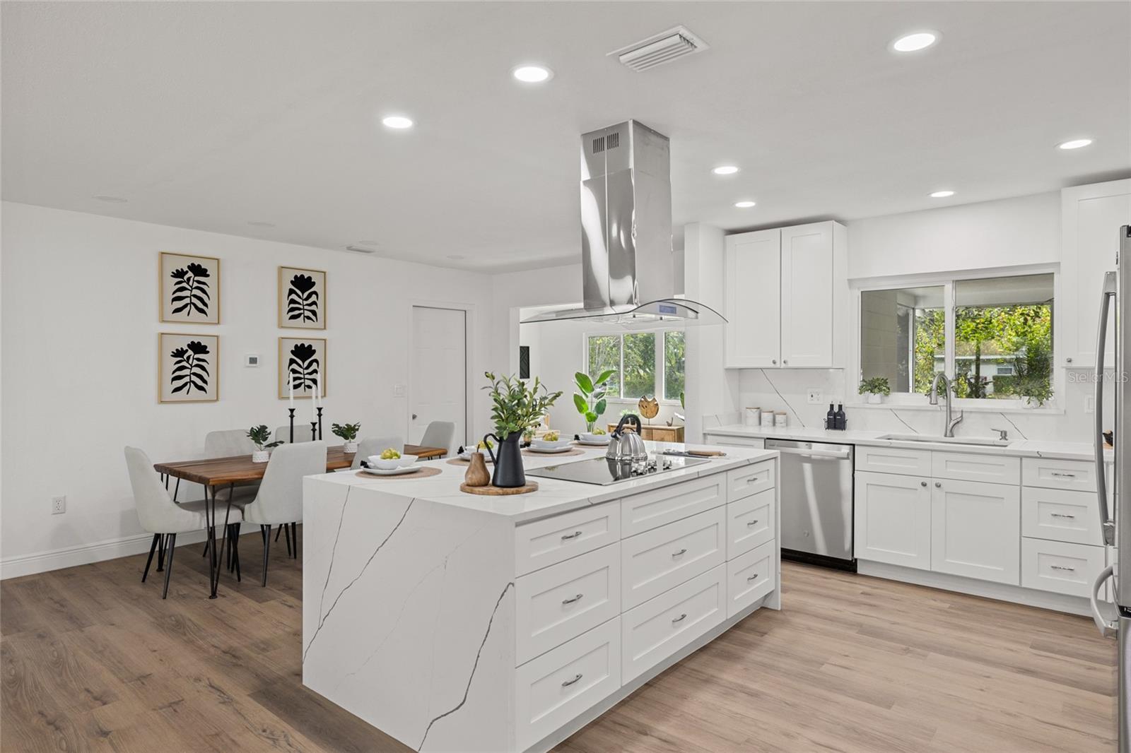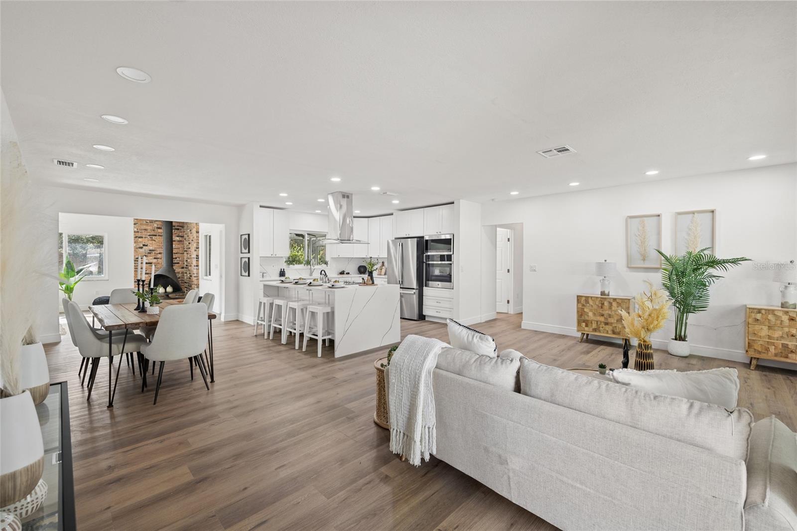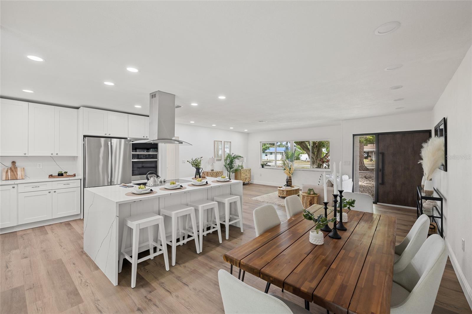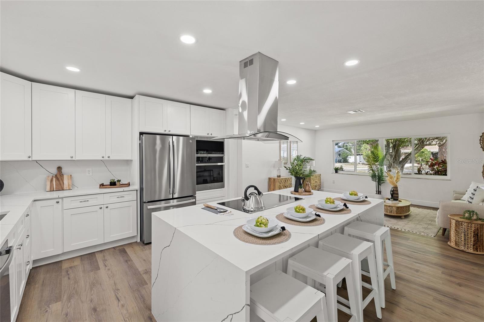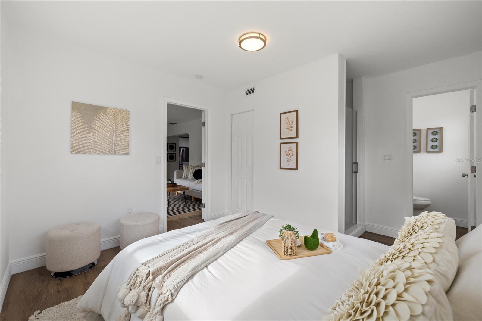Welcome to Your Dream Home at Ballentine Manor Estates! THIS PROPERTY QUALIFIES FOR A 1% LENDER INCENTIVE IF USING PREFERRED LENDER? This beautifully remodeled property offers a perfect blend of modern style and comfortable living, all with the added bonus of no restrictive HOAs. From the moment you enter through the custom-designed front door, you’ll feel the charm and sophistication of this home. The spacious Great Room serves as the centerpiece, combining the kitchen, dining, and living areas into one seamless and inviting space. The kitchen is a true masterpiece, boasting a striking waterfall island with cooktop and custom stainless hood, brand-new stainless steel appliances, built-in oven and microwave, quartz countertops, a tile backsplash, and stunning 42-inch cabinets. It’s a modern chef’s dream, ideal for both entertaining and everyday living. The adjoining living area is bright and airy, thanks to large windows that fill the space with natural light. The family room, with its free-standing wood-burning fireplace, adds a cozy touch and creates a perfect gathering place. Just off the family room, the third bedroom features an ensuite bathroom and private outdoor entrance, making it ideal for guests or extended family. Down the hallway, you’ll find a convenient powder room and a large storage closet. At the front of the house, the second bedroom offers its own ensuite bathroom with a walk-in shower. Every bedroom has it's own bath! The Primary Bedroom is a private retreat with a unique layout designed for flexibility. It includes a sitting room or office space with two closets and an ensuite bathroom featuring a luxurious walk-in tub with a handheld shower. Sliding doors from the bedroom lead directly to the screened lanai, offering a peaceful escape to enjoy the outdoors. The fenced backyard is expansive and lined with mature trees, offering a blank canvas for you to design your dream outdoor oasis. The two-car garage provides ample storage and includes laundry hookups. Recent upgrades, including a newer roof (2021), a brand-new AC system, and hurricane impact windows, ensure this home is as practical as it is beautiful. Located in the desirable Manatee County area, this property is not only a fantastic primary residence but also a great option for short-term rental opportunities like Airbnb or VRBO. Its prime location is just minutes from marinas, SRQ Airport, the Ringling Museum, downtown Sarasota and Bradenton, and the world-renowned white sand beaches. This home isn’t just a place to live—it’s a lifestyle waiting for you to enjoy. Schedule your showing today!