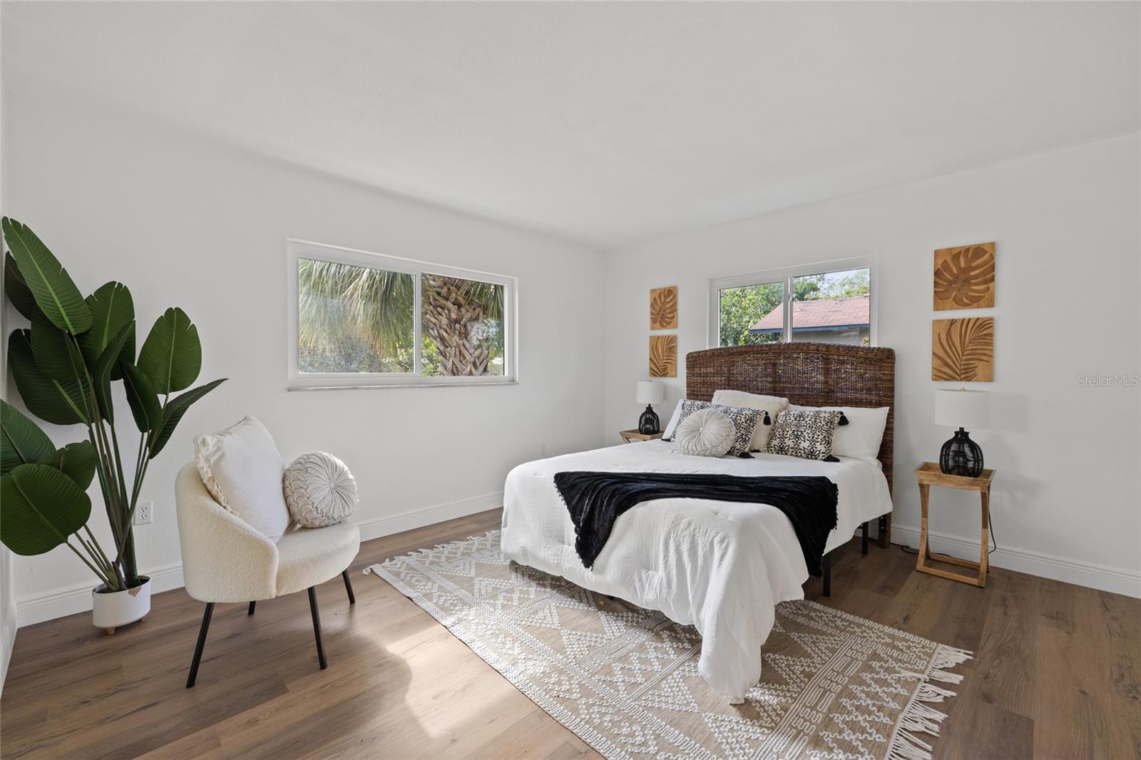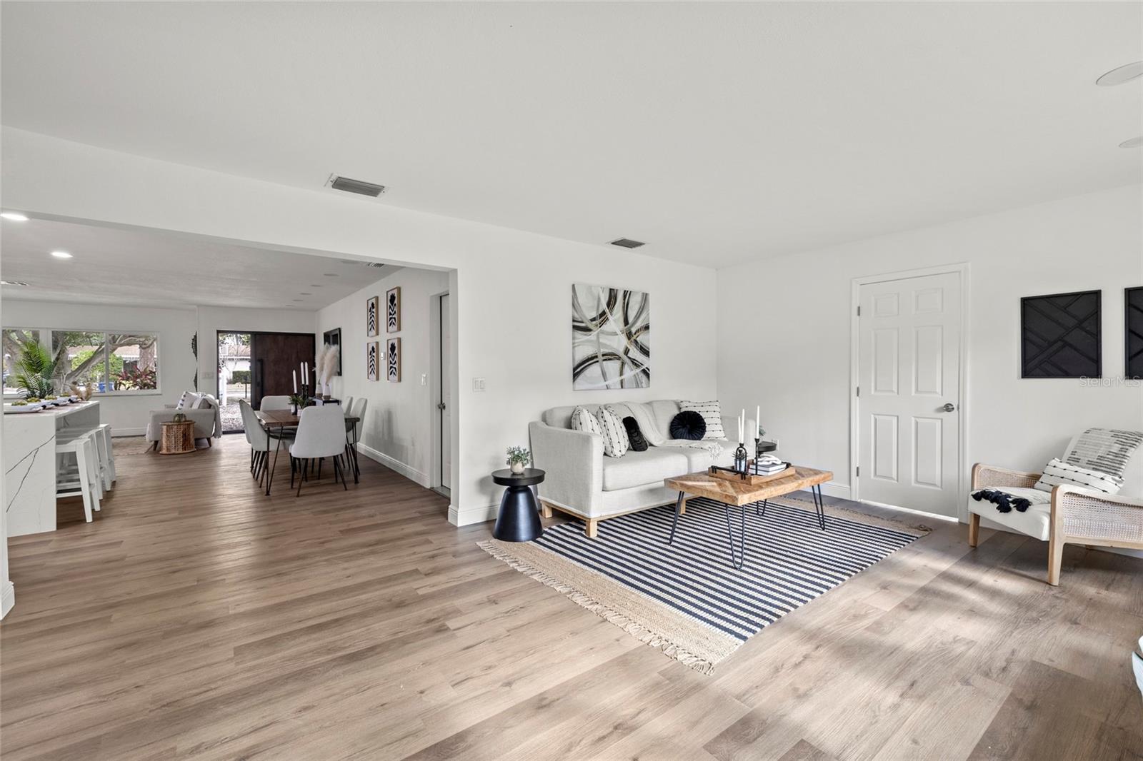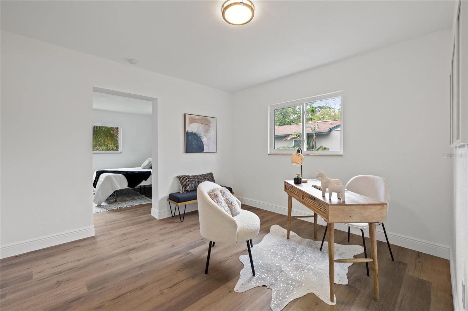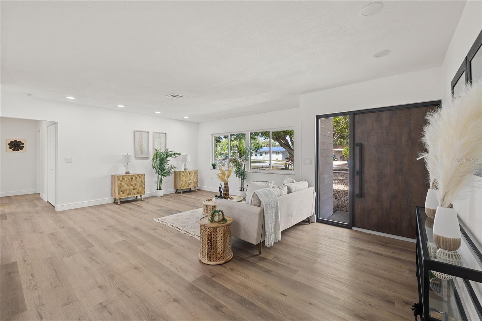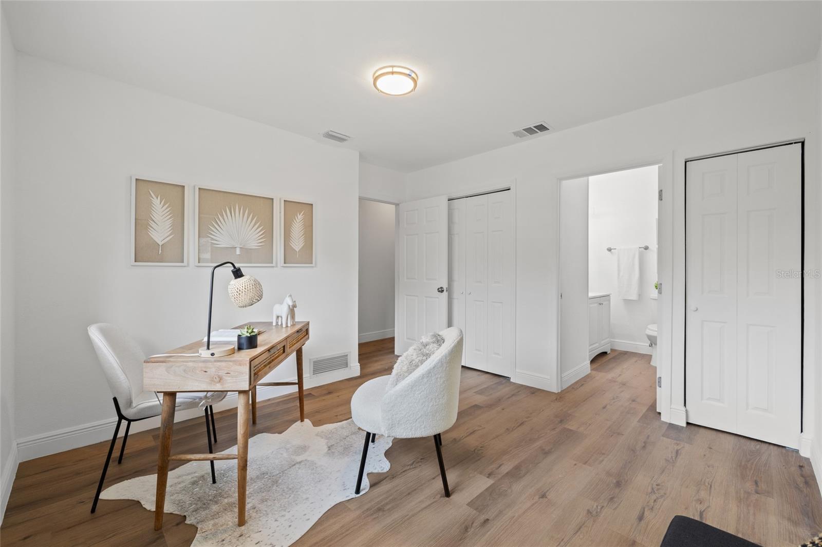Welcome to Your Dream Home at Ballentine Manor Estates! THIS PROPERTY QUALIFIES FOR A 1% LENDER INCENTIVE IF USING PREFERRED LENDER? This beautifully remodeled property offers a perfect blend of modern style and comfortable living, all with the added bonus of no restrictive HOAs. From the moment you enter through the custom-designed front door, you’ll feel the charm and sophistication of this home. The spacious Great Room serves as the centerpiece, combining the kitchen, dining, and living areas into one seamless and inviting space. The kitchen is a true masterpiece, boasting a striking waterfall island with cooktop and custom stainless hood, brand-new stainless steel appliances, built-in oven and microwave, quartz countertops, a tile backsplash, and stunning 42-inch cabinets. It’s a modern chef’s dream, ideal for both entertaining and everyday living. The adjoining living area is bright and airy, thanks to large windows that fill the space with natural light. The family room, with its free-standing wood-burning fireplace, adds a cozy touch and creates a perfect gathering place. Just off the family room, the third bedroom features an ensuite bathroom and private outdoor entrance, making it ideal for guests or extended family. Down the hallway, you’ll find a convenient powder room and a large storage closet. At the front of the house, the second bedroom offers its own ensuite bathroom with a walk-in shower. Every bedroom has it's own bath! The Primary Bedroom is a private retreat with a unique layout designed for flexibility. It includes a sitting room or office space with two closets and an ensuite bathroom featuring a luxurious walk-in tub with a handheld shower. Sliding doors from the bedroom lead directly to the screened lanai, offering a peaceful escape to enjoy the outdoors. The fenced backyard is expansive and lined with mature trees, offering a blank canvas for you to design your dream outdoor oasis. The two-car garage provides ample storage and includes laundry hookups. Recent upgrades, including a newer roof (2021), a brand-new AC system, and hurricane impact windows, ensure this home is as practical as it is beautiful. Located in the desirable Manatee County area, this property is not only a fantastic primary residence but also a great option for short-term rental opportunities like Airbnb or VRBO. Its prime location is just minutes from marinas, SRQ Airport, the Ringling Museum, downtown Sarasota and Bradenton, and the world-renowned white sand beaches. This home isn’t just a place to live—it’s a lifestyle waiting for you to enjoy. Schedule your showing today!