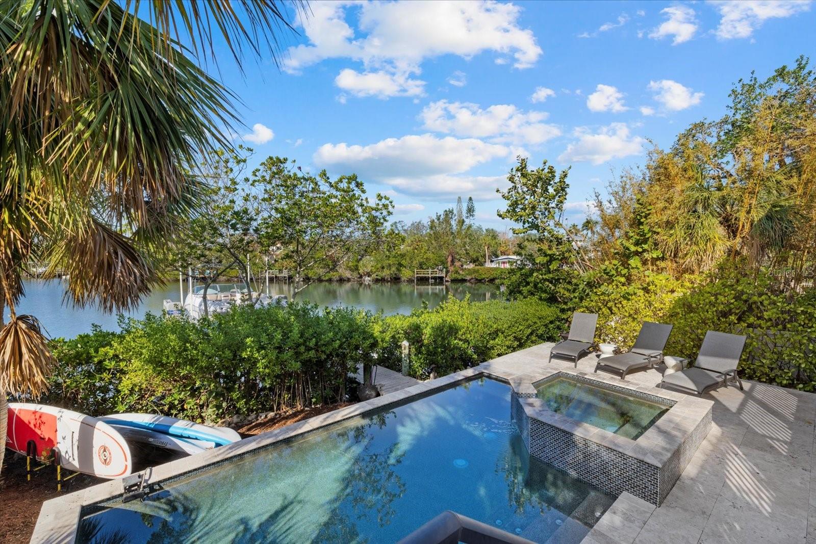 Price Reduction!! Welcome to your dream coastal retreat, where luxury meets relaxation, just 2 blocks from the award-winning Siesta Key Beach. This owner designed and custom built home is designed for those who crave the ultimate Florida lifestyle. A stunning 5-bedroom, 4 full bath, with 2 powder rooms affords unmatched elegance. Step into your backyard oasis featuring a saltwater pool, hot tub, screened lanai, and an open patio, perfect for entertaining or unwinding after a day at the beach. With wide water views, a private kayak launch, and a 10,000 lb boat lift, you’ll have seamless access to the tranquil waterways right from your backyard. The heart of the home is a chef’s dream, featuring solid wood cabinets, Wolf and SubZero appliances, and quartz countertops. The reverse osmosis water system and whole-house soft water conditioner elevate the kitchen experience. With two laundry rooms, two tankless water heaters, and two A/C units, this home is designed for comfort and efficiency. From quartz countertops in the bathrooms to the premium finishes throughout, every detail has been carefully curated to enhance your living experience. Located just two blocks from the sugar-white sands of Siesta Key Beach, this home is situated on a quiet street with a beach access point at the end. The vibrant Siesta Key Village is less than a mile away, offering an array of dining, shopping, and entertainment options. This Siesta Key gem offers the perfect blend of coastal charm and modern amenities. Whether you’re kayaking or boating from your backyard, hosting friends poolside, or strolling to the village for a night out, this home delivers the Florida lifestyle you’ve been dreaming of. Schedule your private tour today and make this piece of paradise your own!