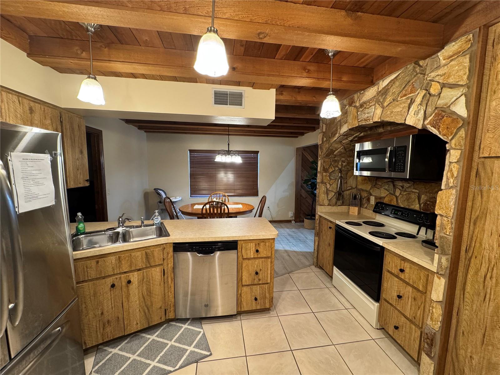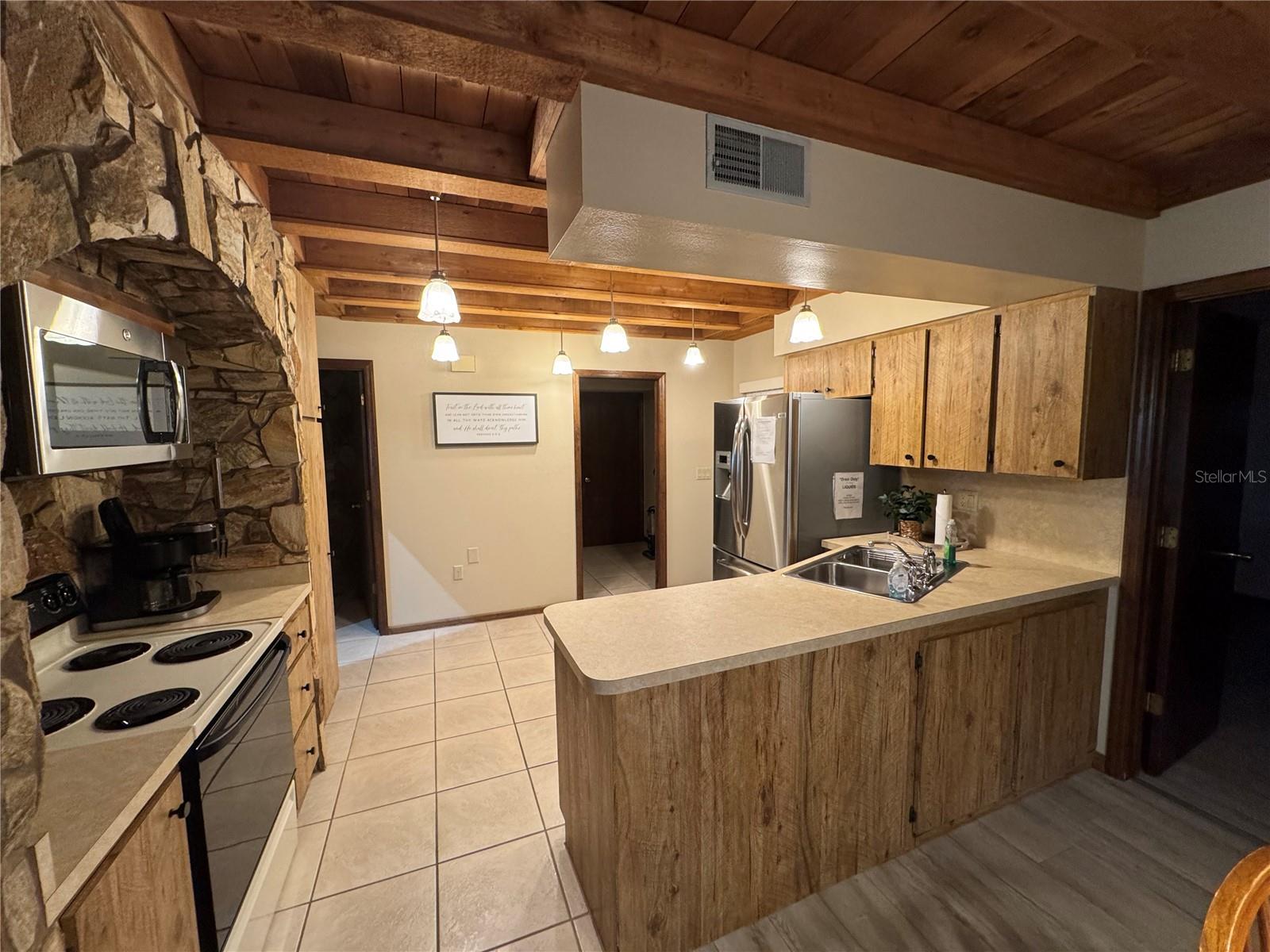 This charming 3 bedroom 3 bath home Vacation Home is located in the heart of Pinecraft. Central to everything. Walk to Amish Restaurants and shops and just a short drive to Sarasota's famous beaches. Private entrance to the upstairs 2 bedroom 1 bath suite with private bath and sitting area makes for a great rental or open it all up for a large family. Beautiful stone wood burning fireplace, with a spiral staircase that takes you to the second floor. Oversized attached garage with 2 drive-thru garage doors. Also for extra storage or parking there is a detached 16x20 garage in the back. Don't miss this rare opportunity. Selling turn-key furnished, just as you see it!