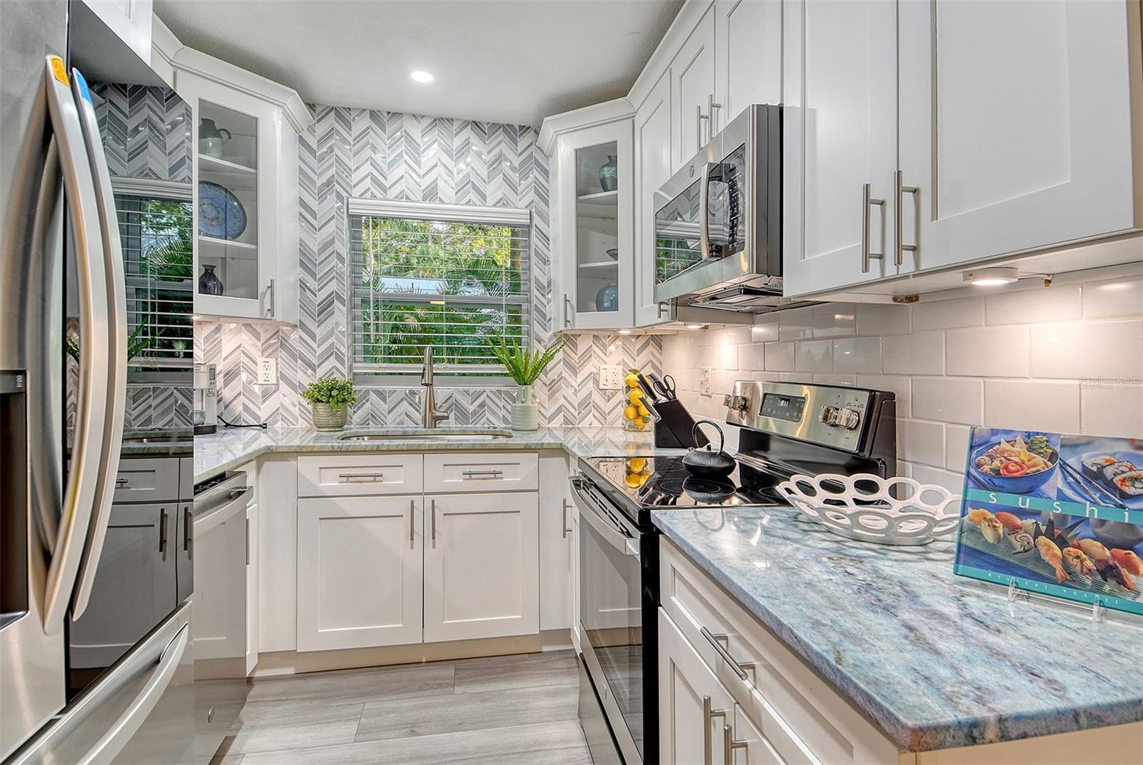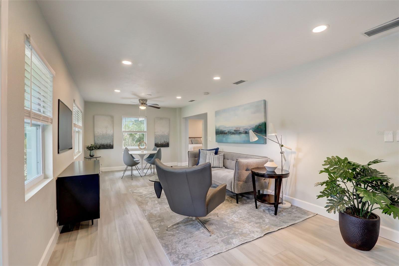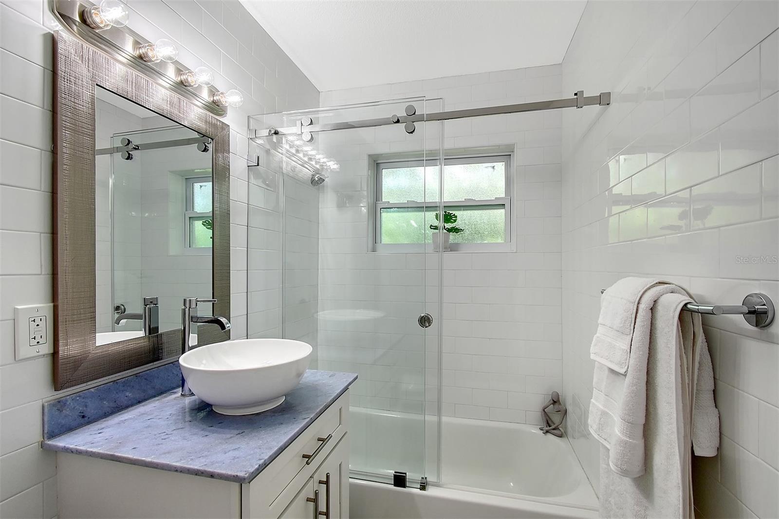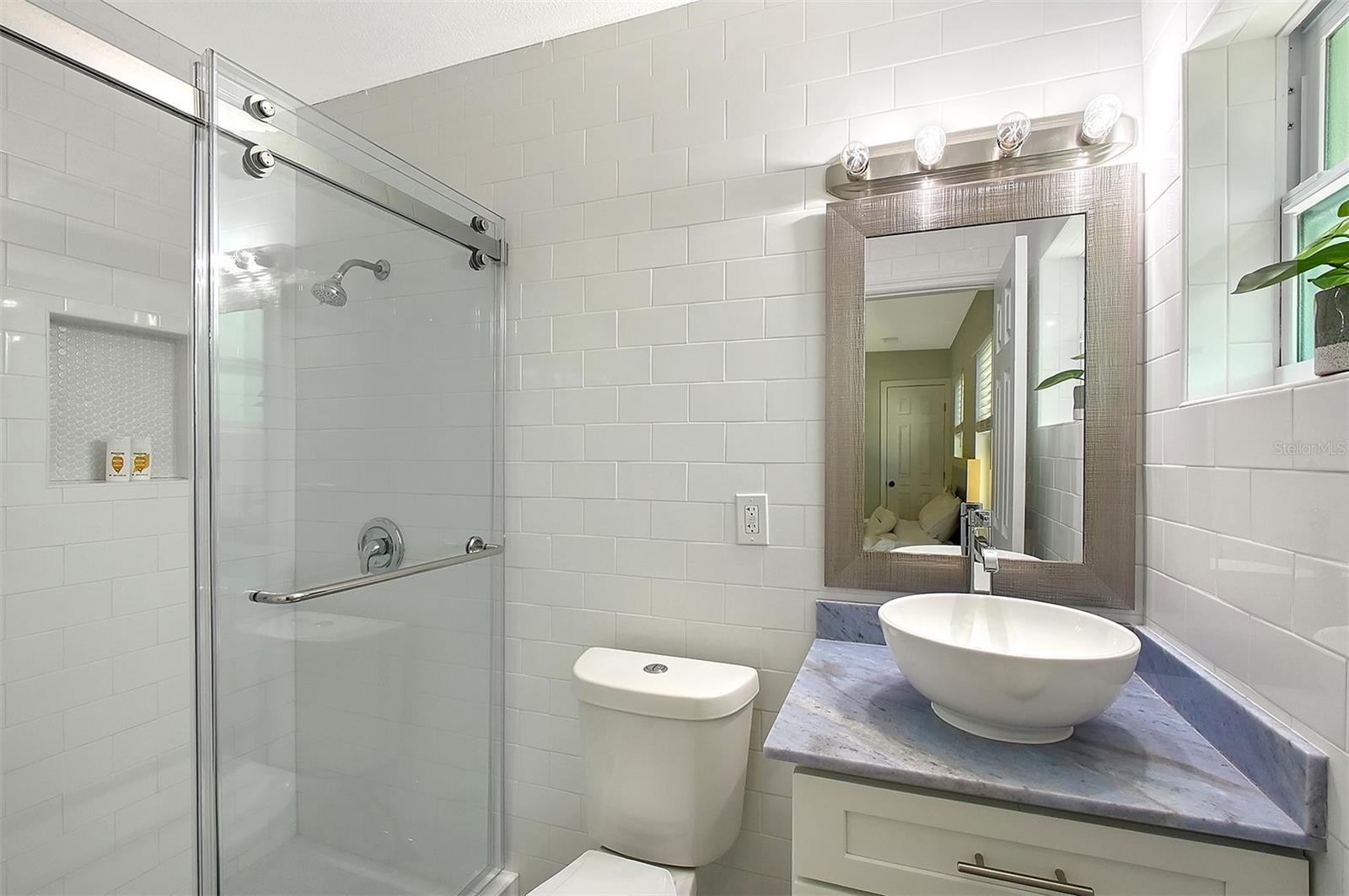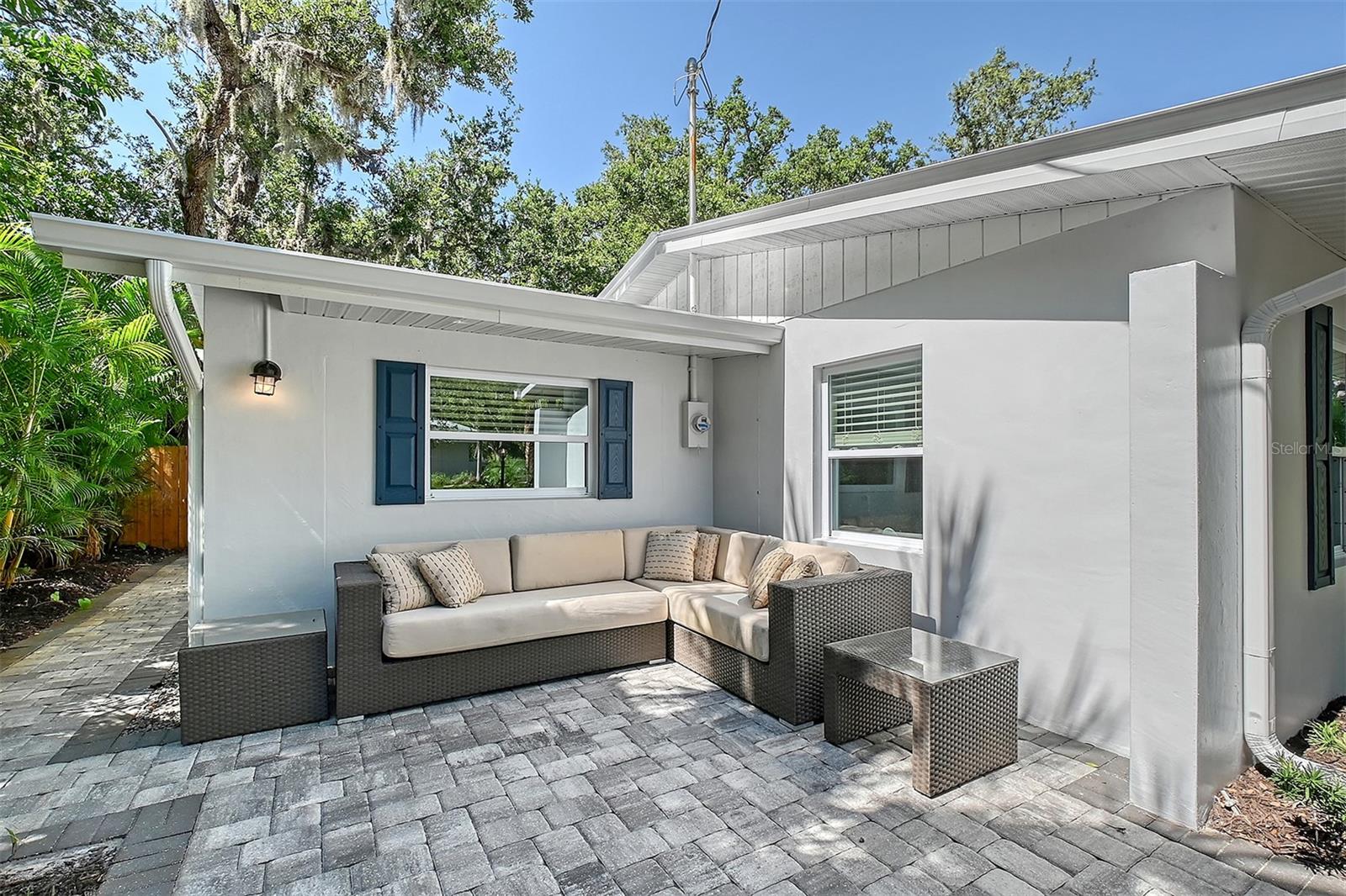 Welcome to Sapphire Shores, this property is on almost a quarter acre. This stunning 2023-25 completely remodeled Mid Century Modern residence is nestled in the highly sought-after Indian Beach/Sapphire Shores community of Sarasota. No expense was spared in transforming this gem into a luxurious haven, offering 4 bedrooms, 3 baths. Two outdoor relaxation areas, and a privacy fenced yard. The in-law suite with full bath, is perfect for guests, Airbnb, or a work-from-home office. New metal roof, aluminum soffit, and gutters, new AC system, hurricane impact windows and doors. New Kitchen, and appliances, New stackable washer and dryer. Newly furnished, and equipped. Experience the ultimate Gulf Coast lifestyle with this exceptional home, located West-of-the-Trail, mere minutes from downtown Sarasota, St. Armand’s Circle, and the pristine sands of Lido Beach. Enjoy the perfect blend of timeless elegance and modern convenience in this exquisite property. Step inside to discover a thoughtfully designed interior, boasting high-end finishes, an open-concept layout, and an abundance of natural light. The spacious living areas flow seamlessly, creating an ideal setting for both relaxation and entertaining. The gourmet kitchen features state-of-the-art appliances, custom cabinetry, and stunning Blue Onyx countertops, making it a chef’s dream. Come take a new look! Move in Ready!