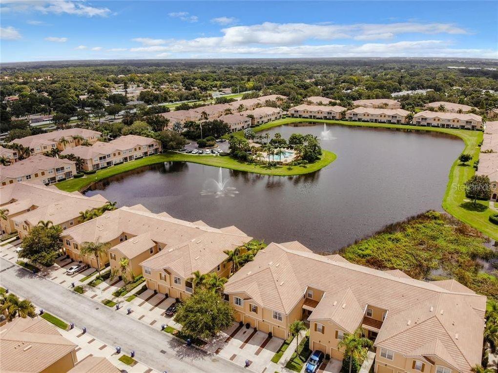 Parkridge Condominiums are highly desirable and perfectly located within minutes UTC shopping Center with its many shops and restaurants Sarasota airport, beaches and Waterside. Second floor unit has a premium pond view from the master bedroom screened lanai as well as privacy from neighbors. It has an open floor plan with high ceilings and carpeting throughout. Once car garage is attached and can be accessed from the home directly and guest parking is available. In this gated community you have access to the heated pool and club house year around.