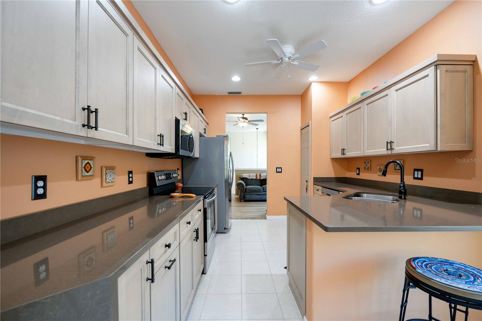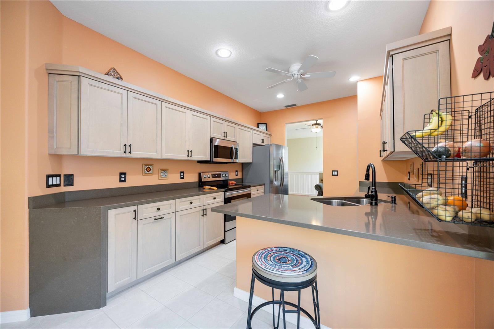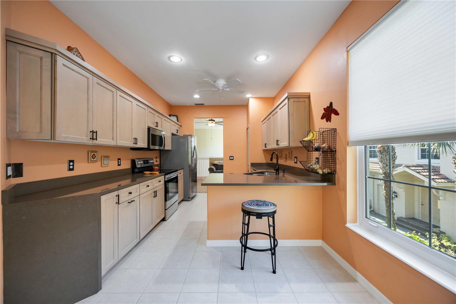Introducing a beautifully updated end-unit light and bright condo featuring newly installed hurricane-rated windows, eliminating the need for cumbersome hurricane shutters. This meticulously renovated residence boasts new kitchen cabinetry and countertops, new refrigerator & microwave, and both bathrooms renovated. Nestled within the gated community of Arielle in Palmer Ranch, this maintenance-free home offers three spacious bedrooms and a gourmet kitchen equipped with quartz countertops, one-level bar seating, and stainless-steel appliances. The inviting family room seamlessly integrates an additional dining area, while the flooring showcases a tasteful blend of tile which has appearance of wood styling, and carpet. The laundry room is thoughtfully designed with cabinetry, moving away from the traditional wire racks. Step outside to the expansive screened-in lanai, where you can relax amidst a serene view of mature vegetation and trees, ensuring a serene and private atmosphere. The master bedroom, featuring sliding doors that lead to the lanai, includes an updated en-suite bathroom complete with a garden tub, shower, and dual sinks. The versatile third bedroom can serve as a guest room or a cozy den/office, catering to your lifestyle needs. Arielle's community amenities are pet-friendly and include a heated pool and spa, a cabana, and a gas grill, perfect for entertaining friends and family. The location is truly ideal, with the Legacy Trail—a picturesque 18.5-mile paved fitness trail right behind the community with easy access from Sawyer Loop Road, and Culverhouse Nature Park just a short stroll away too. Siesta Key Beach is conveniently located under six miles from your new home, while the UTC Mall and downtown are approximately 20 minutes away. This is a must-see property that combines comfort, convenience, and modern living! Check out the home's cinematic video: https://youtu.be/NwscaTqemw0