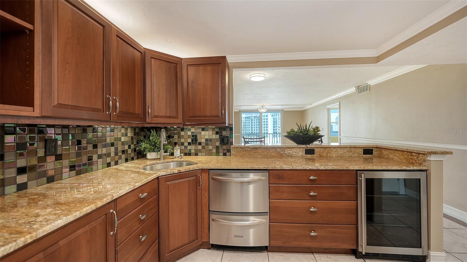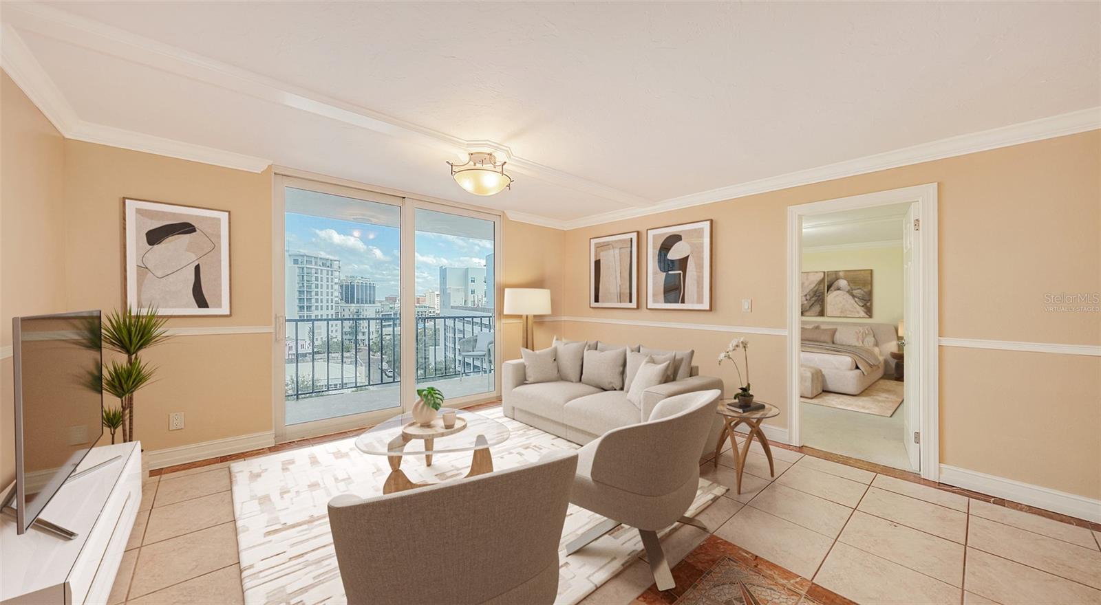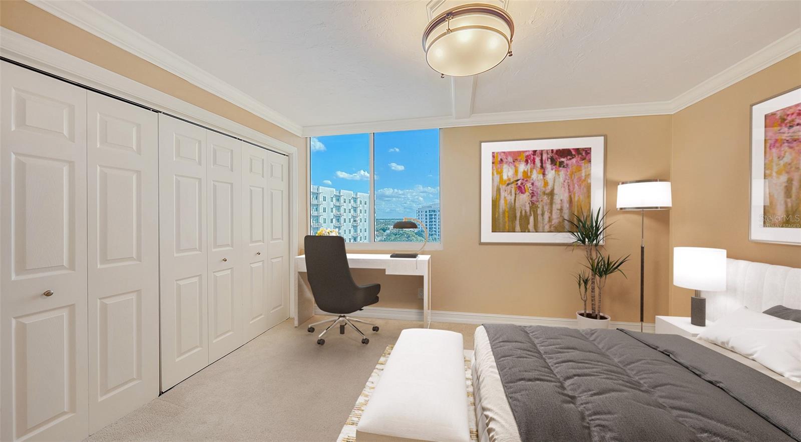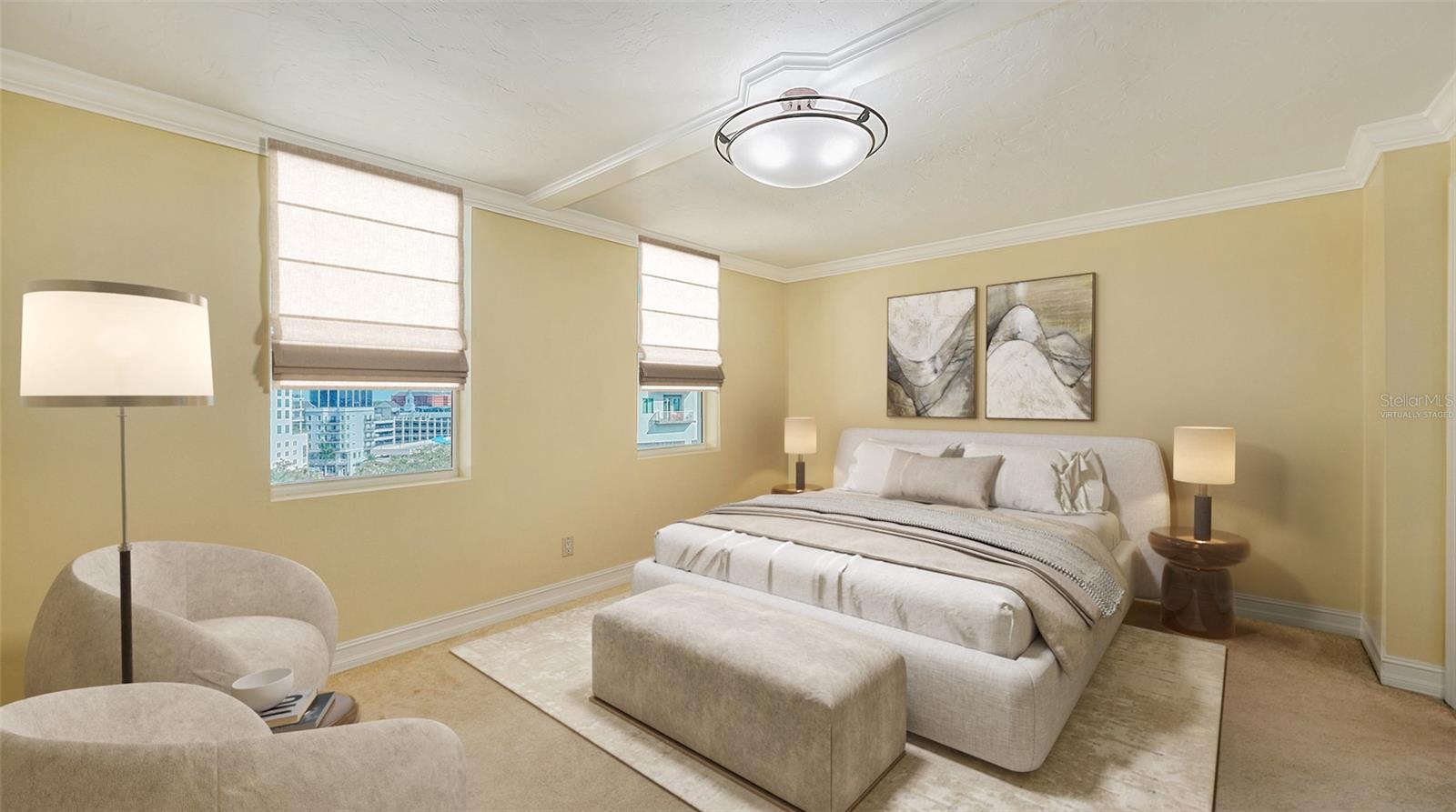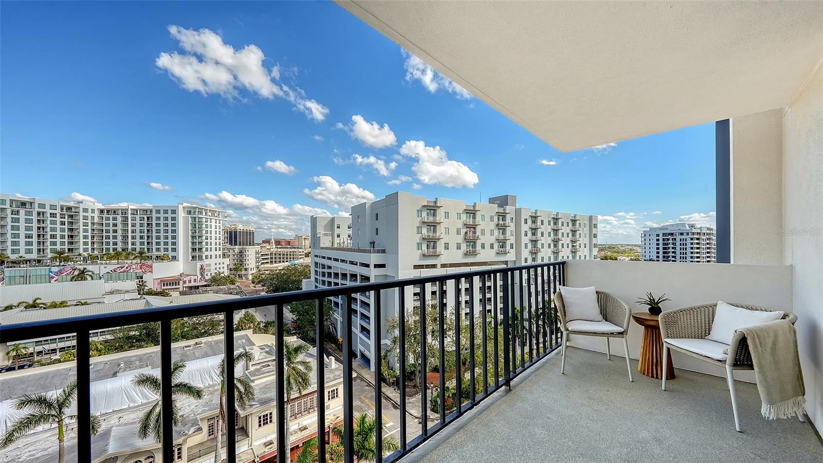 One or more photo(s) has been virtually staged. Welcome to Your Urban Oasis in the Heart of Sarasota's Cultural District. High desired CORNER UNIT, perched on the 11th floor of the prestigious 101 Condominium, this spacious 2-bedroom, 2-bath residence offers a sophisticated retreat with commanding CITY VIEWS of Sarasota's dynamic cityscape, both easterly and southern, letting in lots of morning and afternoon light. Step into downtown city -living where meets coastal convenience. The kitchen features stone countertops and stainless steel appliances including dishwasher drawers and wine refrigerator perfect for both everyday living and entertaining. The primary suite has a walk-in closet, while the guest bedroom cleverly maximizes space with not only a large closet but also, a laundry closet with European style washer/dryer combo. The private balcony provides the perfect vantage point for enjoying city vistas with fresh breezes and tantalizing glimpses of Sarasota Bay. The 101 Condominium has recently completed an $8 million modernization project, elevating the building's amenities to new heights. Residents enjoy access to a newly renovated lobby, heated swimming pool, state-of-the-art fitness center, and an elegant social room for gatherings. Located in Sarasota's most walkable neighborhood, directly across from Island Park, this residence puts you steps from Marina Jack's world-class marina and the celebrated Gallery Row of Palm Avenue. Immerse yourself in downtown's vibrant dining scene, cultural attractions, and boutique shopping, all within moments of your front door. This exceptional property represents the pinnacle of downtown Sarasota living, where luxury, location, and lifestyle converge. Schedule your private showing today to experience the elegance of elevated city living. The 101 Condominium, Downtown Sarasota.