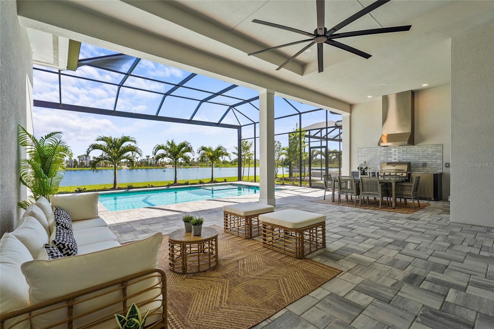 ONLY $560/SQFT! UNBEATABLE PRICE. Welcome to your dream home in Wild Blue at Waterside! Wild Blue is Lakewood Ranch's hottest new neighborhood and this is a great opportunity to get into the community at an unbeatable price! The community will include a resort style clubhouse with 25,000 sq. ft. of indoor/outdoor space and an on-site lifestyle director. Amenities will include a fitness studio with work out classes, golf simulator and putting green, dining both indoors and out and a theatre. In addition, Wild Blue residents will have access to the shared hub at Midway Sports Complex which includes tennis & pickleball courts, basketball, kayak launch, walking trails, dog parks, a playground and pavilions. Conveniently located near Waterside shopping and dining, UTC, Lakewood Ranch Main Street, and just a short drive to Sarasota Airport and the renowned beaches along the gulf coast. Why wait to build?! This newly completed, never-lived-in Mayfield III model by Stock Luxury Homes offers modern luxuries throughout and embodies the perfect combination of style, comfort, and premier location. Situated on a 64' lot, with an expansive outdoor area and over 3,000 sq ft of living space, which includes 4 bedrooms, 3.5 bathrooms, formal dining, and a study. The home greets you with exquisite landscaping, and exceptional curb appeal with bahama shutters and a sleek glass entry door. Thoughtfully curated, this open concept floor plan features soaring ceilings, designer lighting and fans, and tile flooring that flows seamlessly throughout. The kitchen is well-appointed with soft close custom cabinetry, quartz countertops, beautiful tile backsplash, a large island, and high-end KitchenAid appliances. The great room is complimented by a dry bar and pocket sliding doors to the lanai, making this home perfect for entertaining. The owners suite is equipped with an on-suite that includes dual vanities, a luxurious shower and soaking tub, and a private water closet. Two large walk-in closets are ready to be customized into the closet of your dreams. The owners retreat also offers private lanai access with french doors. Step outside to your backyard oasis, featuring an expansive lanai, a state-of-the-art outdoor kitchen, and a clear-view pool screen that frames tranquil water views. Relax in the saltwater pool and spa, designed to provide a true sense of paradise. This luxurious home offers the ultimate Florida lifestyle, blending sophisticated design, stunning surroundings, and the unmatched quality of Stock Luxury Homes. PGT impact resistant windows and sliding doors and a 3-car garage with epoxy flooring will check all the boxes for the man of the house. Don't miss the opportunity to make this one yours!