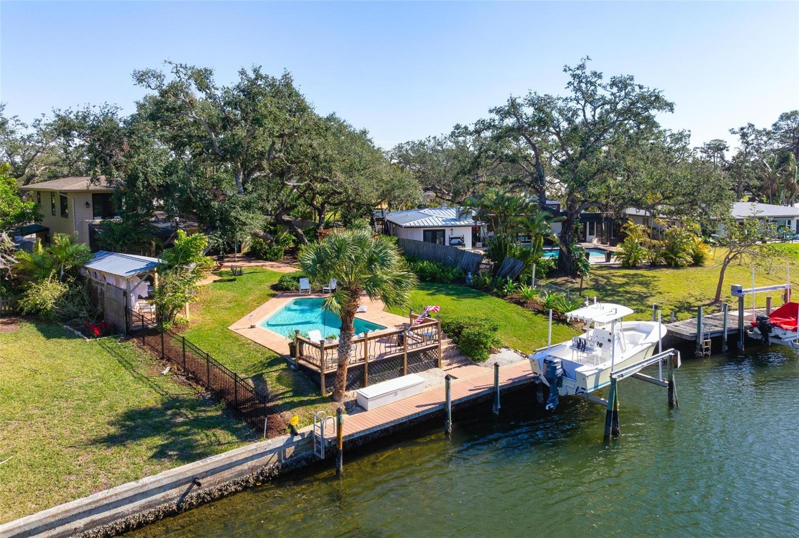PRICE REDUCTION!!! Spectacular waterfront property nestled W of the Trail off of Stickney Point and 41. This fabulous completely updated gem offers Florida coastal living at it's best with the backyard on the "Y" intersection of two canals. Boaters and lovers of nature will enjoy this mature oak tree laden lot that has been professionally landscaped. It is a quick boat or kayak ride, walk or drive to world famous Siesta Key with it's ever-glistening sand. Concrete, lighted pillars guide you to the driveway with custom designed pavers. The magnificent glass hurricane impact front door leads to an open floor plan boasting distinctive terrazzo floors and light from spacious impact windows throughout. The rear french doors offer spectacular views of 126 feet of garden, fountains, open private pool and water surrounded by Chicago Brick. These french doors include sliding screens that close for terrific cross ventilation throughout this home. They will lead you to the delightful large trex deck (cool deck) with breezes and views galore, room for a dinner party of 12. Step down to the 45 foot dock with fish stand and 10,000 lb. lighted boat lift. Backyard features several seating areas including a pergola with Chicago Brick and a covered cabana for grilling/lounging with lovely views of the pool and water leading directly to the ICW which is minutes away. The kitchen features quartz counters, wooden shaker cabinetry to the ceiling, updated stainless steel appliances. reverse osmosis with minerals, push button disposal and views of backyard activity through the double windows. It effortlessly flows through to the living and dining room creating an ideal space for indoor entertaining. Enter the separate family room with travertine floors and french doors leading to a newly screened in lanai with side wall fan. Two guest rooms, one with a Murphy bed, open to a newly renovated full bath on main floor. Retreat upstairs to the second floor primary suite, with fantastic water views from every direction, hardwood floors and impact French doors with retractible screens for cross ventilation. Window treatments include Hunter Douglas blackout shades. You will love the private balcony for its spectacular sunsets, moon rises, and your morning coffee. The adjoining bathroom features separate double sinks and two large custom walk-in closets. Enjoy the large Carrera tiled walk-in shower with its marble seat and niches. Throughout you will find custom wooden plantation shutters and ceiling fans. This move in ready home is situated in a convenient area of Sarasota, close to Siesta Key, cultural events downtown, opera, ballet, arts, shopping and all of the vibrant events happening along the west coast. Sarasota’s small town feel combines with a big city lifestyle. This home is truly it’s own little piece of paradise. The newly opened Midnight Pass beckons you to the waters of the Gulf of Mexico. Come fish off the dock at 1827. ***NO DAMAGE FROM HURRICANES DEBBIE, HELENE OR MILTON*** HOUSE IS NOT LOCATED IN A FLOOD ZONE. (zone X)