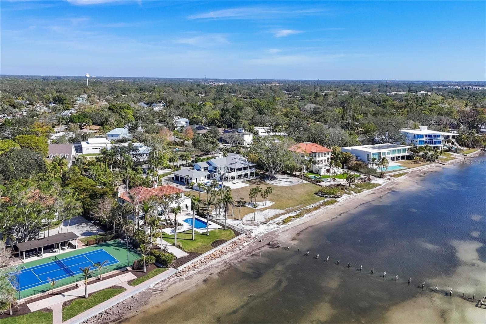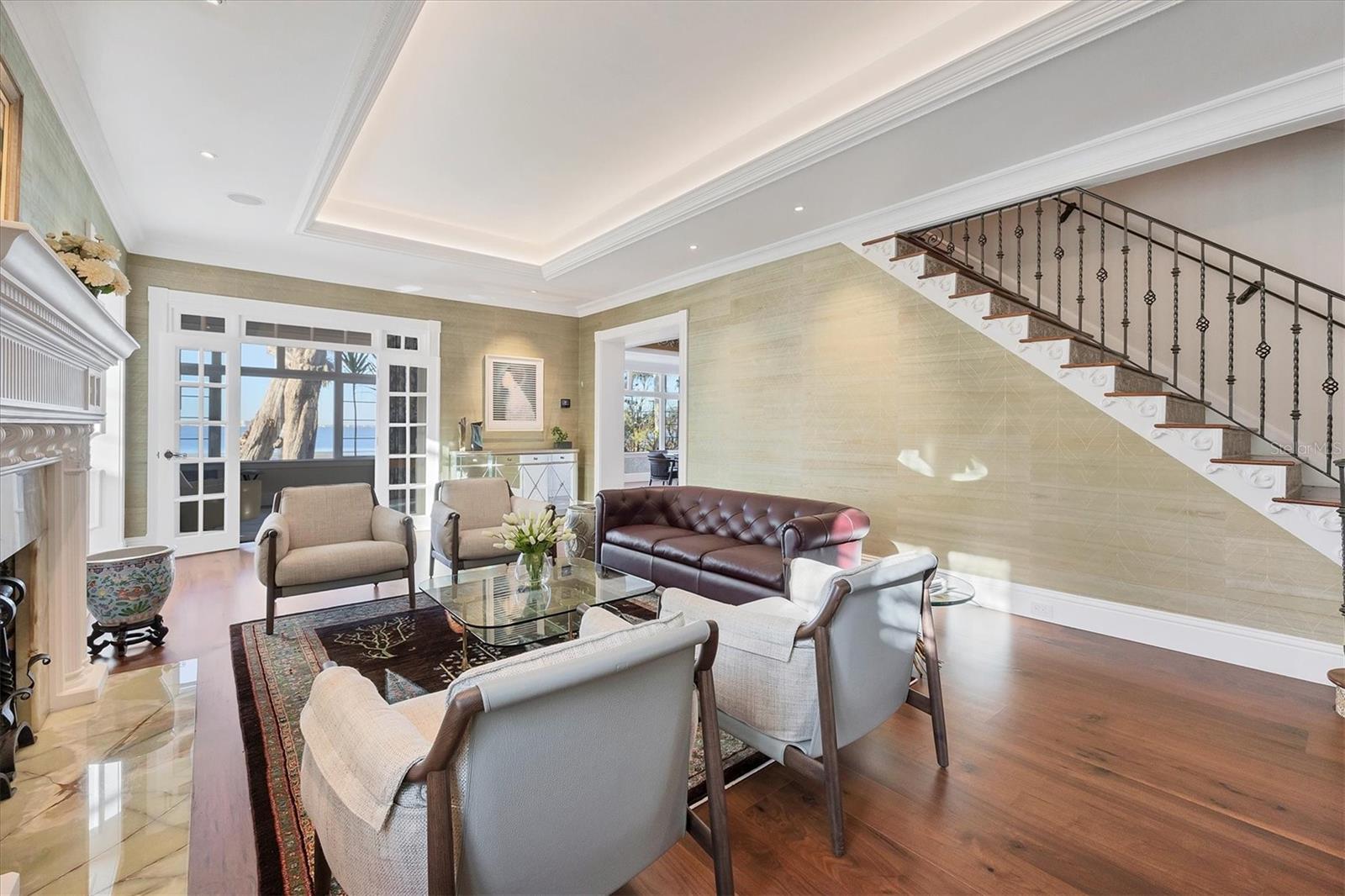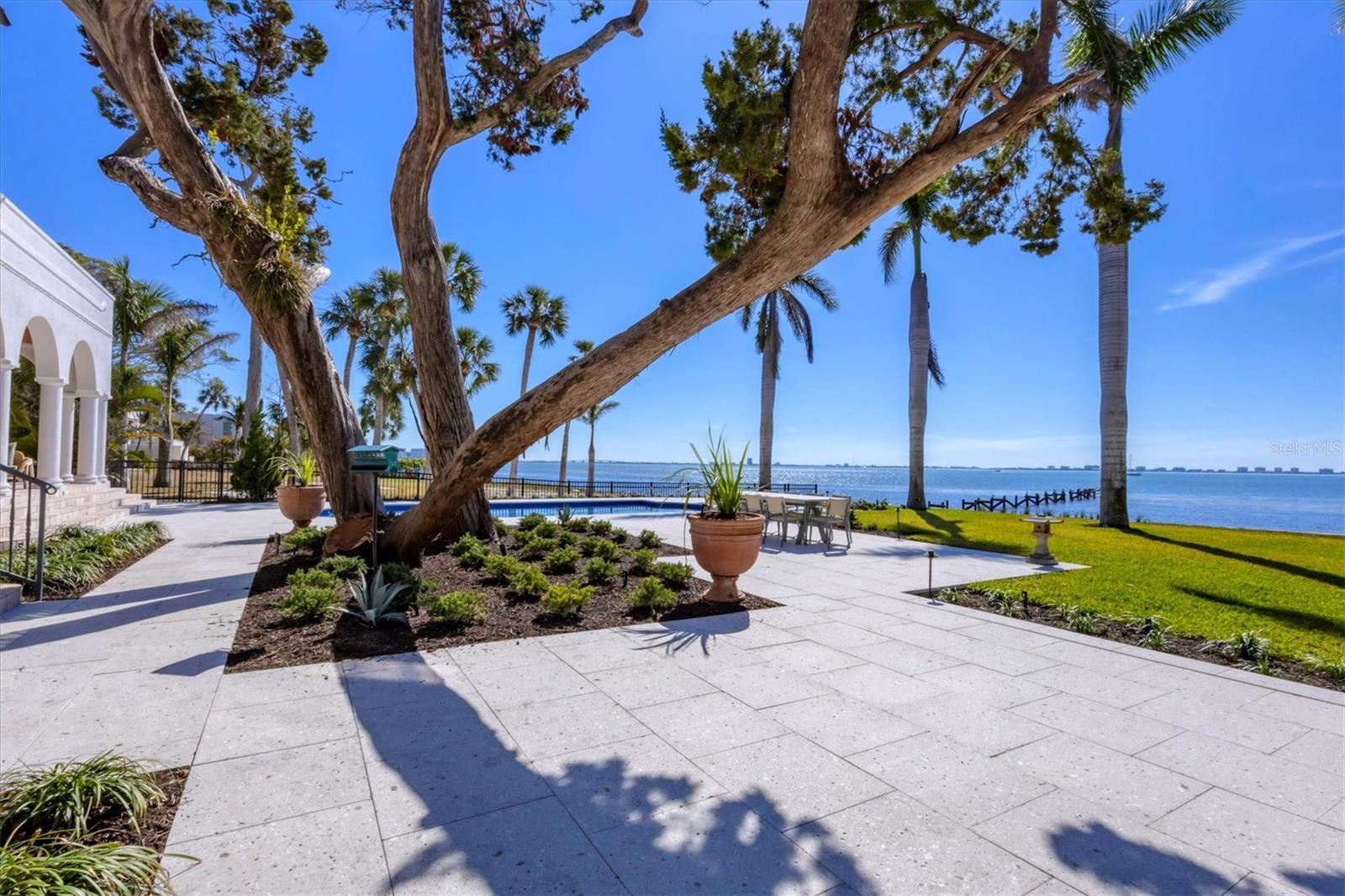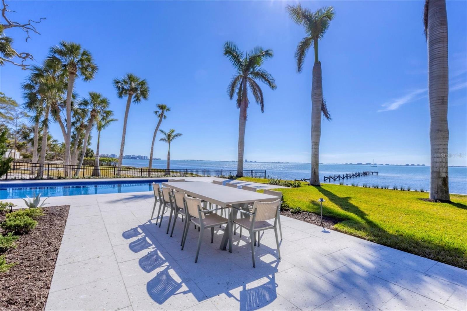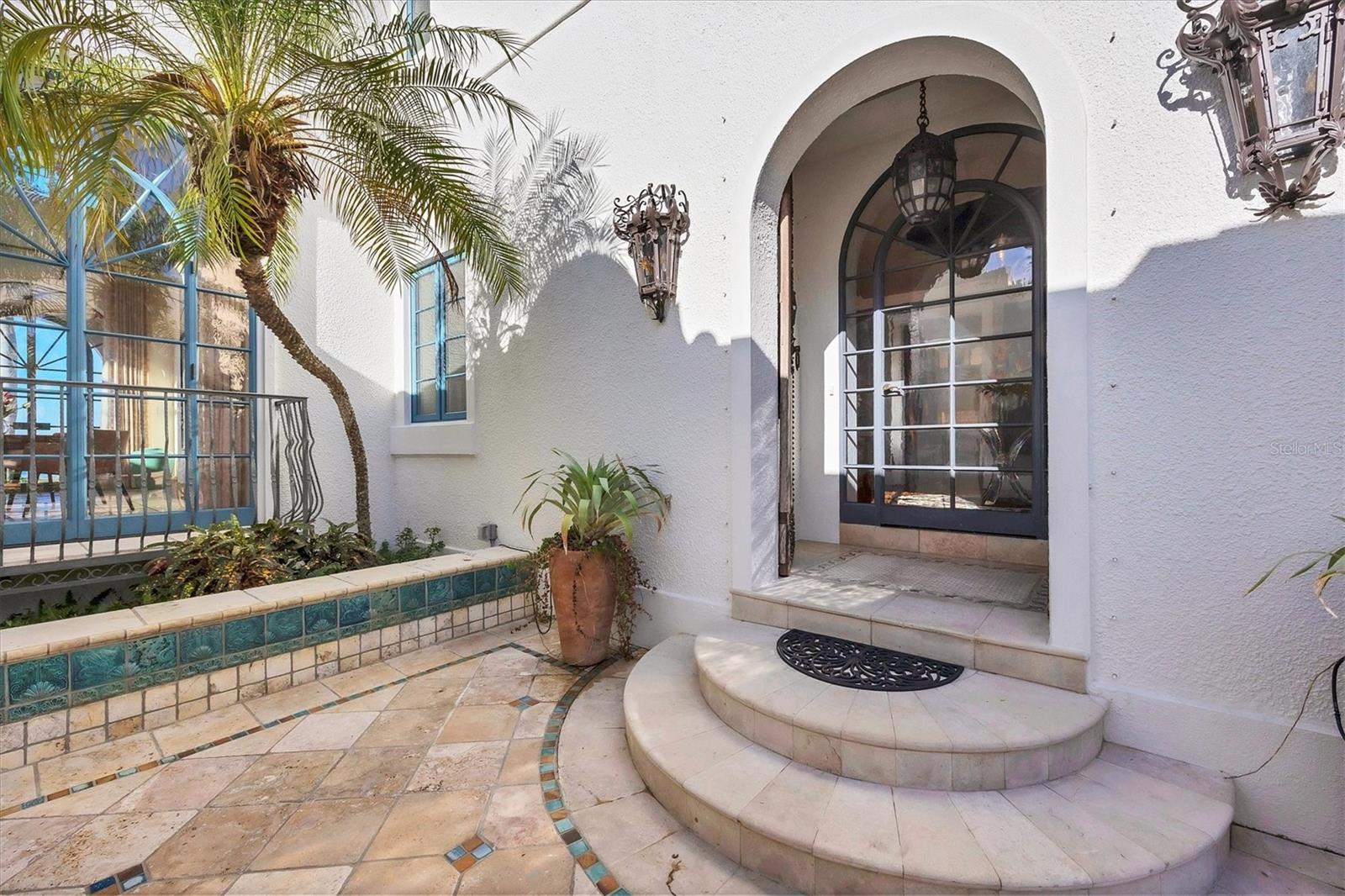 Nestled on nearly three-quarters of an acre, this meticulously updated 1925 Mediterranean Revival residence offers breathtaking, panoramic views of Sarasota Bay, encompassing the downtown skyline, Ringling Bridge and the northern tip of Longboat Key. While preserving its historic charm and original elegance, the home seamlessly integrates modern upgrades designed for both gracious living and entertaining. Upon entering through the gated entry, visitors are greeted by a serene garden with a koi pond and a spacious circular driveway featuring a central fountain, providing ample parking. The gated courtyard leads to a welcoming foyer, which serves as a gateway to the home’s expansive living spaces. To one side lies the formal living room, adorned with a coffered ceiling and an ornate fireplace, while the opposite side reveals a newly renovated kitchen, thoughtfully designed with a Sub-Zero refrigerator, AGA induction range, dolomite countertops, galley sinks and a cozy breakfast area. The formal dining room is perfect for hosting friends and family, offering bay views, a hand-painted recessed ceiling, a marble fireplace and custom built-ins for storage, display and serving. Adjacent to the dining room, the office/den provides tranquil spaces with views of the pool and bay. The great room, with its soaring ceilings, stately fireplace and 10-foot arched doors creates a stunning venue for entertaining, flowing effortlessly onto a spacious covered terrace perfect for sunset views. The second floor boasts three generously sized en-suite bedrooms, each with access to private terraces that showcase captivating vistas. The primary suite, completely reimagined in 2021, epitomizes luxury and relaxation with a custom-trimmed ceiling, a large window for endless Gulf of Mexico views, two French doors leading to an expansive terrace and a custom-organized walk-in closet. The primary bathroom is a retreat with an oversized walk-in shower, floating vanity, a free-standing soaking tub and stunning details and finishes throughout. Designed by renowned landscape architect Michael Gilkey, the grounds have been transformed into distinct outdoor "rooms," featuring a bocce court, expansive patios and a beautifully tiled, heated pool. A charming guesthouse, located adjacent to one of the two two-car garages, includes two rooms, two bathrooms and a kitchenette. With a pocket door, the space can be configured as two separate en-suite bedrooms for ultimate flexibility. Additional enhancements include updated HVAC systems, air conditioning for the garages, upgraded electrical systems, LED and Lutron lighting and hurricane-impact windows and doors. Conveniently located in Indian Beach and Sapphire Shores, this residence is close to downtown Sarasota, SRQ Airport and numerous dining and shopping options. Known as Casa Arula, this remarkable property harmoniously blends historical significance with modern sophistication, creating a truly exceptional place to call home.