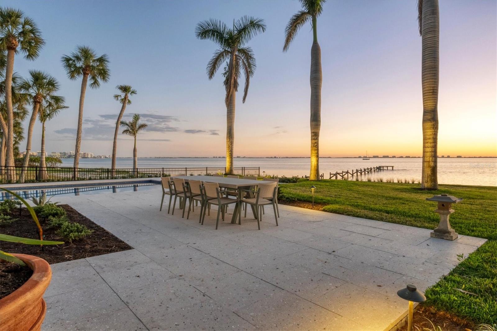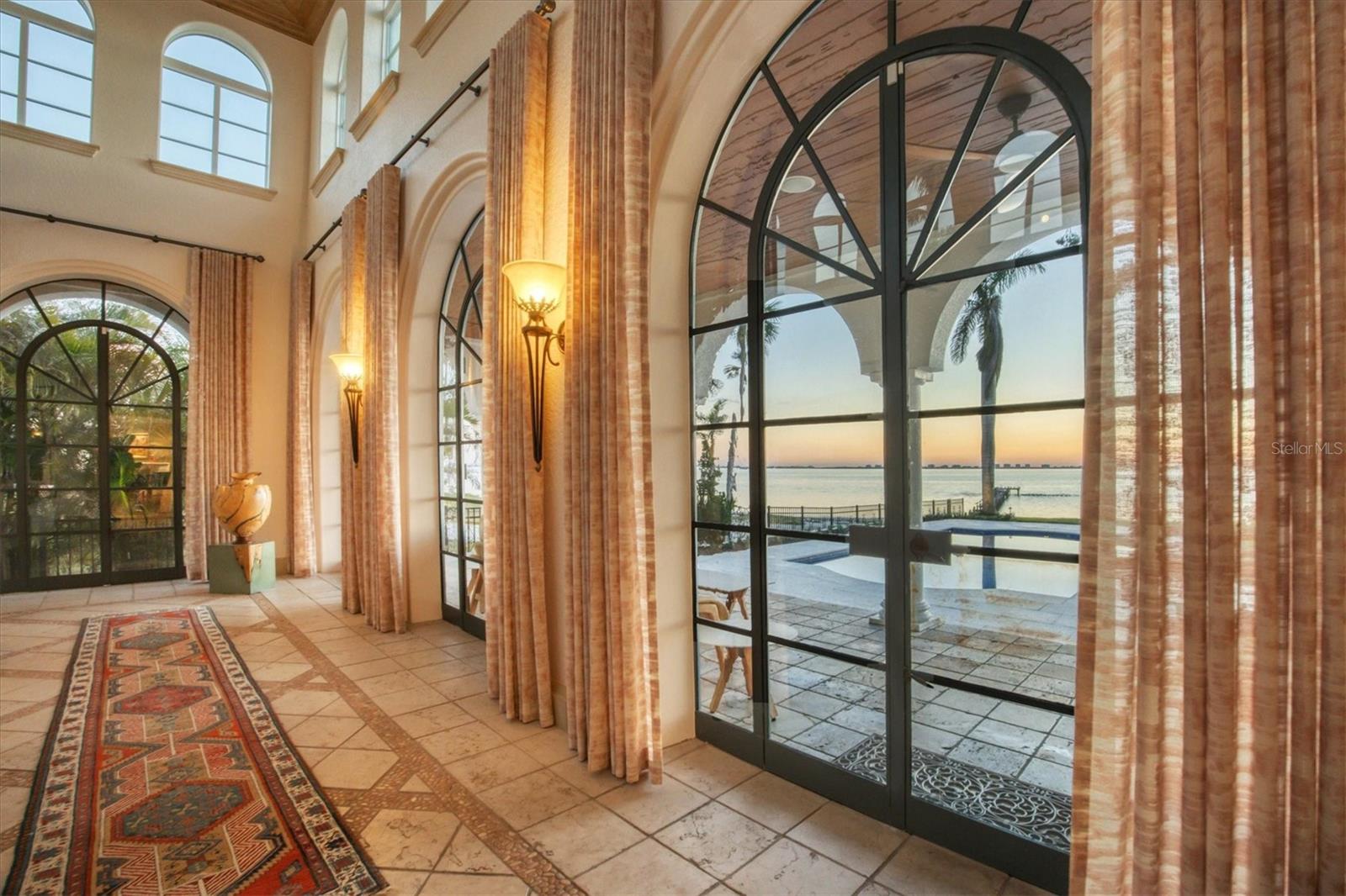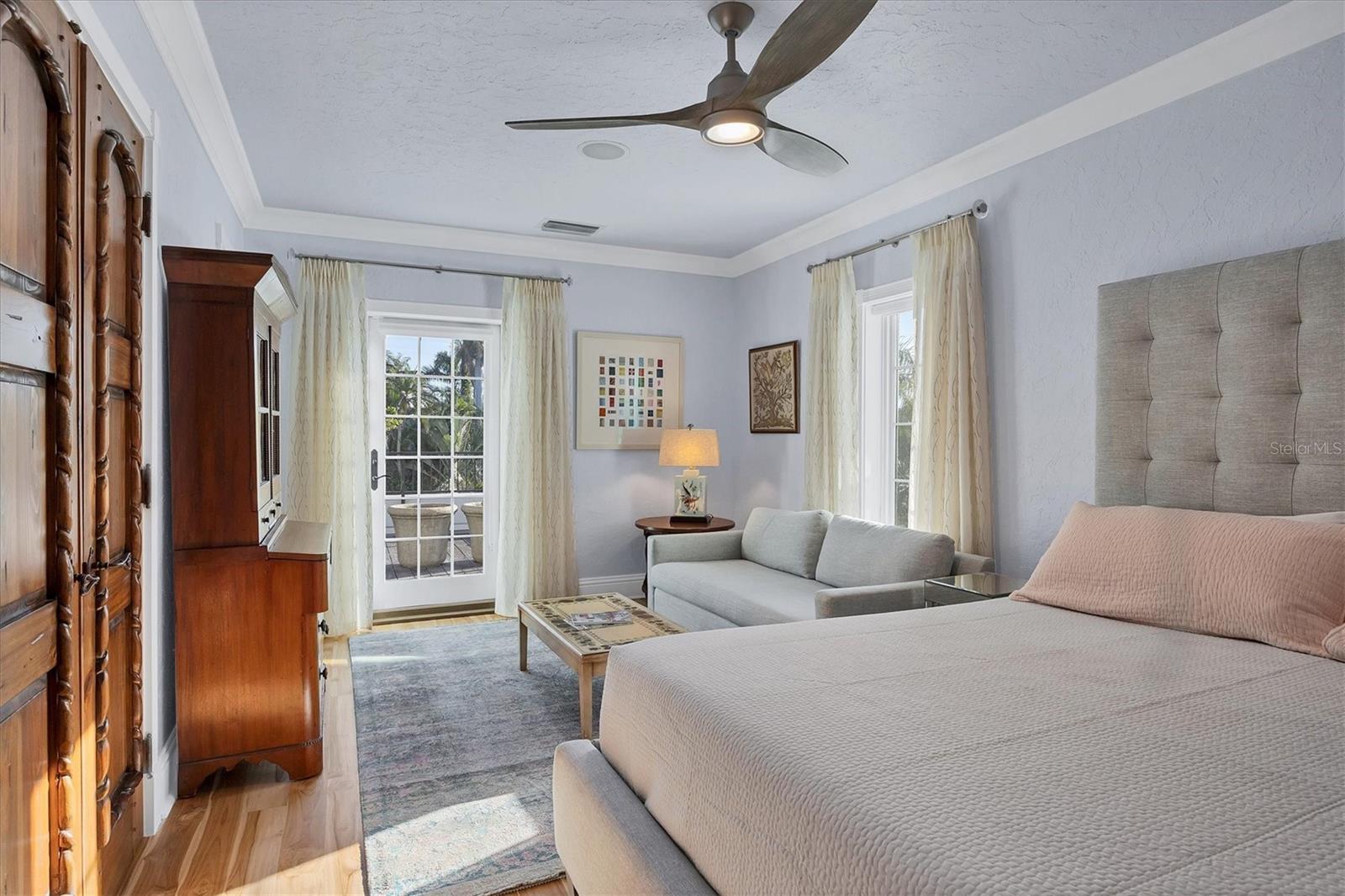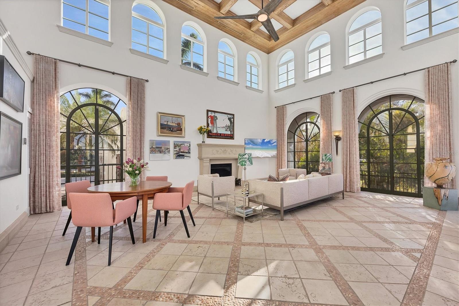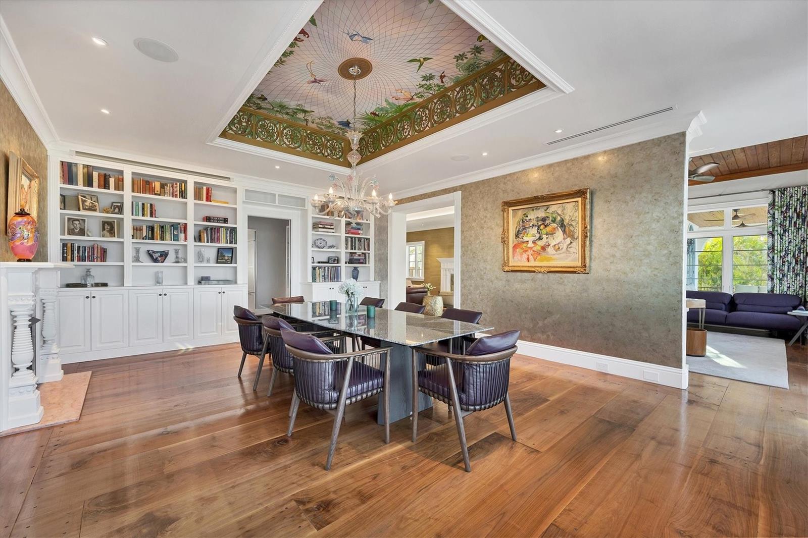 Nestled on nearly three-quarters of an acre, this meticulously updated 1925 Mediterranean Revival residence offers breathtaking, panoramic views of Sarasota Bay, encompassing the downtown skyline, Ringling Bridge and the northern tip of Longboat Key. While preserving its historic charm and original elegance, the home seamlessly integrates modern upgrades designed for both gracious living and entertaining. Upon entering through the gated entry, visitors are greeted by a serene garden with a koi pond and a spacious circular driveway featuring a central fountain, providing ample parking. The gated courtyard leads to a welcoming foyer, which serves as a gateway to the home’s expansive living spaces. To one side lies the formal living room, adorned with a coffered ceiling and an ornate fireplace, while the opposite side reveals a newly renovated kitchen, thoughtfully designed with a Sub-Zero refrigerator, AGA induction range, dolomite countertops, galley sinks and a cozy breakfast area. The formal dining room is perfect for hosting friends and family, offering bay views, a hand-painted recessed ceiling, a marble fireplace and custom built-ins for storage, display and serving. Adjacent to the dining room, the office/den provides tranquil spaces with views of the pool and bay. The great room, with its soaring ceilings, stately fireplace and 10-foot arched doors creates a stunning venue for entertaining, flowing effortlessly onto a spacious covered terrace perfect for sunset views. The second floor boasts three generously sized en-suite bedrooms, each with access to private terraces that showcase captivating vistas. The primary suite, completely reimagined in 2021, epitomizes luxury and relaxation with a custom-trimmed ceiling, a large window for endless Gulf of Mexico views, two French doors leading to an expansive terrace and a custom-organized walk-in closet. The primary bathroom is a retreat with an oversized walk-in shower, floating vanity, a free-standing soaking tub and stunning details and finishes throughout. Designed by renowned landscape architect Michael Gilkey, the grounds have been transformed into distinct outdoor "rooms," featuring a bocce court, expansive patios and a beautifully tiled, heated pool. A charming guesthouse, located adjacent to one of the two two-car garages, includes two rooms, two bathrooms and a kitchenette. With a pocket door, the space can be configured as two separate en-suite bedrooms for ultimate flexibility. Additional enhancements include updated HVAC systems, air conditioning for the garages, upgraded electrical systems, LED and Lutron lighting and hurricane-impact windows and doors. Conveniently located in Indian Beach and Sapphire Shores, this residence is close to downtown Sarasota, SRQ Airport and numerous dining and shopping options. Known as Casa Arula, this remarkable property harmoniously blends historical significance with modern sophistication, creating a truly exceptional place to call home.