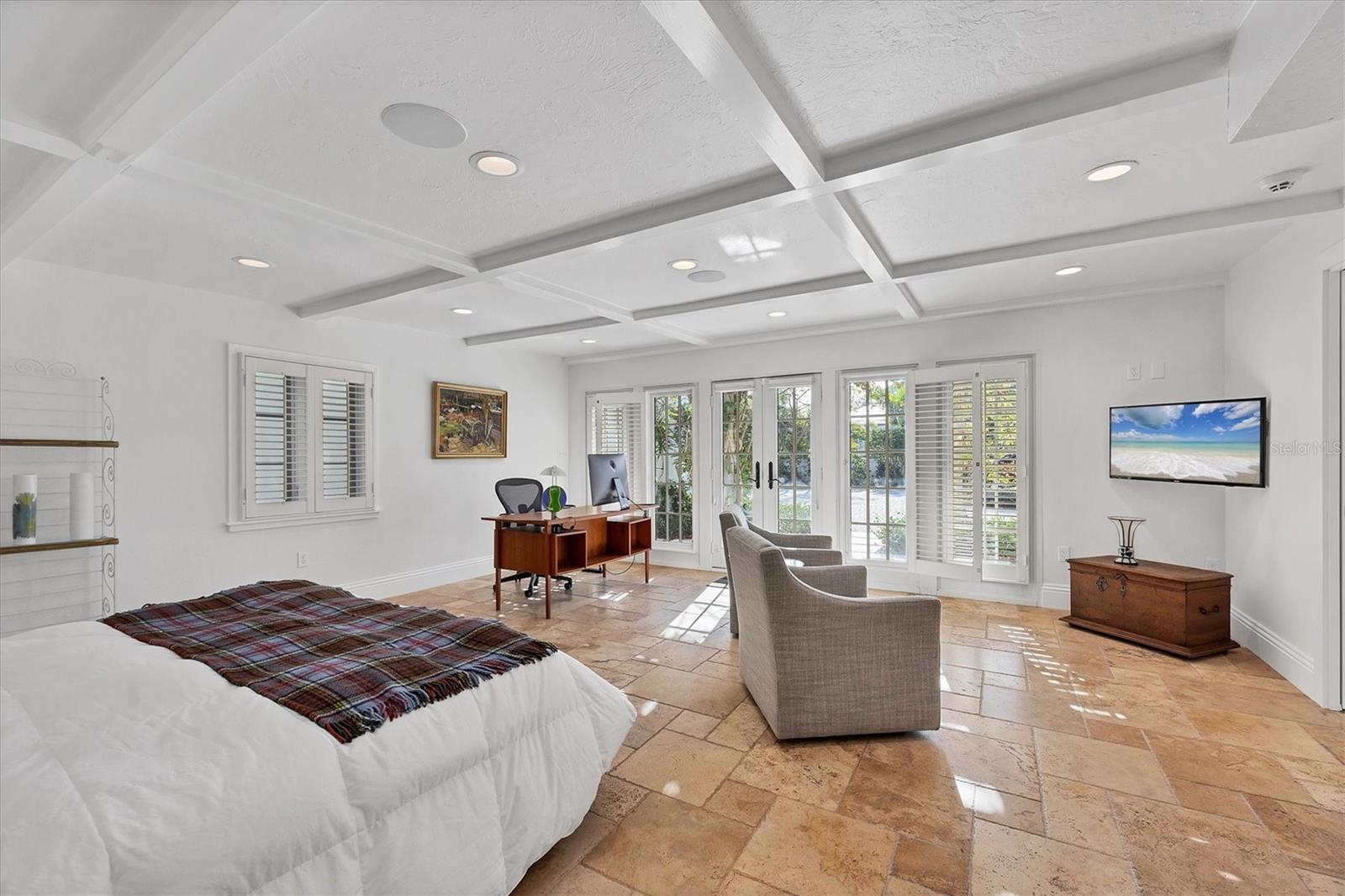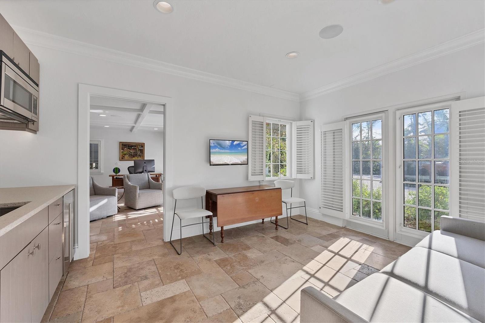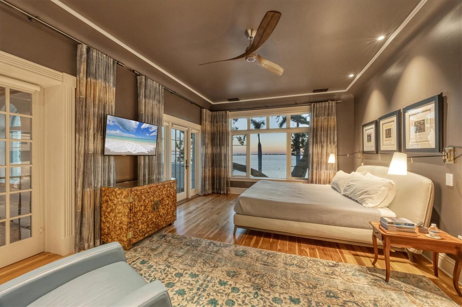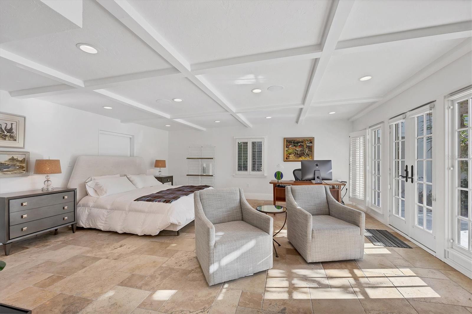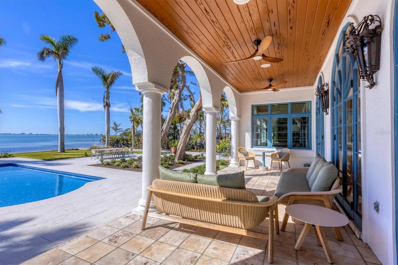 Nestled on nearly three-quarters of an acre, this meticulously updated 1925 Mediterranean Revival residence offers breathtaking, panoramic views of Sarasota Bay, encompassing the downtown skyline, Ringling Bridge and the northern tip of Longboat Key. While preserving its historic charm and original elegance, the home seamlessly integrates modern upgrades designed for both gracious living and entertaining. Upon entering through the gated entry, visitors are greeted by a serene garden with a koi pond and a spacious circular driveway featuring a central fountain, providing ample parking. The gated courtyard leads to a welcoming foyer, which serves as a gateway to the home’s expansive living spaces. To one side lies the formal living room, adorned with a coffered ceiling and an ornate fireplace, while the opposite side reveals a newly renovated kitchen, thoughtfully designed with a Sub-Zero refrigerator, AGA induction range, dolomite countertops, galley sinks and a cozy breakfast area. The formal dining room is perfect for hosting friends and family, offering bay views, a hand-painted recessed ceiling, a marble fireplace and custom built-ins for storage, display and serving. Adjacent to the dining room, the office/den provides tranquil spaces with views of the pool and bay. The great room, with its soaring ceilings, stately fireplace and 10-foot arched doors creates a stunning venue for entertaining, flowing effortlessly onto a spacious covered terrace perfect for sunset views. The second floor boasts three generously sized en-suite bedrooms, each with access to private terraces that showcase captivating vistas. The primary suite, completely reimagined in 2021, epitomizes luxury and relaxation with a custom-trimmed ceiling, a large window for endless Gulf of Mexico views, two French doors leading to an expansive terrace and a custom-organized walk-in closet. The primary bathroom is a retreat with an oversized walk-in shower, floating vanity, a free-standing soaking tub and stunning details and finishes throughout. Designed by renowned landscape architect Michael Gilkey, the grounds have been transformed into distinct outdoor "rooms," featuring a bocce court, expansive patios and a beautifully tiled, heated pool. A charming guesthouse, located adjacent to one of the two two-car garages, includes two rooms, two bathrooms and a kitchenette. With a pocket door, the space can be configured as two separate en-suite bedrooms for ultimate flexibility. Additional enhancements include updated HVAC systems, air conditioning for the garages, upgraded electrical systems, LED and Lutron lighting and hurricane-impact windows and doors. Conveniently located in Indian Beach and Sapphire Shores, this residence is close to downtown Sarasota, SRQ Airport and numerous dining and shopping options. Known as Casa Arula, this remarkable property harmoniously blends historical significance with modern sophistication, creating a truly exceptional place to call home.