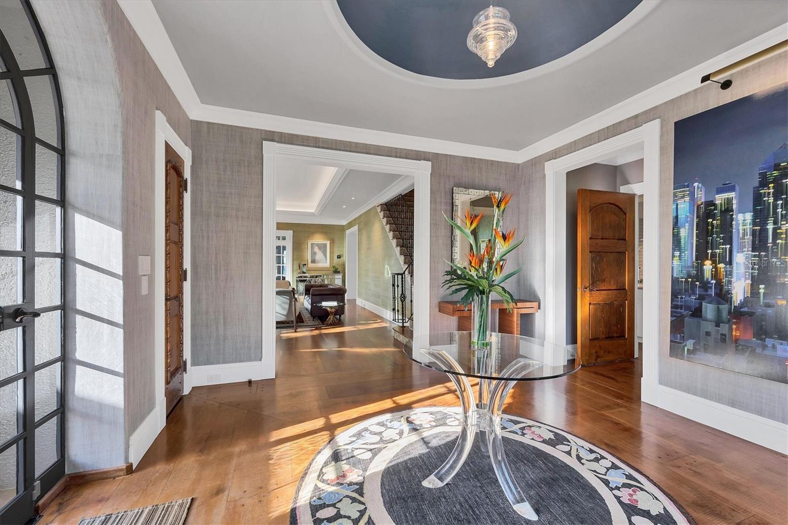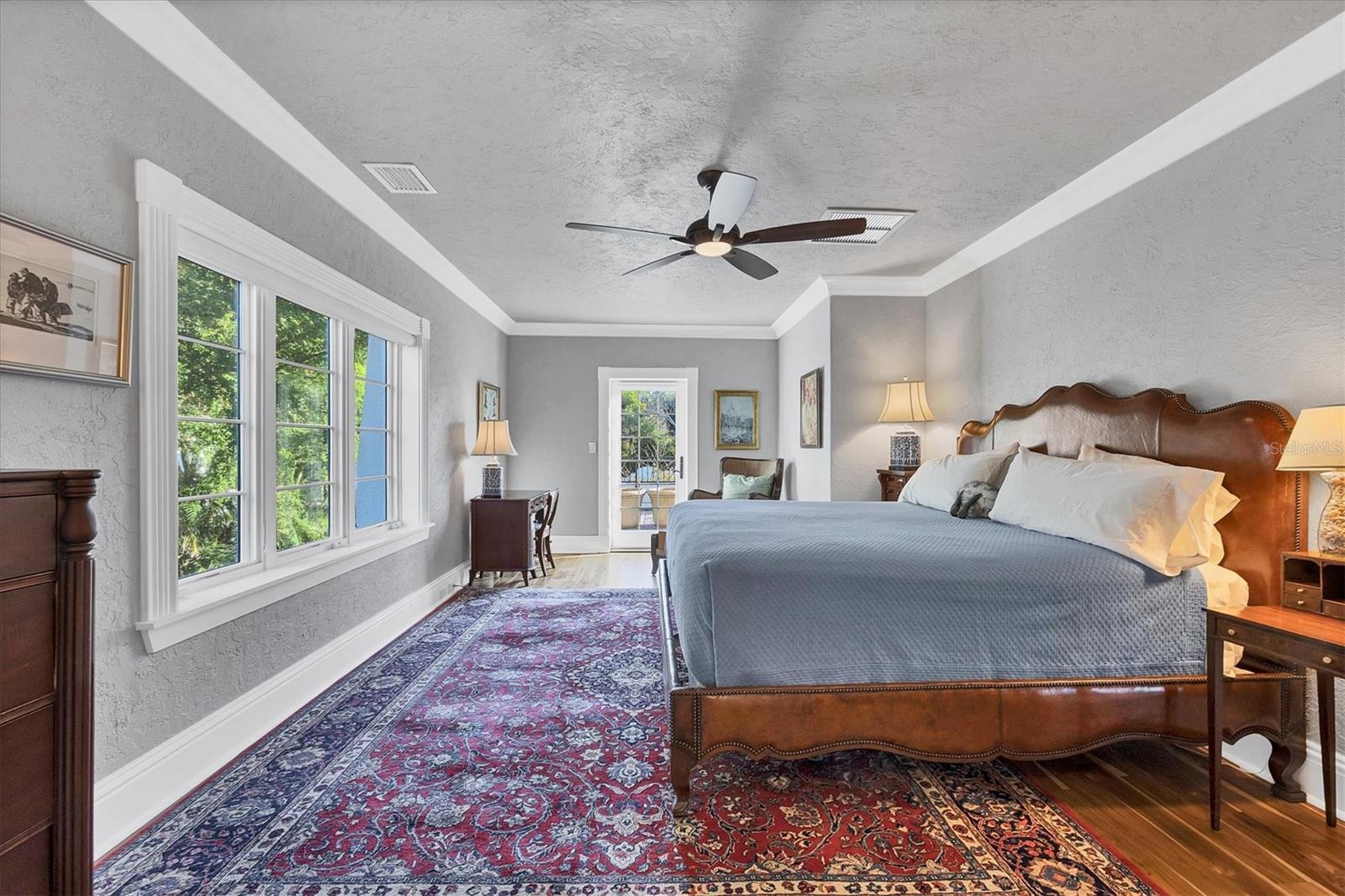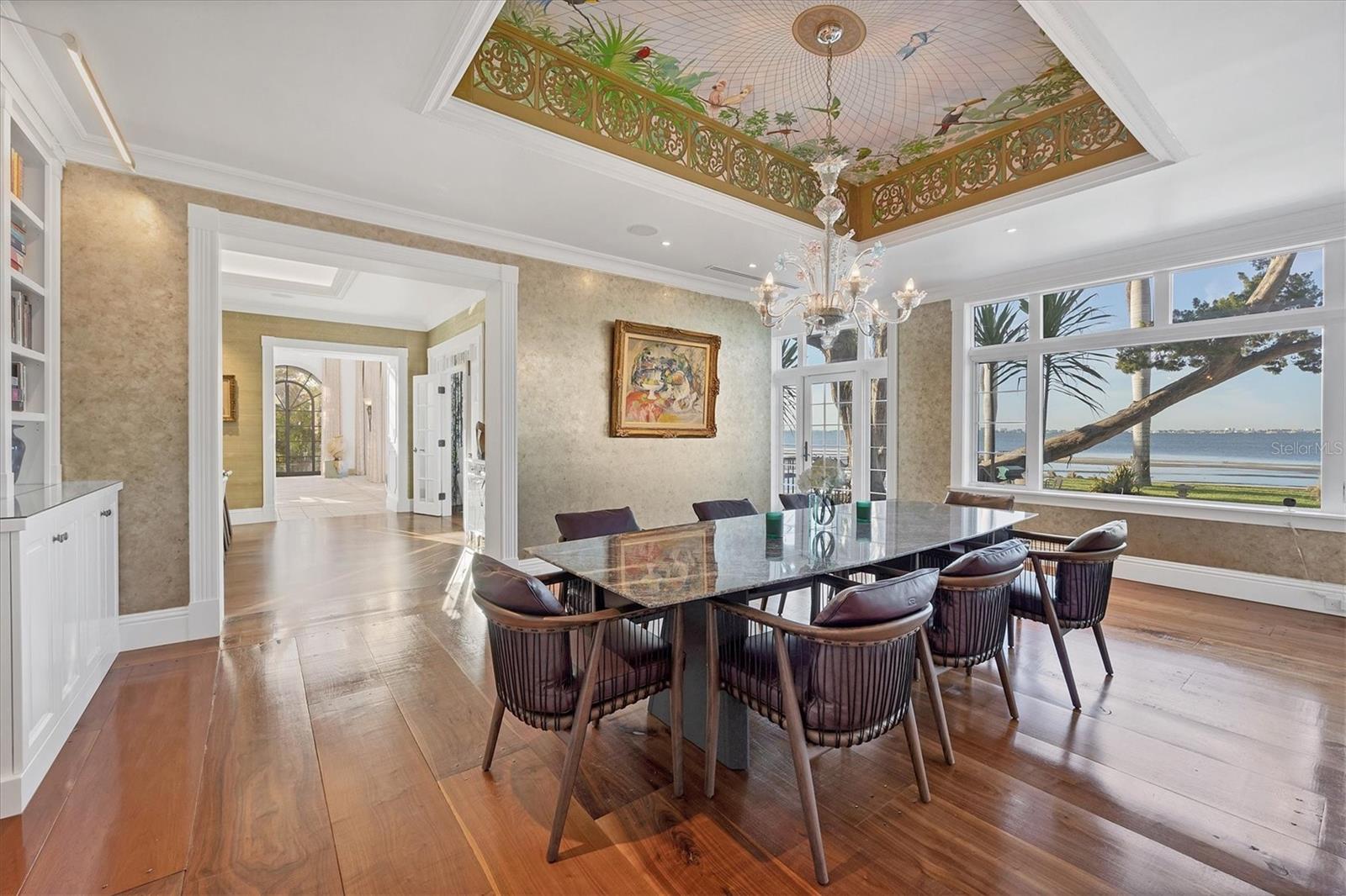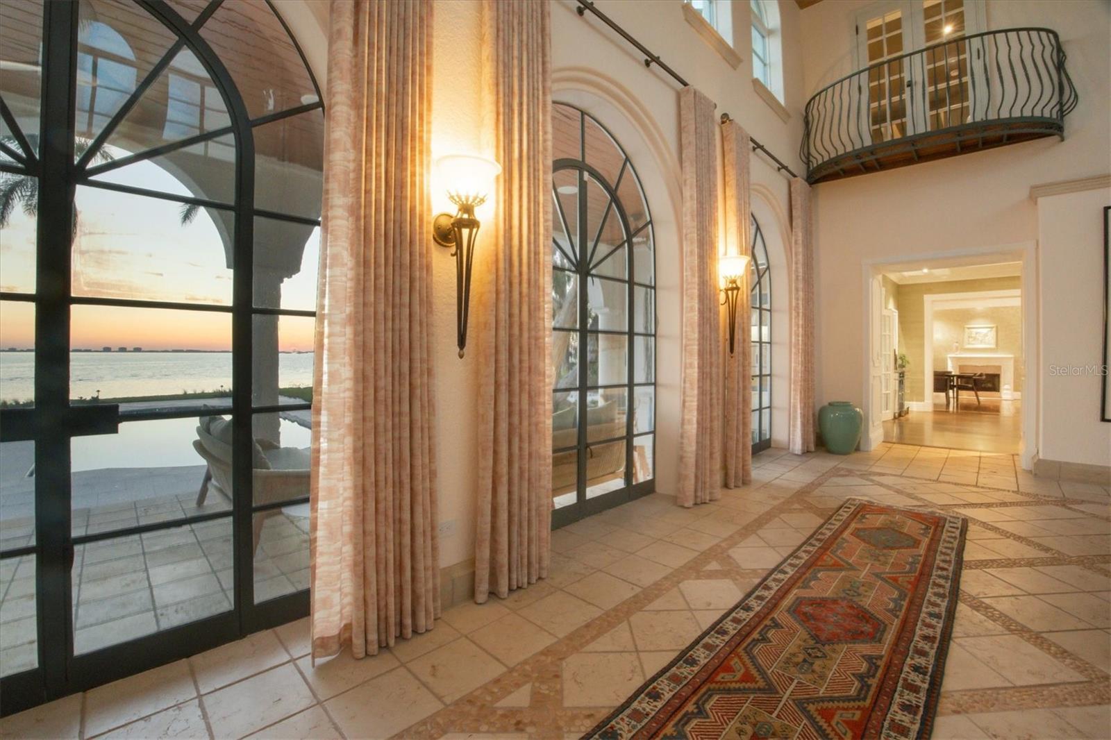 Nestled on nearly three-quarters of an acre, this meticulously updated 1925 Mediterranean Revival residence offers breathtaking, panoramic views of Sarasota Bay, encompassing the downtown skyline, Ringling Bridge and the northern tip of Longboat Key. While preserving its historic charm and original elegance, the home seamlessly integrates modern upgrades designed for both gracious living and entertaining. Upon entering through the gated entry, visitors are greeted by a serene garden with a koi pond and a spacious circular driveway featuring a central fountain, providing ample parking. The gated courtyard leads to a welcoming foyer, which serves as a gateway to the home’s expansive living spaces. To one side lies the formal living room, adorned with a coffered ceiling and an ornate fireplace, while the opposite side reveals a newly renovated kitchen, thoughtfully designed with a Sub-Zero refrigerator, AGA induction range, dolomite countertops, galley sinks and a cozy breakfast area. The formal dining room is perfect for hosting friends and family, offering bay views, a hand-painted recessed ceiling, a marble fireplace and custom built-ins for storage, display and serving. Adjacent to the dining room, the office/den provides tranquil spaces with views of the pool and bay. The great room, with its soaring ceilings, stately fireplace and 10-foot arched doors creates a stunning venue for entertaining, flowing effortlessly onto a spacious covered terrace perfect for sunset views. The second floor boasts three generously sized en-suite bedrooms, each with access to private terraces that showcase captivating vistas. The primary suite, completely reimagined in 2021, epitomizes luxury and relaxation with a custom-trimmed ceiling, a large window for endless Gulf of Mexico views, two French doors leading to an expansive terrace and a custom-organized walk-in closet. The primary bathroom is a retreat with an oversized walk-in shower, floating vanity, a free-standing soaking tub and stunning details and finishes throughout. Designed by renowned landscape architect Michael Gilkey, the grounds have been transformed into distinct outdoor "rooms," featuring a bocce court, expansive patios and a beautifully tiled, heated pool. A charming guesthouse, located adjacent to one of the two two-car garages, includes two rooms, two bathrooms and a kitchenette. With a pocket door, the space can be configured as two separate en-suite bedrooms for ultimate flexibility. Additional enhancements include updated HVAC systems, air conditioning for the garages, upgraded electrical systems, LED and Lutron lighting and hurricane-impact windows and doors. Conveniently located in Indian Beach and Sapphire Shores, this residence is close to downtown Sarasota, SRQ Airport and numerous dining and shopping options. Known as Casa Arula, this remarkable property harmoniously blends historical significance with modern sophistication, creating a truly exceptional place to call home.