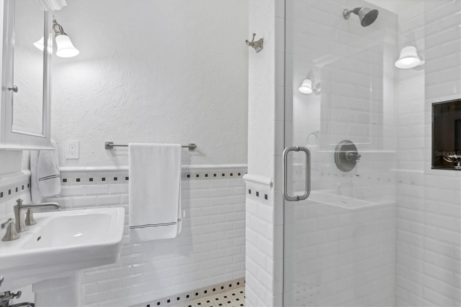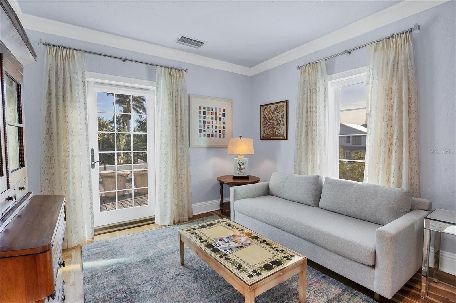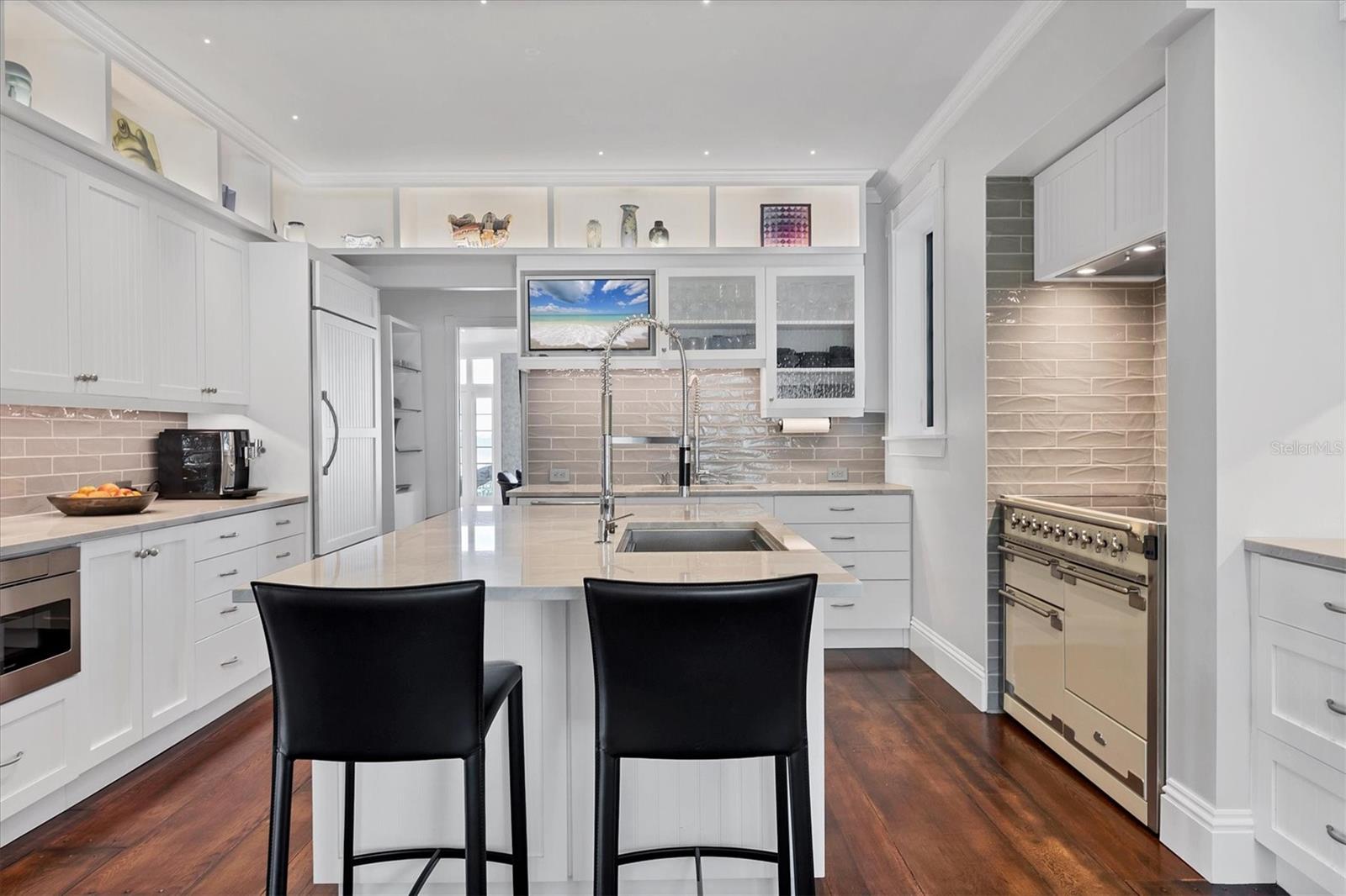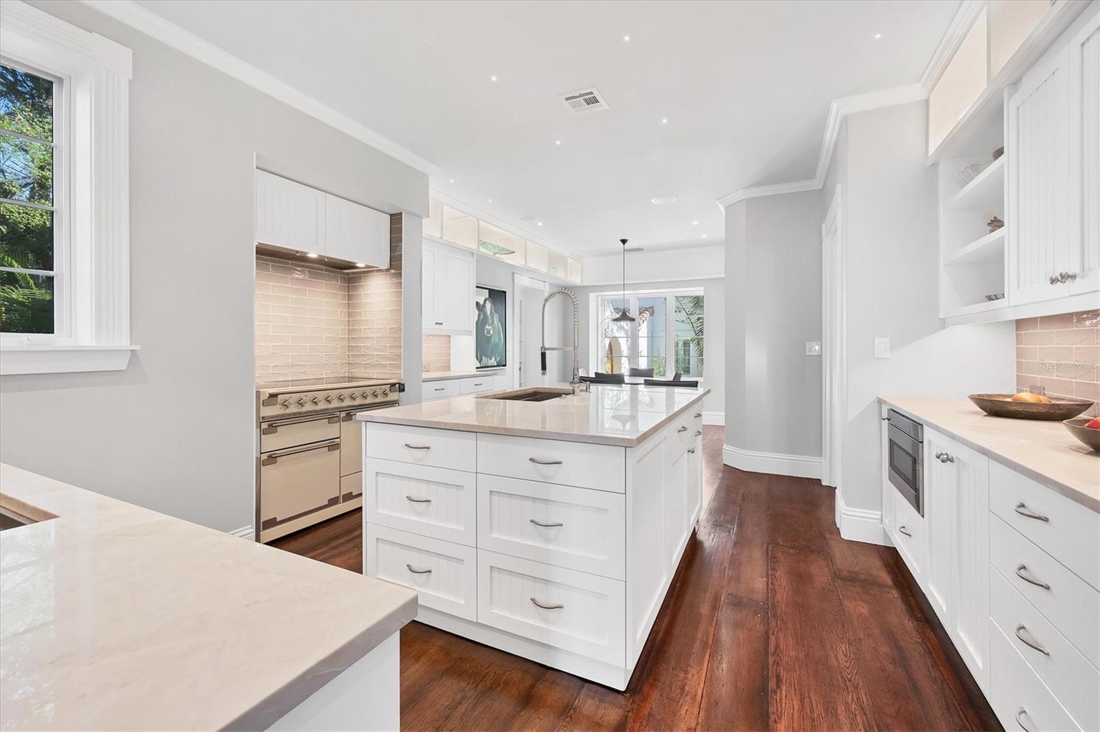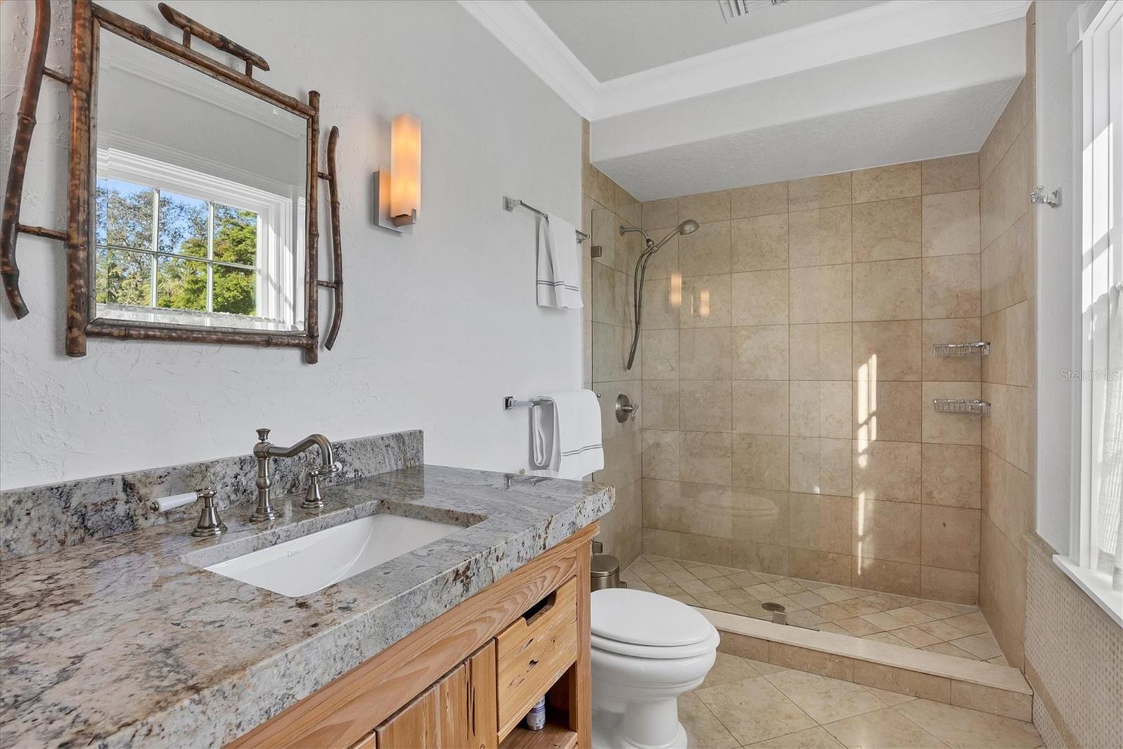 Nestled on nearly three-quarters of an acre, this meticulously updated 1925 Mediterranean Revival residence offers breathtaking, panoramic views of Sarasota Bay, encompassing the downtown skyline, Ringling Bridge and the northern tip of Longboat Key. While preserving its historic charm and original elegance, the home seamlessly integrates modern upgrades designed for both gracious living and entertaining. Upon entering through the gated entry, visitors are greeted by a serene garden with a koi pond and a spacious circular driveway featuring a central fountain, providing ample parking. The gated courtyard leads to a welcoming foyer, which serves as a gateway to the home’s expansive living spaces. To one side lies the formal living room, adorned with a coffered ceiling and an ornate fireplace, while the opposite side reveals a newly renovated kitchen, thoughtfully designed with a Sub-Zero refrigerator, AGA induction range, dolomite countertops, galley sinks and a cozy breakfast area. The formal dining room is perfect for hosting friends and family, offering bay views, a hand-painted recessed ceiling, a marble fireplace and custom built-ins for storage, display and serving. Adjacent to the dining room, the office/den provides tranquil spaces with views of the pool and bay. The great room, with its soaring ceilings, stately fireplace and 10-foot arched doors creates a stunning venue for entertaining, flowing effortlessly onto a spacious covered terrace perfect for sunset views. The second floor boasts three generously sized en-suite bedrooms, each with access to private terraces that showcase captivating vistas. The primary suite, completely reimagined in 2021, epitomizes luxury and relaxation with a custom-trimmed ceiling, a large window for endless Gulf of Mexico views, two French doors leading to an expansive terrace and a custom-organized walk-in closet. The primary bathroom is a retreat with an oversized walk-in shower, floating vanity, a free-standing soaking tub and stunning details and finishes throughout. Designed by renowned landscape architect Michael Gilkey, the grounds have been transformed into distinct outdoor "rooms," featuring a bocce court, expansive patios and a beautifully tiled, heated pool. A charming guesthouse, located adjacent to one of the two two-car garages, includes two rooms, two bathrooms and a kitchenette. With a pocket door, the space can be configured as two separate en-suite bedrooms for ultimate flexibility. Additional enhancements include updated HVAC systems, air conditioning for the garages, upgraded electrical systems, LED and Lutron lighting and hurricane-impact windows and doors. Conveniently located in Indian Beach and Sapphire Shores, this residence is close to downtown Sarasota, SRQ Airport and numerous dining and shopping options. Known as Casa Arula, this remarkable property harmoniously blends historical significance with modern sophistication, creating a truly exceptional place to call home.