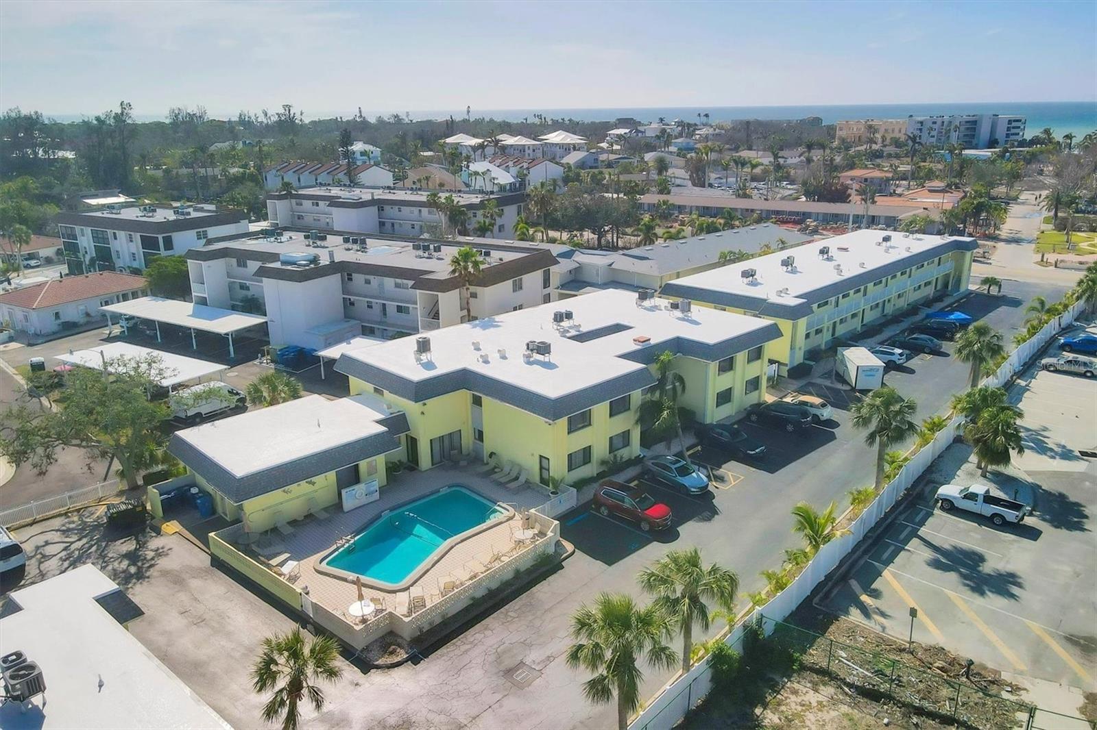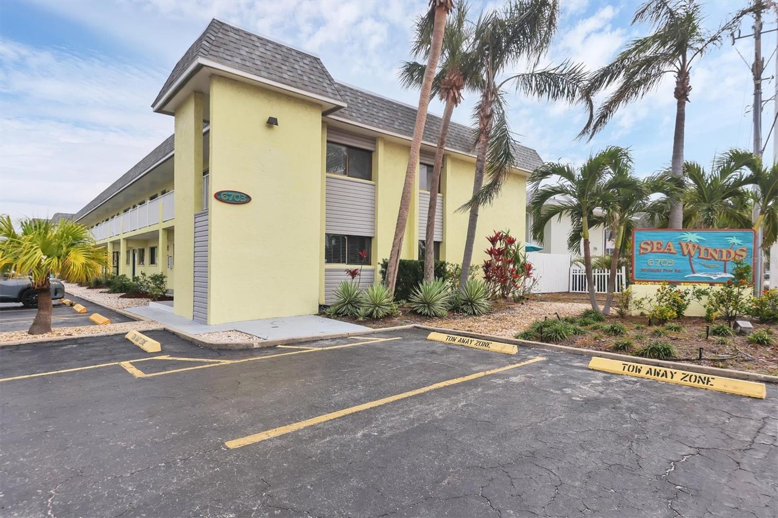 Lowest price on the Key for a one BR condo allowing short term rentals! Motivated seller! Siesta Key Beach is calling you…experience the allure of coastal living at the quaint Sea Winds complex, conveniently located along Midnight Pass Rd., just a short walk to the world-renowned Siesta Key beach! This prime beach investment offering the opportunity to rent with a 2-week minimum and also use for yourself. This condo has an excellent rental history with bookings in place currently and into high season 2026. Average gross rental income is $20K/year with more upside potential. This delightful 2nd floor, generously sized 1 bedroom condo sustained NO damage from storms and comes fully furnished turn key offering desirable features such as a fully updated & equipped kitchen in on trend design, updated bathroom with new granite top vanity, tub/shower with new high end glass door, tile flooring, fresh bright paint colors, room for guests with convertible sofa, inviting dining space, open floor plan, AC 5 years new, H2O heater 2 years new, well maintained and move in ready! Easy parking with your own assigned space in front of your condo, plus guest parking. The Sea Winds is a small community of 35 units with amenities designed for year-round enjoyment, including bicycle rooms, a social room, shared laundry, pet friendly, and a heated pool complete with lounge chairs, umbrellas, and convenient bathroom facilities. The buildings had a new roof in 2024 and experienced no major storm damage. The vibrant South Village is nearby, offering a variety of restaurants, boutiques, lively beach bars, ice cream shops, groceries, pharmacies and rental options for everything from fishing and boating to biking and kayaking. Plus, a daily trolley service stops right in front of the Sea Winds Condominium complex, providing easy access to all of Siesta Key's attractions. See this well priced condo today that is ready to go and a great investment on the Key!