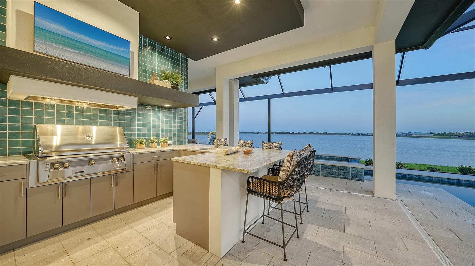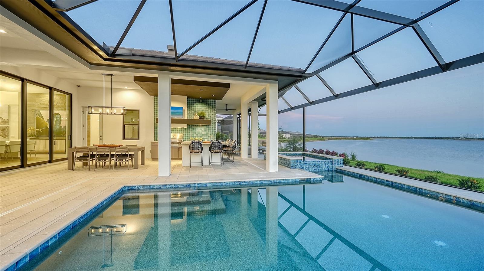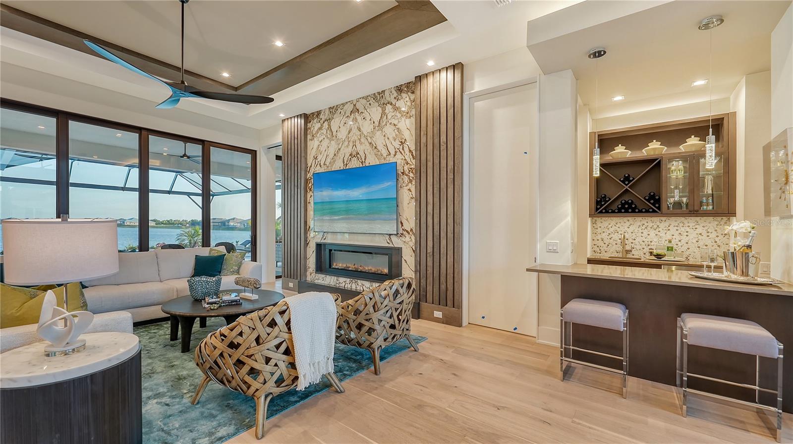 Experience an elevated lifestyle in this professionally designed fully-furnished model home by Arthur Rutenberg Homes situated on a premium south-facing homesite, offering breathtaking long lake views in Lakewood Ranch’s newest luxury community, Wild Blue. Constructed with uncompromising quality and featuring hurricane-impact windows and doors, this home showcases expert craftsmanship and is designed with impeccable attention to detail, featuring high-end wood flooring throughout, intricate ceiling and wall accents, a professional kitchen, and a prep pantry with a full refrigerator, sink, and ample storage. Beyond the luxurious primary and guest suites, a spacious VIP suite with a kitchenette and private entrance provides the perfect in-law suite or a private retreat for adult children or special guests. The outdoor space is equally impressive, with a saltwater pool and spa, an expansive lanai, a custom-designed outdoor kitchen, and built-in gas fire pit. Wild Blue, Lakewood Ranch’s newest luxury community, offers scenic walking trails throughout the community, as well as an unmatched lifestyle with an expansive clubhouse, restaurant, fitness center, golf simulator, sports complex, and a vibrant array of social opportunities. Currently serving as a builder model, home available for occupancy March 3, 2026. List price includes furniture, decor, artwork, rugs, window treatments, TV's, electronics which total $313,100.