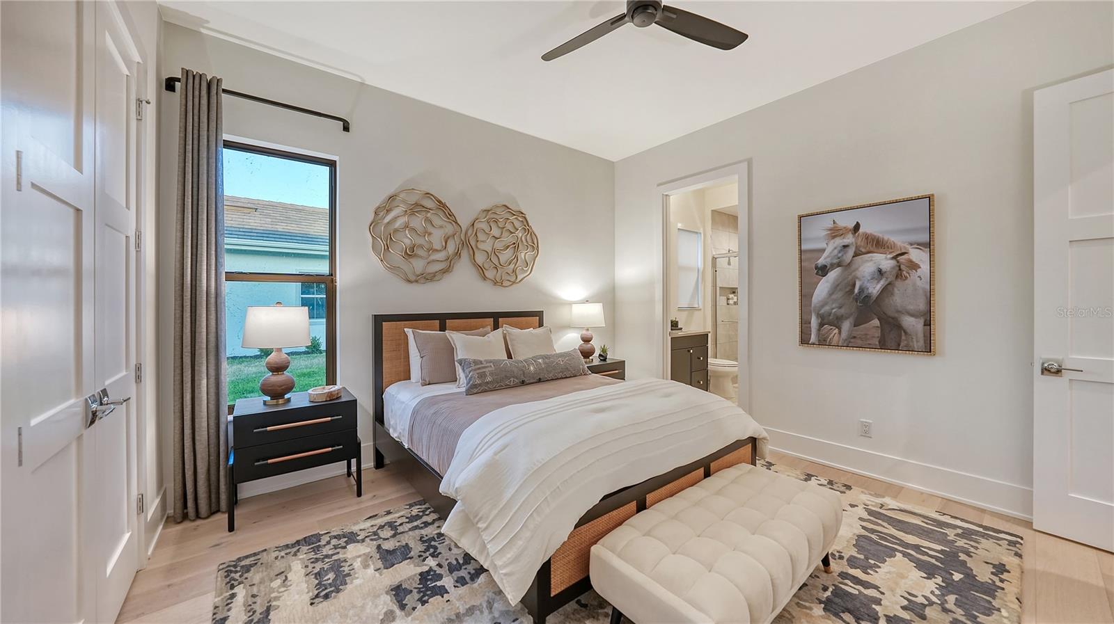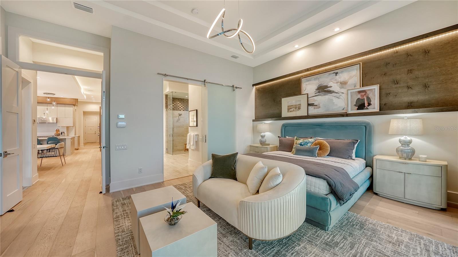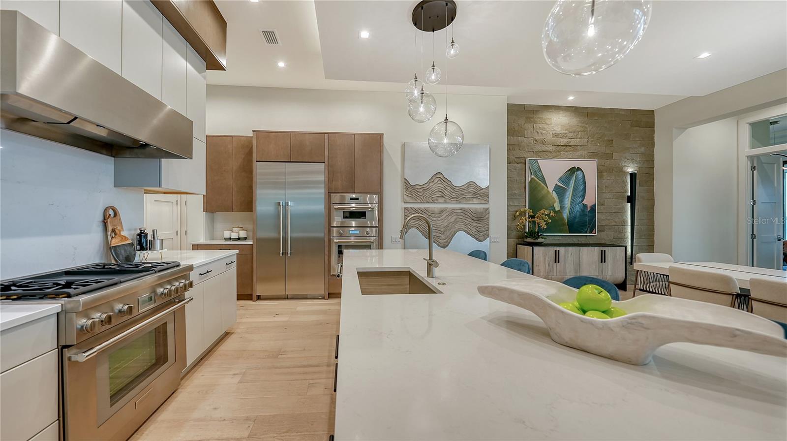 Experience an elevated lifestyle in this professionally designed fully-furnished model home by Arthur Rutenberg Homes situated on a premium south-facing homesite, offering breathtaking long lake views in Lakewood Ranch’s newest luxury community, Wild Blue. Constructed with uncompromising quality and featuring hurricane-impact windows and doors, this home showcases expert craftsmanship and is designed with impeccable attention to detail, featuring high-end wood flooring throughout, intricate ceiling and wall accents, a professional kitchen, and a prep pantry with a full refrigerator, sink, and ample storage. Beyond the luxurious primary and guest suites, a spacious VIP suite with a kitchenette and private entrance provides the perfect in-law suite or a private retreat for adult children or special guests. The outdoor space is equally impressive, with a saltwater pool and spa, an expansive lanai, a custom-designed outdoor kitchen, and built-in gas fire pit. Wild Blue, Lakewood Ranch’s newest luxury community, offers scenic walking trails throughout the community, as well as an unmatched lifestyle with an expansive clubhouse, restaurant, fitness center, golf simulator, sports complex, and a vibrant array of social opportunities. Currently serving as a builder model, home available for occupancy March 3, 2026. List price includes furniture, decor, artwork, rugs, window treatments, TV's, electronics which total $313,100.