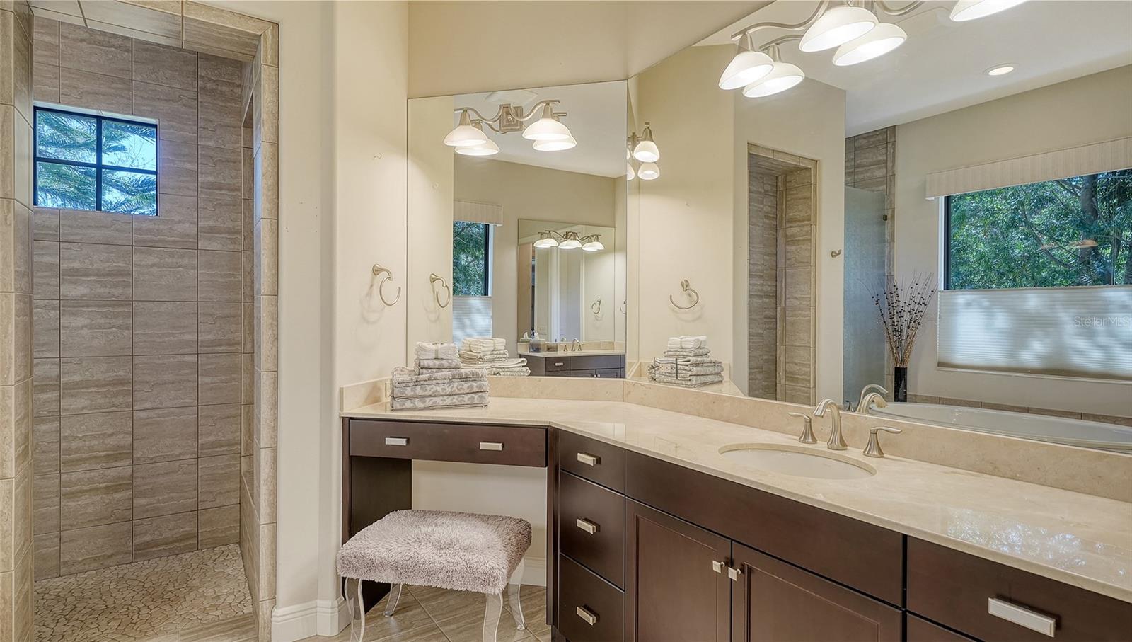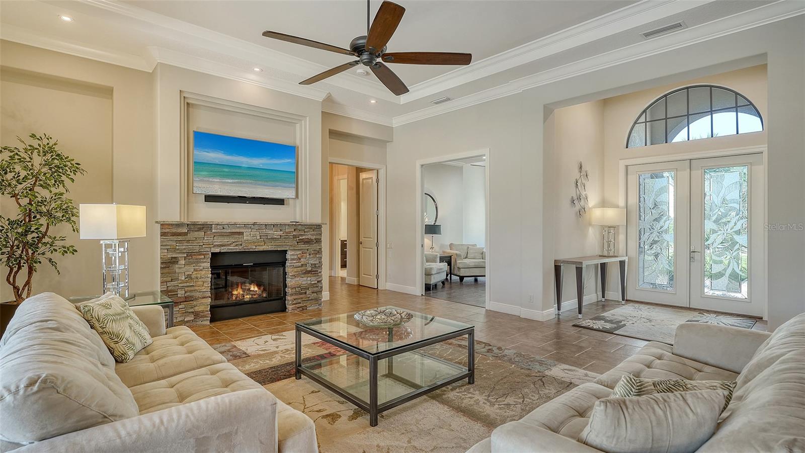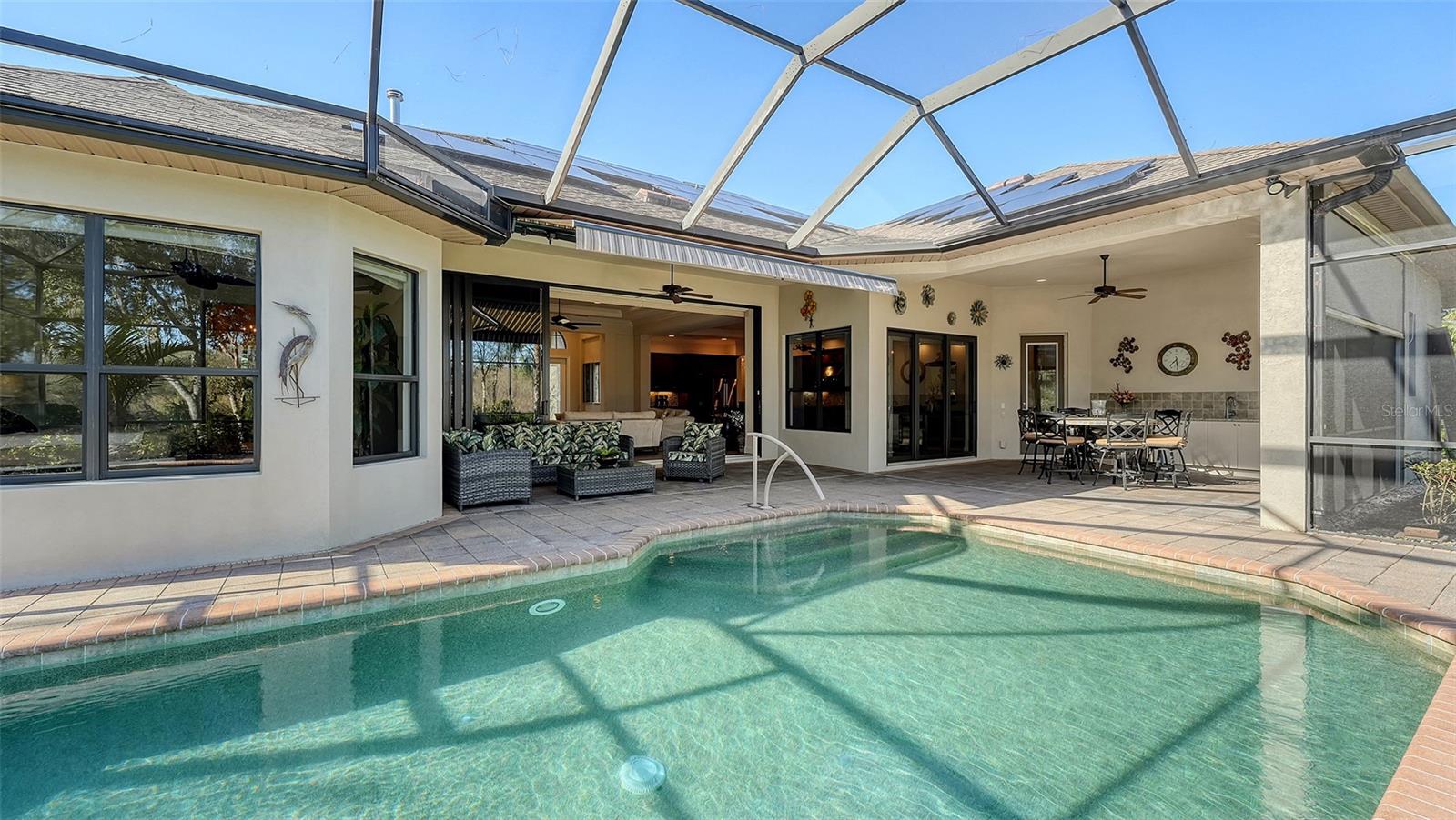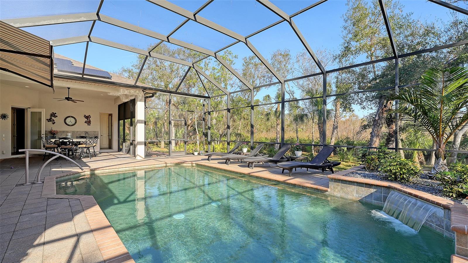 Third Price Reduction!! SERENITY!!! This is what you will experience at this beautiful home on 1609 Palm View in Oak Ford. Just 15 minutes from Terra Nova Equestrian Center and 15 minutes East from the UTC Mall congestion and traffic surrounding that area. You will feel a world apart and experience the beauty, serenity, peace and natural beauty of this gorgeous area and exquisite turn-key furnished home. This Beautiful Arthur Rutenberg pool home is located in The Oak Ford community off Fruitville Rd east of I-75. Solar panels provide electricity for the entire home and heated pool which has an automatic self-cleaning system. This stunning all on one floor home has a very private large lot surrounded by lush natural beauty with expansive views. As you enter through the beautiful double beveled glass front doors into the tiled foyer you will be immersed into exquisite quality of design with high ceilings and crown molding throughout the entire home. Hurricane rated sliding glass doors and windows throughout. The Great Room features beautiful tiled floor and lovely furniture and a stacked stone gas fireplace with granite mantle, flat screen TV & sound bar. The Great room looks out to the screened lanai and heated pool with newer heat pump and tranquil water feature. The lanai also features a granite wet bar area, GE Monogram beverage refrigerator. The lanai features pavers which are also on the driveway and walkway leading up to the front door. Custom blinds throughout. Whole house saltwater system for all of the water in the house. And an Osmosis system in the kitchen for clean drinking water. The lanai has an automatic remote control awning for shade as you lounge on the couches and enjoy the serenity and tranquility of the backyard. The Den/Flex room in the house has hardwood floors and is off the Great room and features recessed lighting with furniture to relax on. The primary bedroom has its own entry way with privacy doors as well as a Trey Ceiling. Two large walk-in closet provide lots of room for clothes and accessories. Hunter Douglas remote controlled shades are on the windows and the primary bedroom is totally furnished along with having a separate HVAC. The primary bathroom features a large soaking tub and a walk-in shower with two shower heads and tiled surroundings. Separate granite double vanities offered in this spacious bathroom. Absolutely gorgeous kitchen has a large hidden walk-in pantry behind cabinet doors and additional pantry gives you plenty of storage. Mahogany cabinets throughout the kitchen with dark granite countertops. Stainless Steel new GE Monogram oven, microwave and dishwasher, Bosch SS Refrigerator and wine refrigerator in kitchen under the coffee/beverage bar. The laundry room features Maytag washer and dryer and cabinetry and counter space with a second refrigerator in this area. Extra storage closet just off the laundry room for cleaning supplies/storage. The home office has hardwood floors and the house features a whole house alarm system and lots of outdoor lighting. There is a pool bath on the lanai and a full bath between 3rd bedroom and the office. This house utilizes a well so there is no water bill and has an automatic water sprinkler system and outside lighting system. Sarasota county has A rated schools, world renowned beaches and lots of excellent restaurants. New Publix, Aldi, CVS and more only minutes away. Enjoy it all and beautiful country living that affords you peace and quiet.