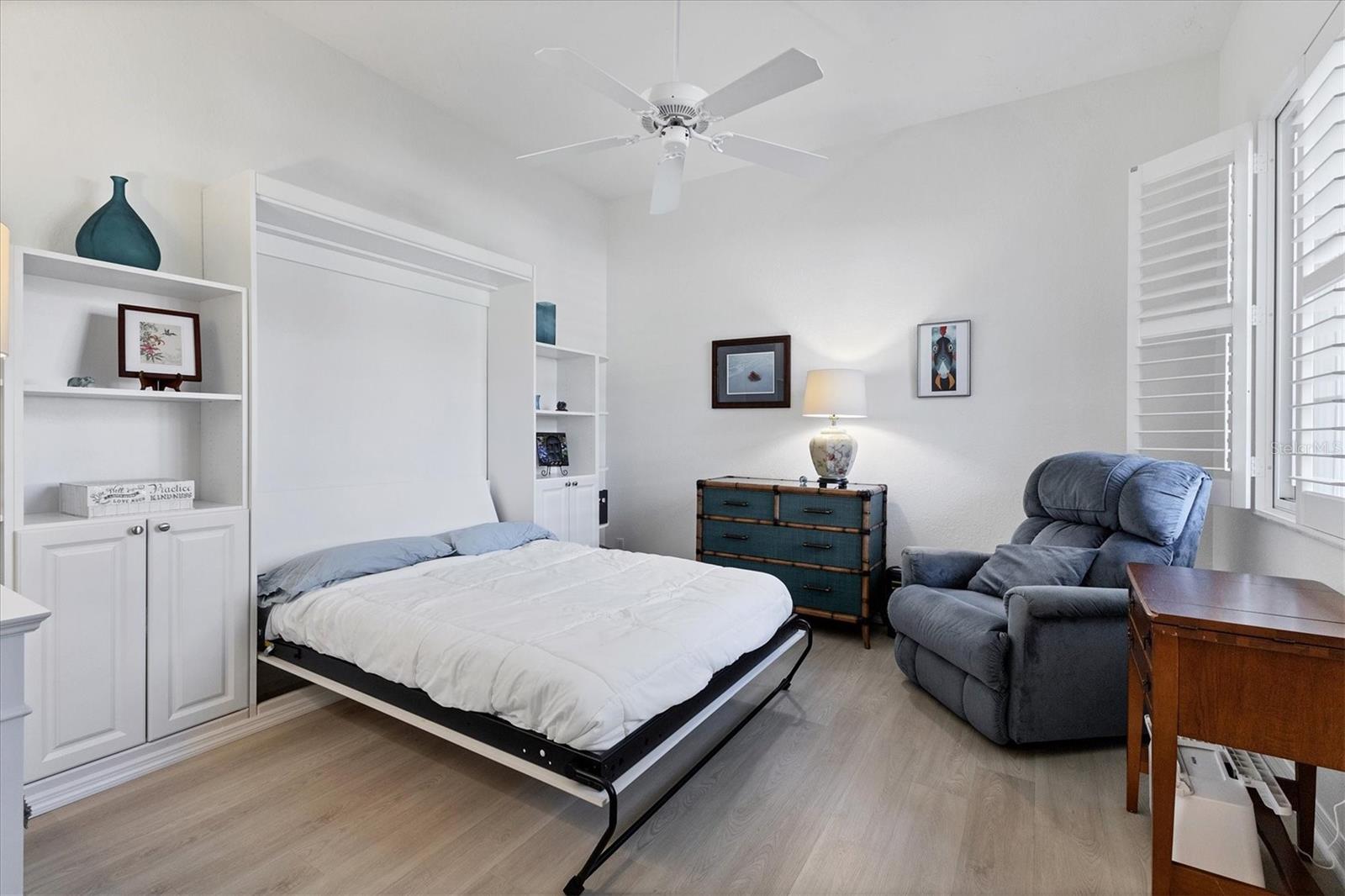 Palm-Aire is a master planned community near the border of Sarasota and Manatee counties. It is well situated to downtown Sarasota, the Sarasota Airport, the UTC Mall and I-75. THE PRESERVES AT PALM-AIRE is a neighborhood within the greater Palm-Aire community and has it's own Homeowners Association....This Villa is a Two Wood distance from the Palm-Aire Country Club and Golf Course. Membership in the club is not required for owners in THE PRESERVES. However, several levels of Social Membership are available for those who do not play golf but who want to participate in the social activities.....the attached garage has a terrazzo floor that can easily hold a car/suv, a golf cart, boxes of Christmas decorations, tools and a snowblower...........This Villa has a master bedroom with an en-suite bathroom, a second bedroom, a second bathroom, a den/office with a murphy bed and a roomy kitchen with a pass through to the living area.....One can enter the home from the brick paved courtyard. Once inside, the open concept floor plan and high ceilings provide an airy experience where one can move from the front door, through the living area to the enclosed lanai and out onto the roomy patio and expansive yard area....Custom window treatments allow for as much light or dark as one wants, and of course the home is gluten free.......Current owner has invested in major upgrades within the last 3 years including new roof, new and expanded lanai & cage, hurricane impact doors & windows, all new kitchen appliances & cabinetry, complete interior paint job and a new HVAC System......The home is completely Move-In Ready.......Please see the attached pictures with descriptions to get a better understanding of the features of this wonderful home.