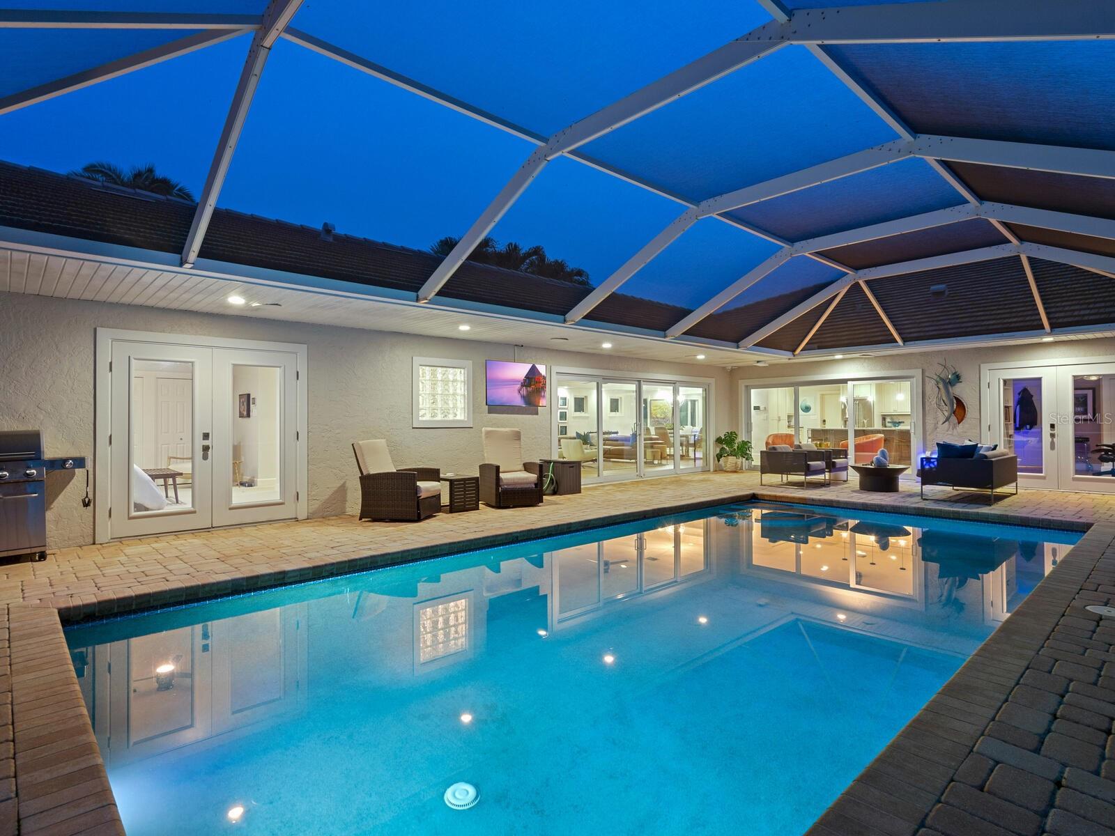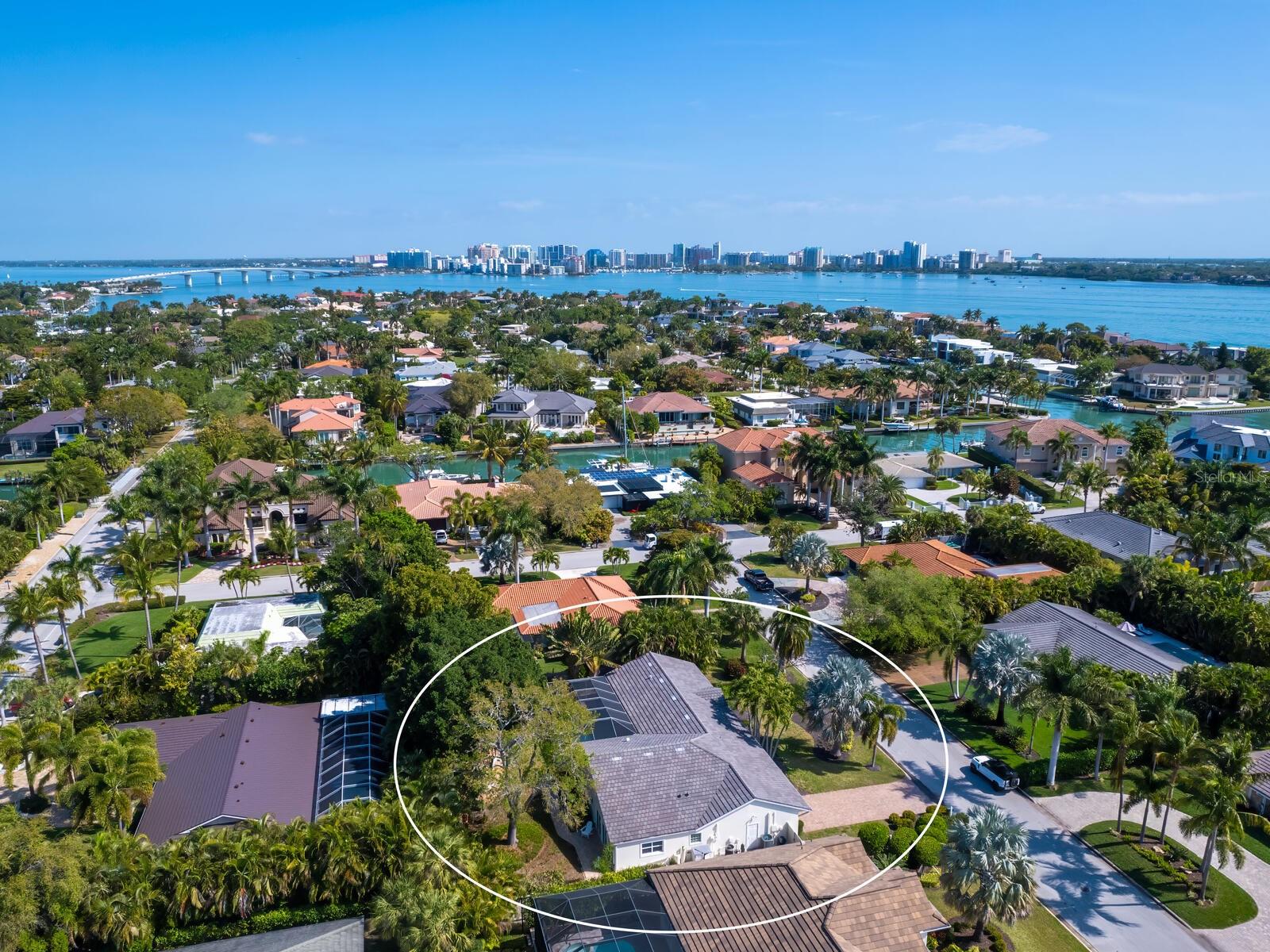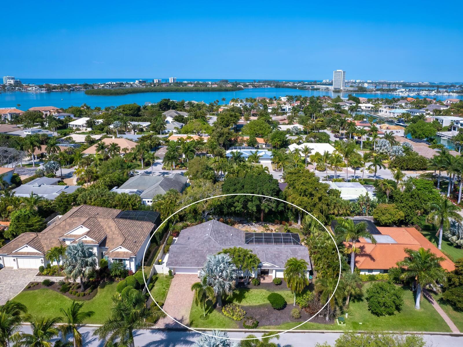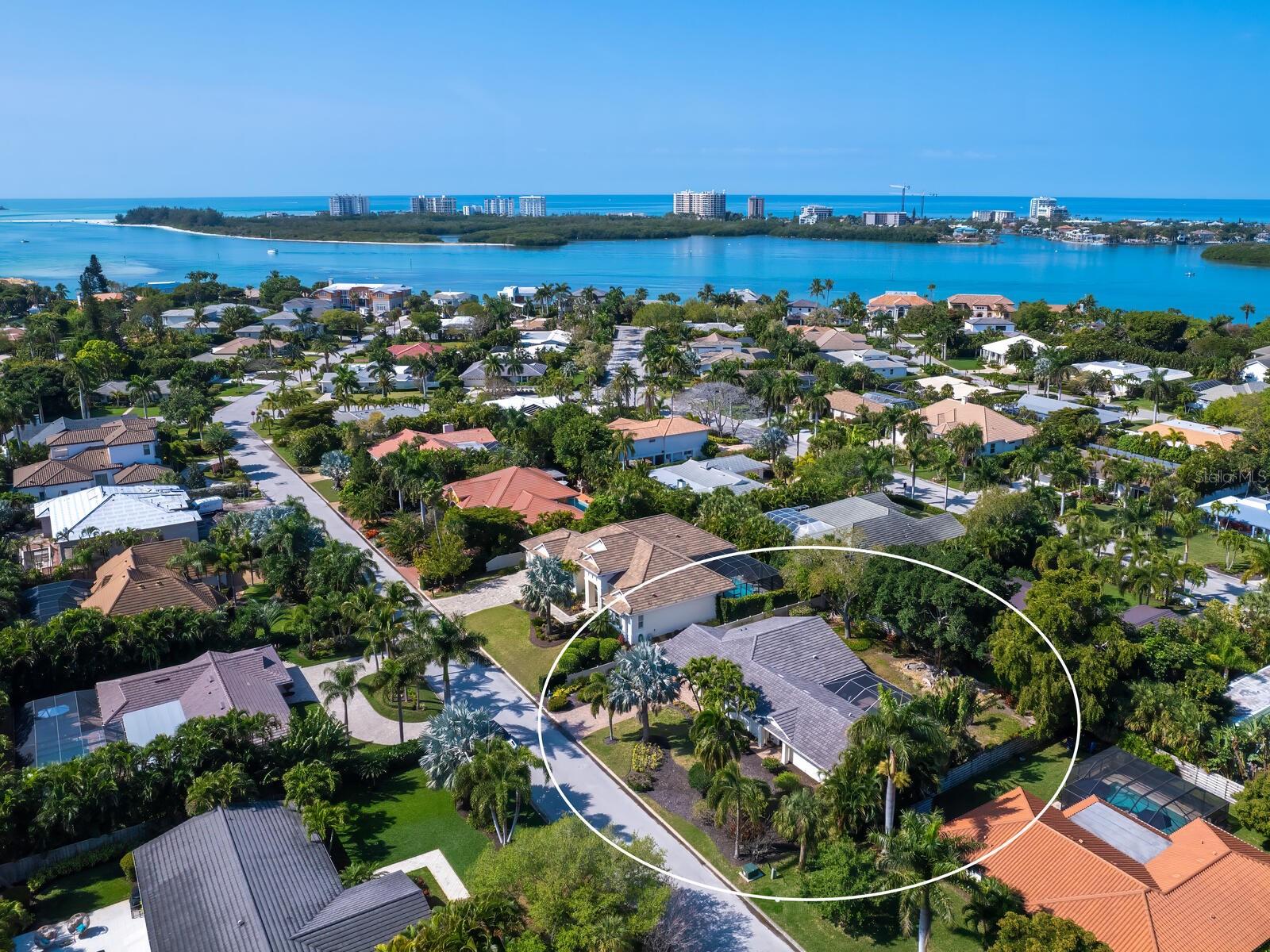 This move-in ready three-bedroom, three-bath home with office rests on almost a third of an acre beyond the gates on Bird Key, Sarasota's pinnacle of luxury living and experienced no damage nor flooding from the recent storms. Home is in X500 and flood insurance is not required. Between the chic St. Armands Circle and vibrant downtown Sarasota, this exquisite home offers unmatched convenience and sophistication. With the pristine Lido Beach, SRQ airport, Sarasota Memorial Hospital and the newly revamped Selby Gardens all within easy reach, you'll wonder how you ever lived anywhere else. Prepare to be captivated by this impeccably maintained residence, where pride of ownership is as evident as the Florida sunshine streaming through every window. The open floor plan is an entertainer's dream, featuring sliders that lead seamlessly from the living room and kitchen to the pool area. Imagine hosting soirées with your gourmet kitchen as a backdrop, boasting an oversized center island, induction cooktop, stainless steel appliances, and custom wood cabinetry with bar and secondary sink. The primary suite is a haven of tranquility, complete with an updated bath featuring a soaking tub and separate shower, a walk-in closet that rivals a boutique, three additional double closets and French doors that open directly to the pool. The second bedroom is generously sized with a built-in Murphy bed disguised as bookshelves with French doors to the pool. The third bedroom, with its cathedral ceiling and private bath, features additional sets of French doors to an outdoor paver patio and is so grand it might just convert your guests into permanent residents. Recent updates include impact windows and sliding doors, tile roof in 2013, crown molding, plantation shutters, fresh interior and exterior paint, a new tightly woven no-see-um pool screen, and cutting-edge smart home features that ensure modern convenience and a dash of futuristic flair. The split floor plan ensures privacy for all, with a positioned office and den featuring stunning pocket doors and built-in shelving ideal for working from home or escaping into a good book. Step outside to your private oasis, where the backyard is framed by a magnificent tree that transforms into a living piece of art when illuminated at night. The fenced yard offers serenity and security, while majestic trees create a peaceful retreat. For those who appreciate the finer things in life, Bird Key Yacht Club offers optional membership with access to tennis courts, a swimming pool, a fitness room, a lively social scene, boat slips, a marina, and indoor and outdoor dining. This Bird Key residence is not just a home, it's a lifestyle, one that promises luxury, laughter and unforgettable moments. Make this lifestyle yours today!