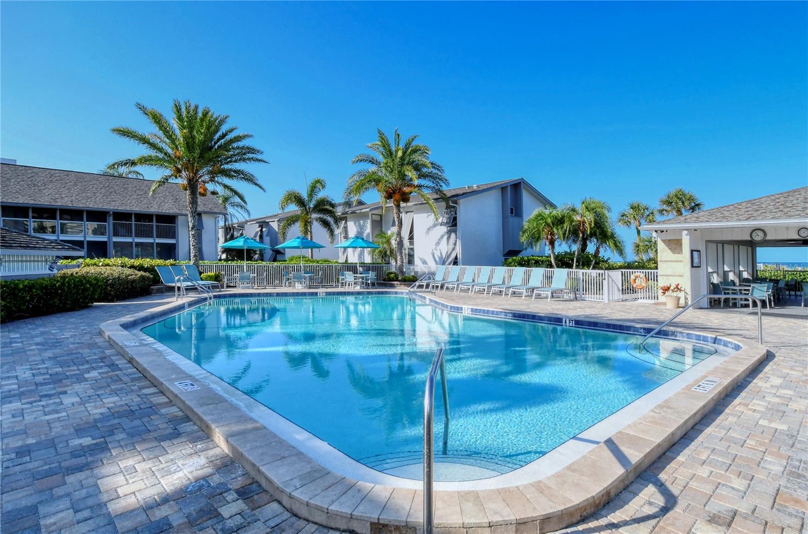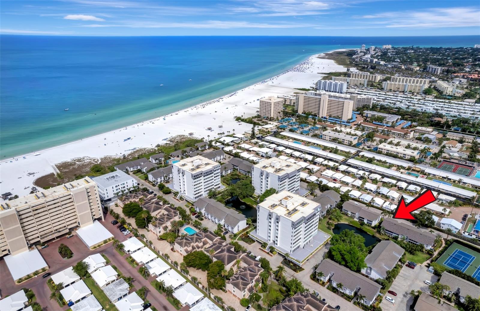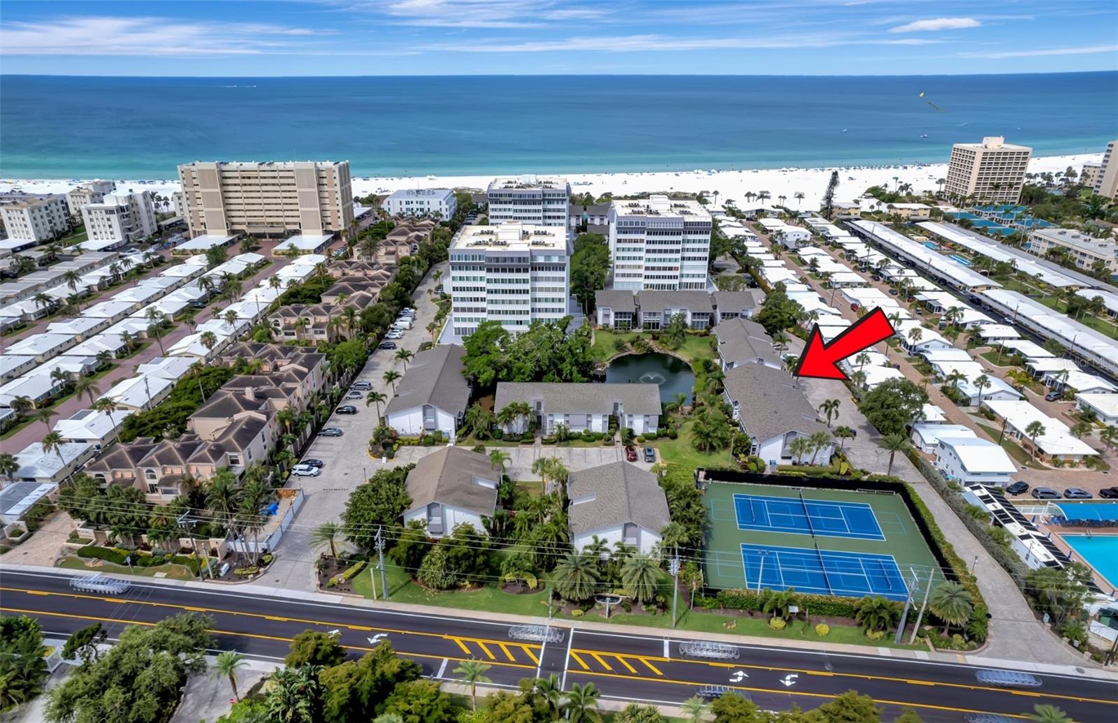 This delightful unit is just a short stroll from the tennis/pickelball courts, pool and siesta key private access beach, nestled in a quiet Gulf-side location. This 2 bedroom 2 bath condo is positioned upstairs on the 2nd floor, it offers serene views of one of the picturesque pond within the Peppertree complex. The unit has consistently generated rental income during peak season, or you could choose to enjoy it as your own beach retreat during the off-season. Updates include a renovated kitchen, bathrooms, and flooring. The spacious master bedroom comfortably accommodates a king-size bed and features a walk-in closet. The unit is well-maintained and comes with a full-size washer and dryer, a newer A/C unit 2019 and a private storage unit right outside on your back patio. It’s offered turnkey furnished and ready for occupancy, with your own dedicated parking space. Peppertree’s standout amenities include direct Gulf-to-Bay access, a fishing pier, tennis and pickle ball courts, two heated pools, two clubhouses, BBQ grills throughout the community, beach chairs, car wash areas, and on-site management, including a rental program. This unit is high and dry and suffered no storm damage.