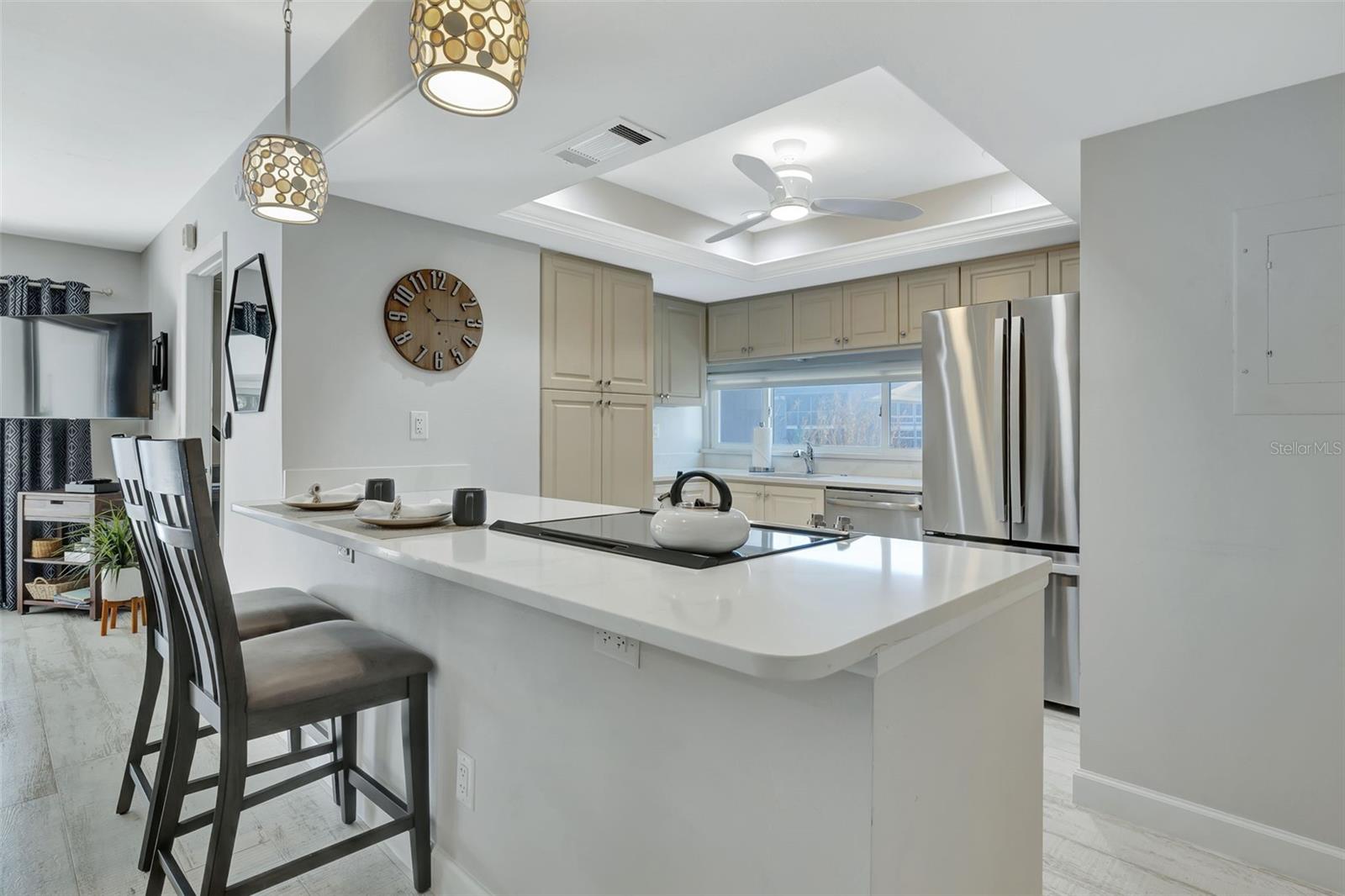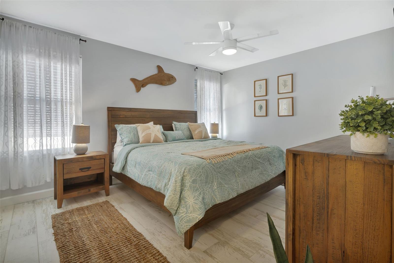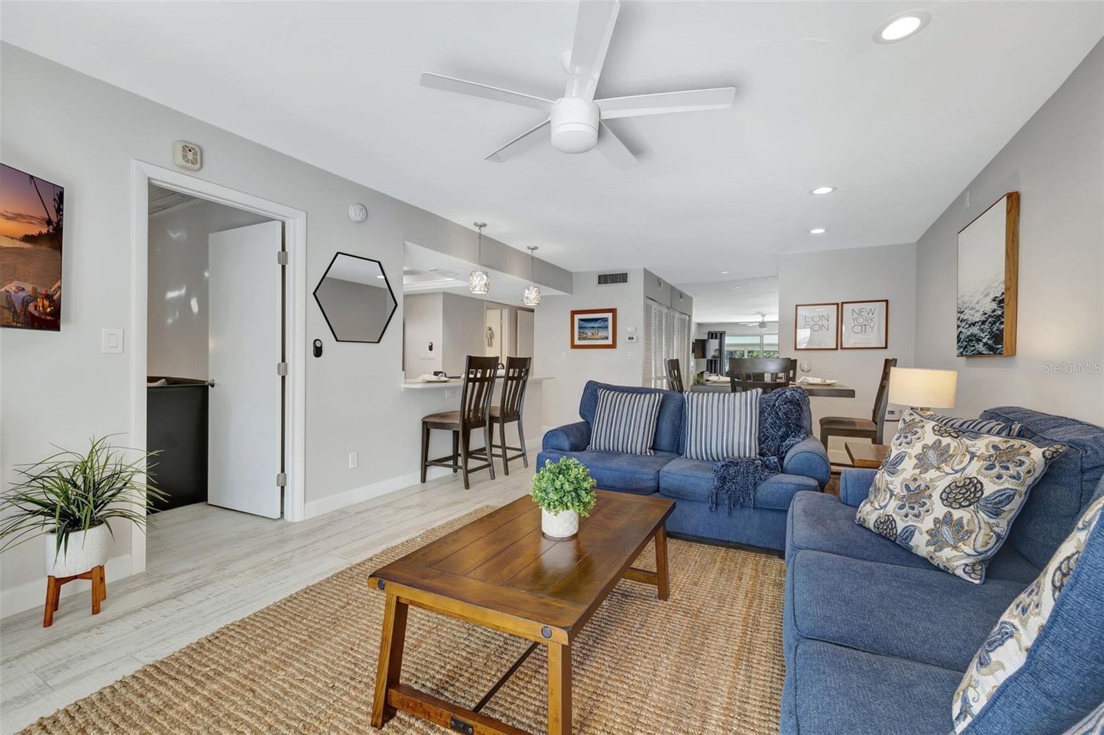 This delightful unit is just a short stroll from the tennis/pickelball courts, pool and siesta key private access beach, nestled in a quiet Gulf-side location. This 2 bedroom 2 bath condo is positioned upstairs on the 2nd floor, it offers serene views of one of the picturesque pond within the Peppertree complex. The unit has consistently generated rental income during peak season, or you could choose to enjoy it as your own beach retreat during the off-season. Updates include a renovated kitchen, bathrooms, and flooring. The spacious master bedroom comfortably accommodates a king-size bed and features a walk-in closet. The unit is well-maintained and comes with a full-size washer and dryer, a newer A/C unit 2019 and a private storage unit right outside on your back patio. It’s offered turnkey furnished and ready for occupancy, with your own dedicated parking space. Peppertree’s standout amenities include direct Gulf-to-Bay access, a fishing pier, tennis and pickle ball courts, two heated pools, two clubhouses, BBQ grills throughout the community, beach chairs, car wash areas, and on-site management, including a rental program. This unit is high and dry and suffered no storm damage.