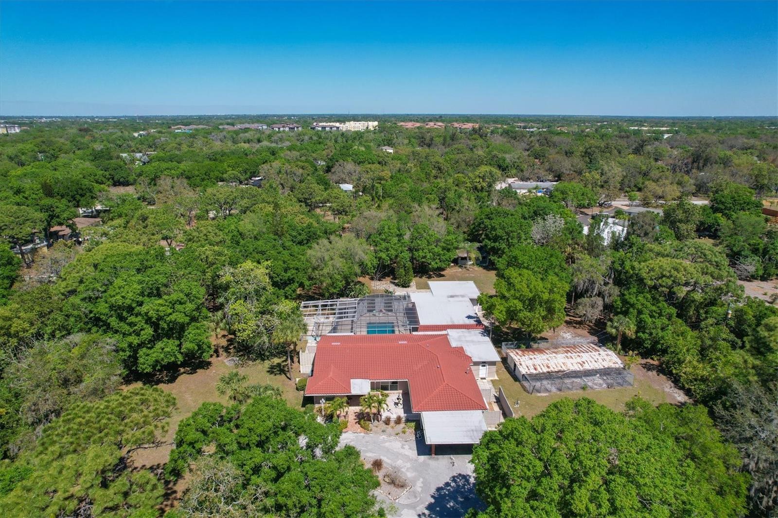 MAGNIFICENT COUNTRY ESTATE IN THE HEART OF TOWN...You will fall in love with this 5950 square foot RUTH RICHMOND Retro HOME built in DeSoto Acres on 2.18 Acres and only 3 miles to downtown Sarasota! Once you enter through the stately gated entrance you are greeted with engaging curb appeal and a beautiful brick courtyard. The 3,000 square foot main home was built with high ceilings, crown molding, terrazzo flooring and has THREE Ensuites, a huge living room & dining room, oversized kitchen with an abundance of cabinetry and a wonderful Florida room with vistas of the 32'x16' caged pool. There is a 3000+/- square foot addition connected with a vestibule and creating a rear courtyard around the pool patio. This additional space includes a huge family/rec room, banquet hall size kitchen, two additional bedrooms, storage room and a room with a private entrance that could be an office, another bedroom or what ever one needs. A TOTAL OF 5958 heated and cooled square feet, 5+ bedrooms (could be up to 7 bedrooms) and 4.5 baths, 2 kitchens, a two car garage, 2 car carport, large chicken coop, huge screened and shaded orchid garden and a concrete and mosaic koi pond. Your new estate has been very well preserved and has a 4.5 year old tile roof, Reverse osmosis/water filtration, central vacuum, new well pump and multiple hard wired smoke detectors. A great home for the extended family, or home office/business, Daycare/nursery, Air BnB, Guest House, Plant nursery, ALF (Assisted Living Facility), etc. DeSoto Acres is a community of "Like size lots" only 3 miles to downtown Sarasota; it is a registered bird sanctuary and has an County overlay allowing horses, goats, chicken and roosters. Close to downtown Sarasota, Bradenton & I-75/UTC. You won't believe your eyes! $1,5478,000