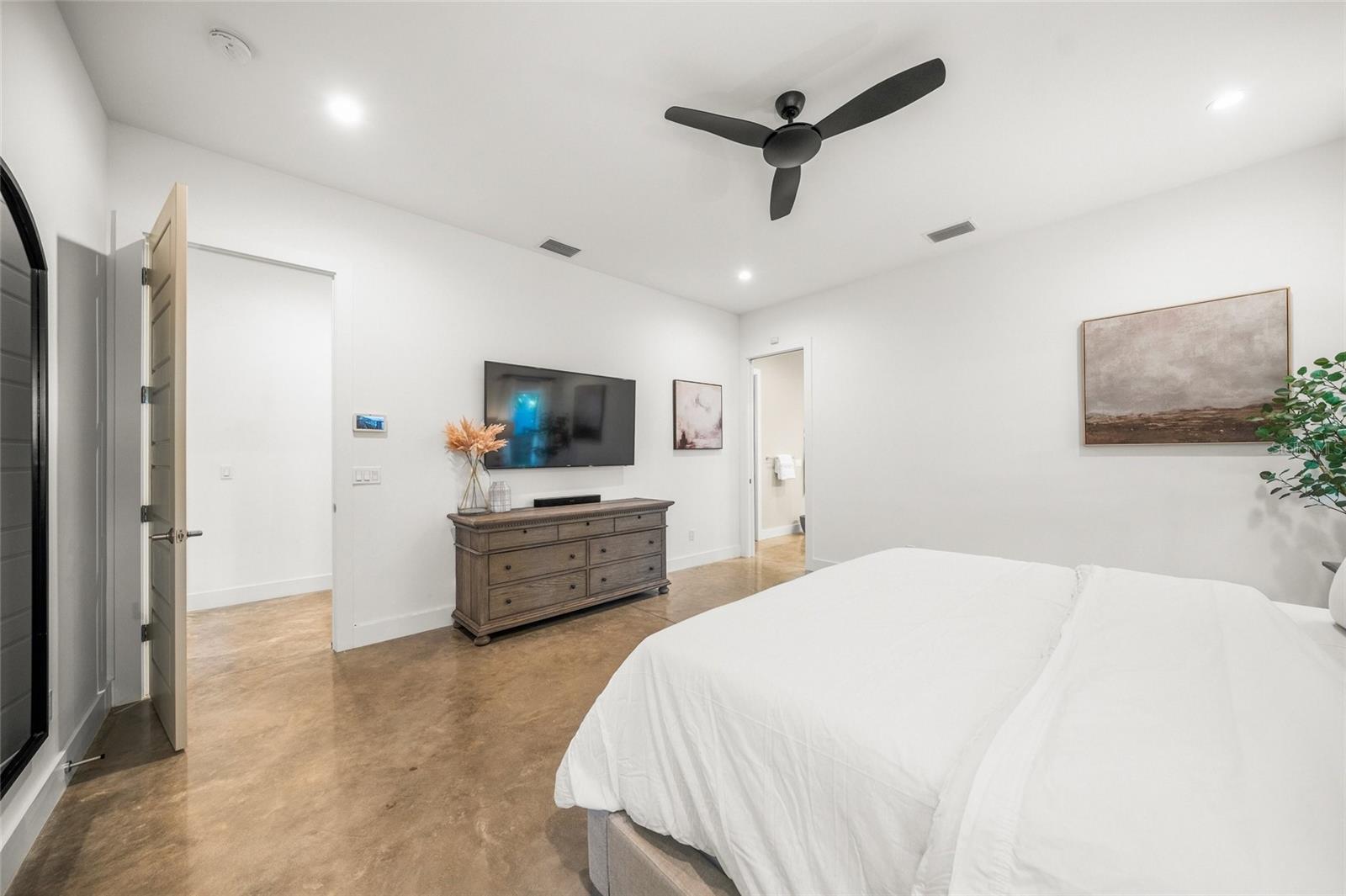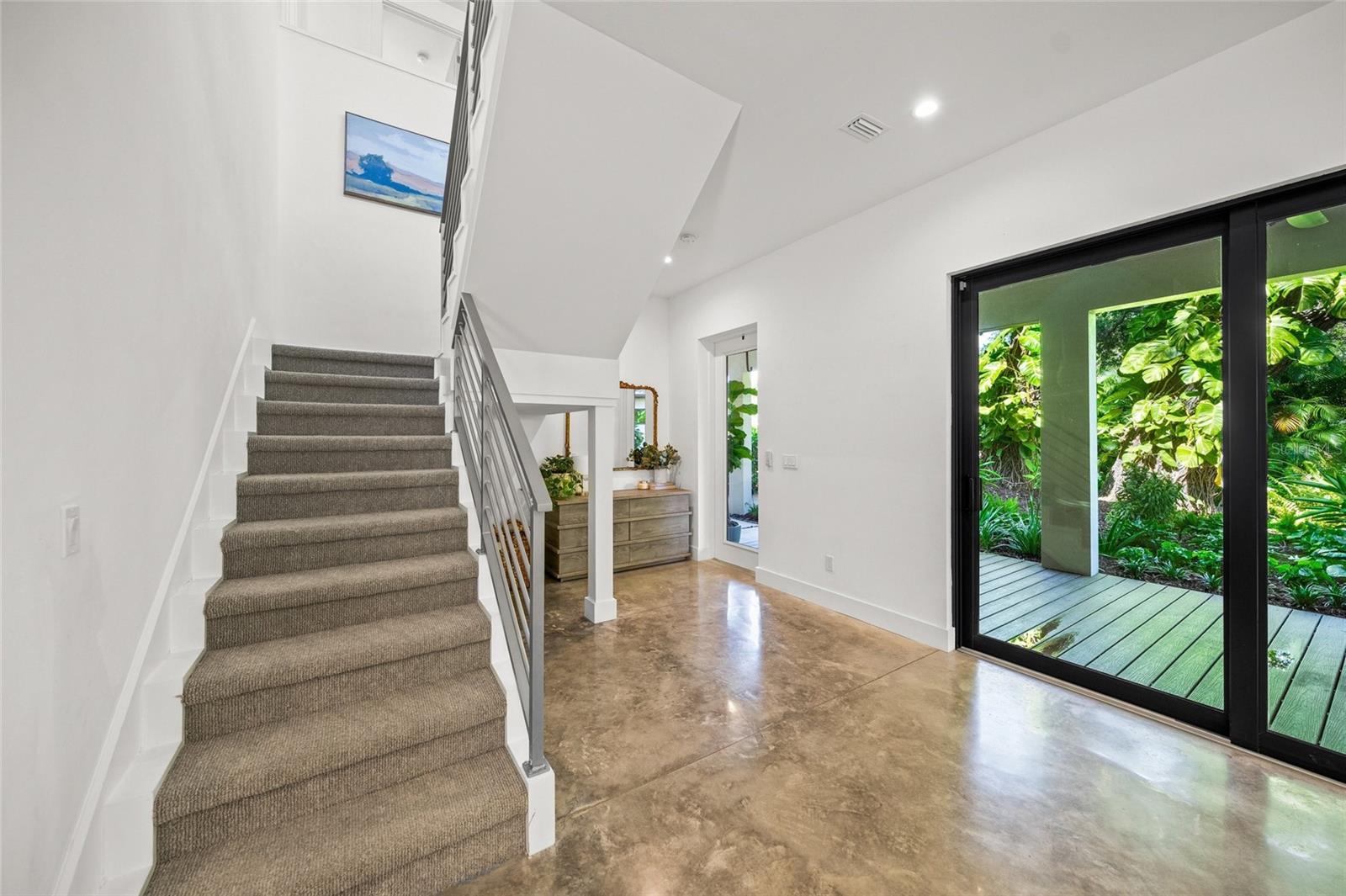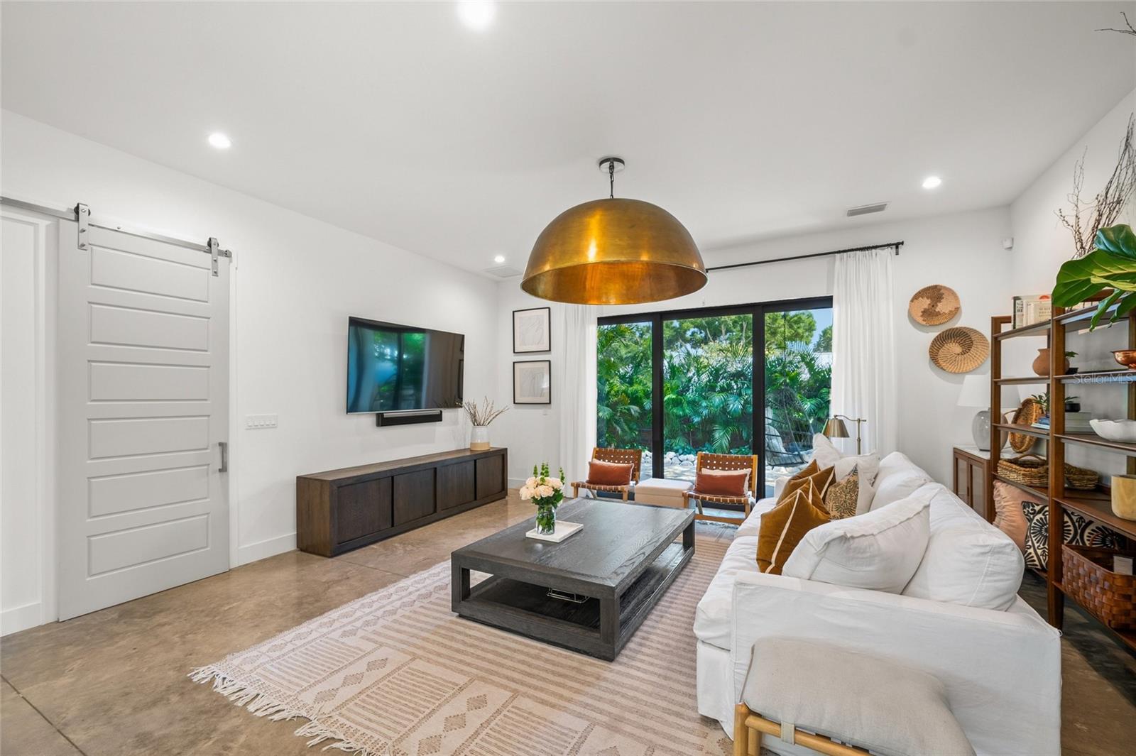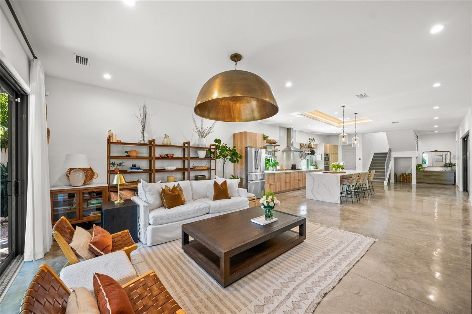 Experience the pinnacle of luxury living in this stunning new two-story masterpiece by Majestik Homes, located east of the trail. This residence combines striking natural beauty with impeccable design and construction, epitomizing peaceful contemporary living. No expense has been spared in creating a timeless blend of comfort and function, with a multitude of premium upgrades. Step into a grand open floor plan, where polished concrete floors reflect natural light, enhancing the modern elements such as modular kitchen cabinets, open shelving, and premium stainless steel appliances. The integration of natural textures seamlessly bridges the indoors with the breathtaking outdoors, featuring meticulously landscaped grounds, a synthetic wood deck with elegant landscape lighting, and magnificent preserved Oaks. Privacy is ensured with a fence and Ipe wood gate, while yearly tree maintenance keeps the surroundings pristine. The first-floor master retreat is a sanctuary of relaxation, boasting a spa-like bath and a private outdoor oasis, enhanced by designer lighting fixtures. The master closet is expertly built out to maximize storage and style. Upstairs, two additional bedrooms and a versatile loft provide the perfect environment for family and guests, offering both flexibility and privacy, with custom closet build outs in each room. Modern conveniences abound, including a Leaf whole home water softener, exterior light fixtures, curtains, WiFi-enabled lighting switches, and a new washer and dryer. Entertainment is effortless with wall mounted TVs and a Sonos system in the living room. A state-of-the-art security system with cameras and fully fenced in ensures peace of mind. Situated in a prime location east of the trail, this home is just moments away from premier cultural venues, upscale shopping, and fine dining. Enjoy the vibrant lifestyle of Southside Village, the pristine beaches of Siesta Key, Southside Elementary an A+ school, Arlington Park, Sarasota Memorial, and finally the dynamic energy of downtown Sarasota. This is more than a home; it's a luxurious retreat that accommodates everyone!