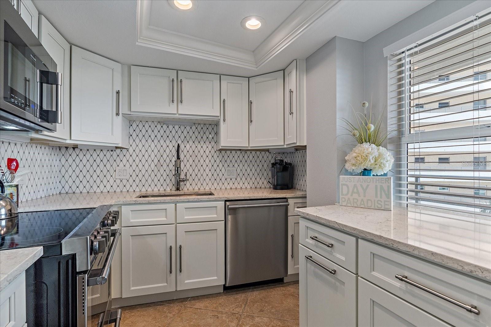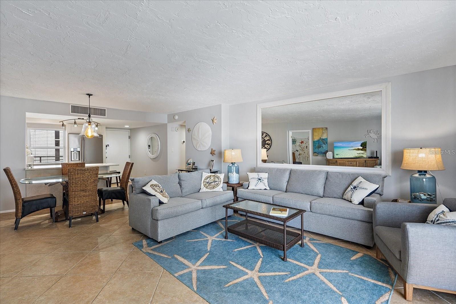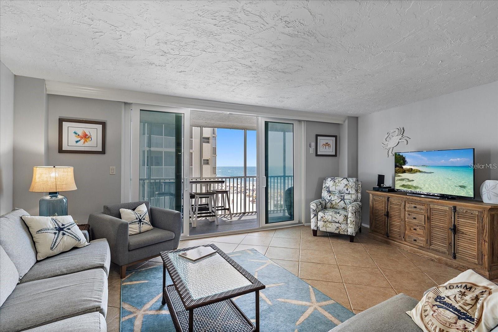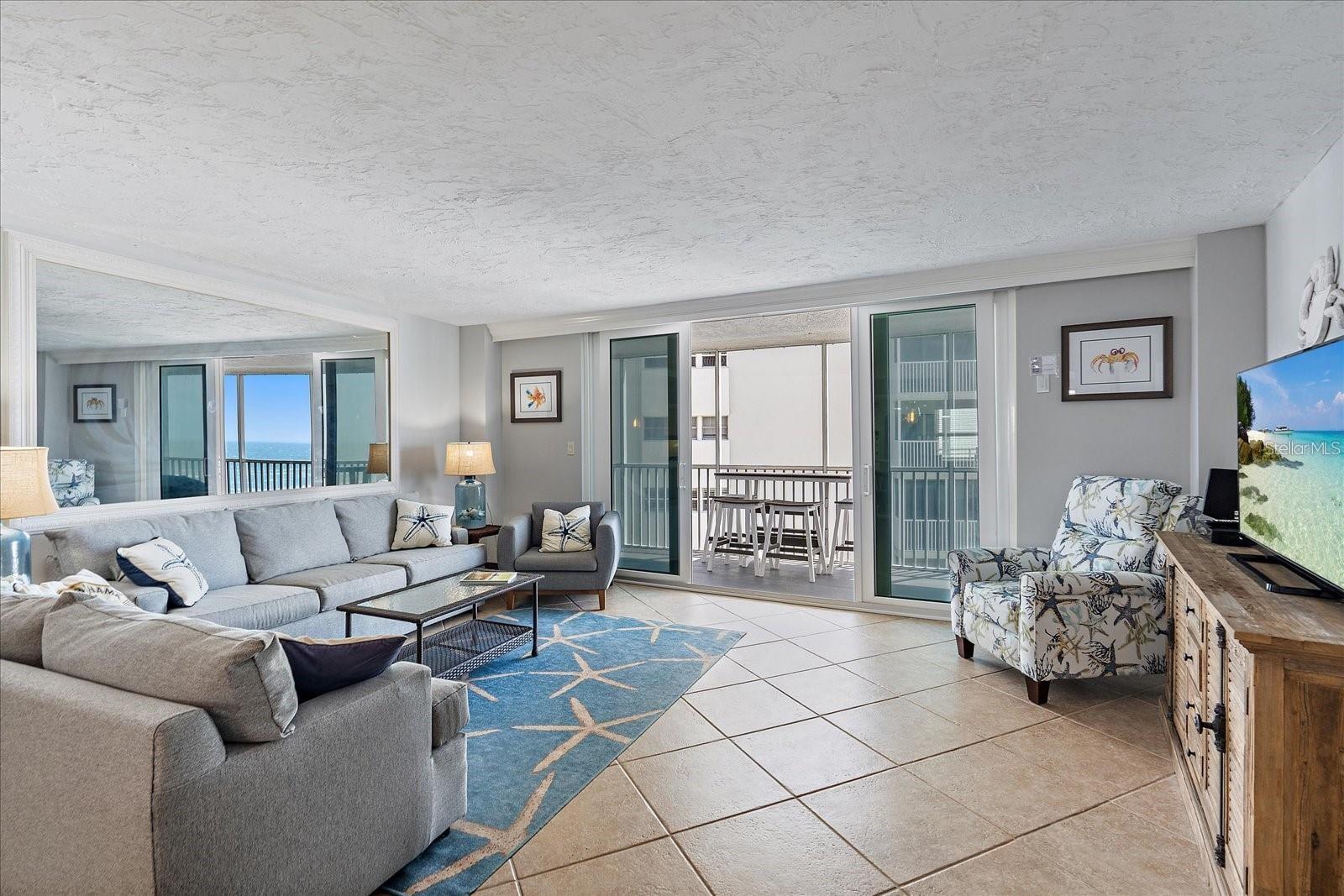 BEACH LOVERS WANTED!!! BEAUTIFUL GULF VIEWS AND SUNSETS AWAIT YOU!!!! SPECTACULAR, Siesta Key Beach Front condo on America's #1 Beach! This absolutely incredible 2 BRM/2 BATH 5th floor end unit oasis, a once in a lifetime opportunity. Exquisite renovations completed Dec. 2021. This modern beach condo is beautifully decorated, high end professional appliances and furnishings only to be out done by the incredible beach and gulf views. Large Master w/gorgeous ensuite bath, double vanity, walk-in glass shower and large walk-in closet for extra storage. 2nd bedroom, 2 queen size beds and large closet with access to lanai. Screened in Lanai, new hurricane sliders, new hurricane windows just installed and new AC unit just installed. Beautiful open kitchen with quartz countertops, custom cabinets, high end appliances. Large laundry room in unit with new Tankless hot water and electrical panel. 2nd bath has a large walk-in owners closet. This unit is located at the very desirable and private south end of the tower. Private Beach, 2 community pools and BBQ area with rentals in place for 2025. THIS IS A MUST SEE.... CRYSTAL BLUE WATERS AWAIT YOU
