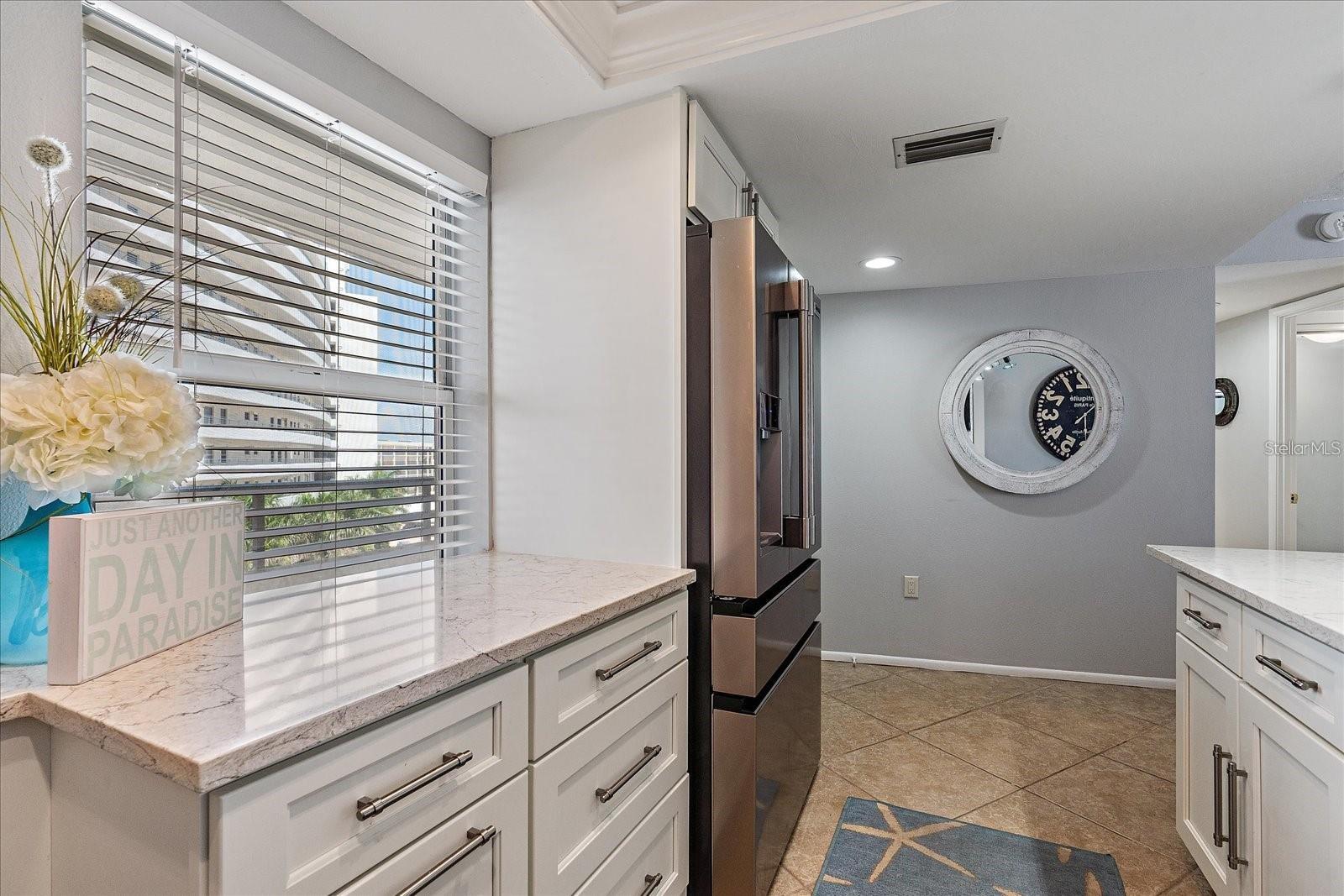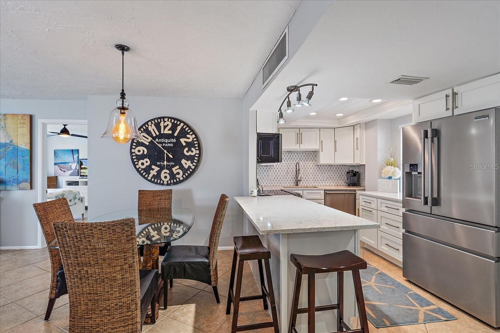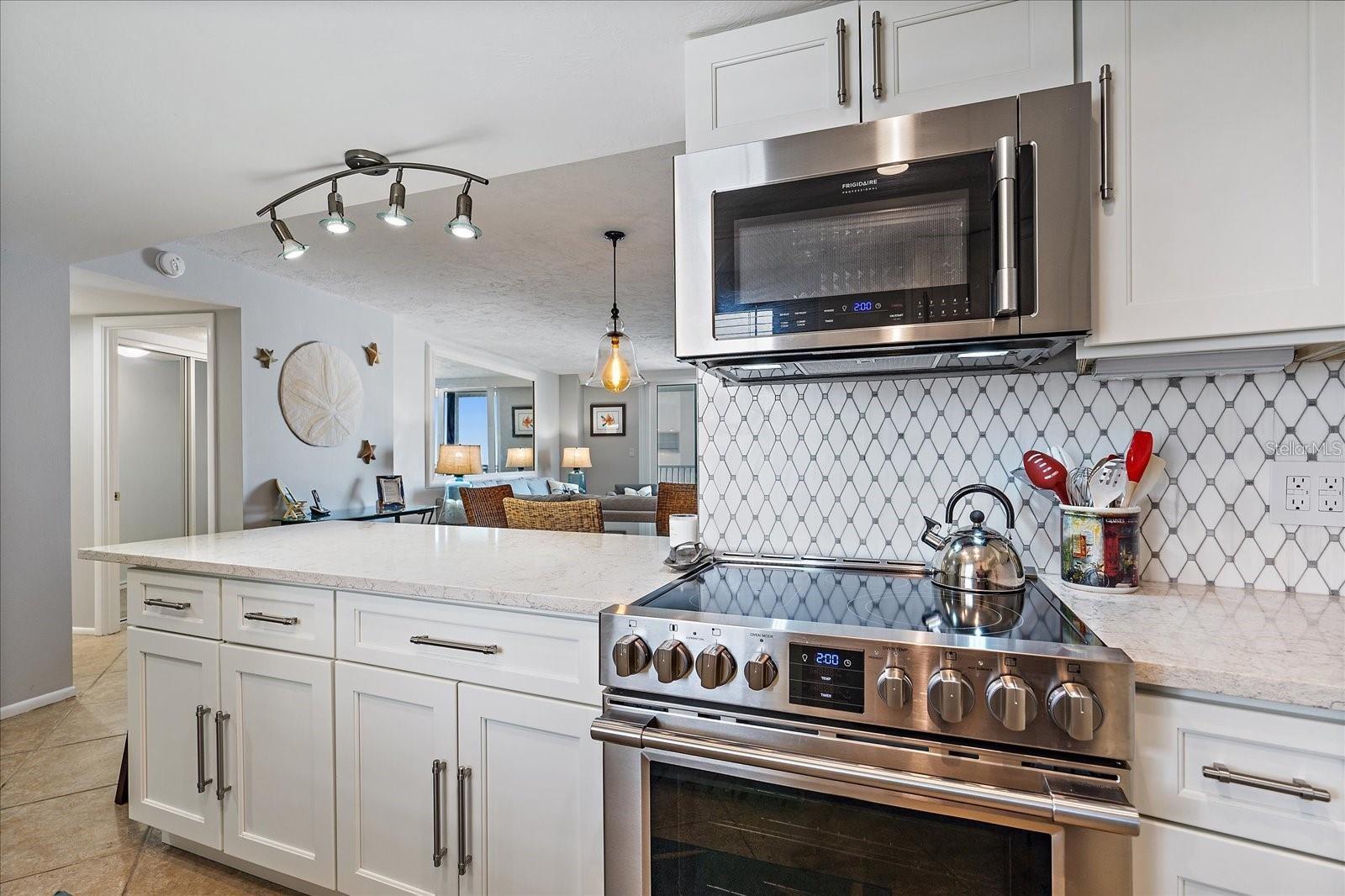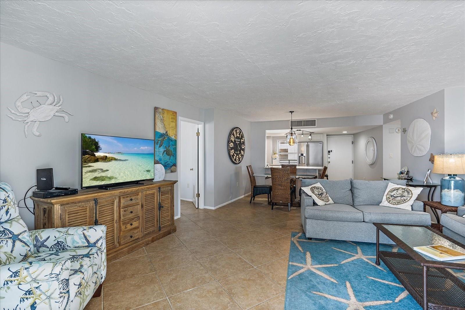 BEACH LOVERS WANTED!!! BEAUTIFUL GULF VIEWS AND SUNSETS AWAIT YOU!!!! SPECTACULAR, Siesta Key Beach Front condo on America's #1 Beach! This absolutely incredible 2 BRM/2 BATH 5th floor end unit oasis, a once in a lifetime opportunity. Exquisite renovations completed Dec. 2021. This modern beach condo is beautifully decorated, high end professional appliances and furnishings only to be out done by the incredible beach and gulf views. Large Master w/gorgeous ensuite bath, double vanity, walk-in glass shower and large walk-in closet for extra storage. 2nd bedroom, 2 queen size beds and large closet with access to lanai. Screened in Lanai, new hurricane sliders, new hurricane windows just installed and new AC unit just installed. Beautiful open kitchen with quartz countertops, custom cabinets, high end appliances. Large laundry room in unit with new Tankless hot water and electrical panel. 2nd bath has a large walk-in owners closet. This unit is located at the very desirable and private south end of the tower. Private Beach, 2 community pools and BBQ area with rentals in place for 2025. THIS IS A MUST SEE.... CRYSTAL BLUE WATERS AWAIT YOU