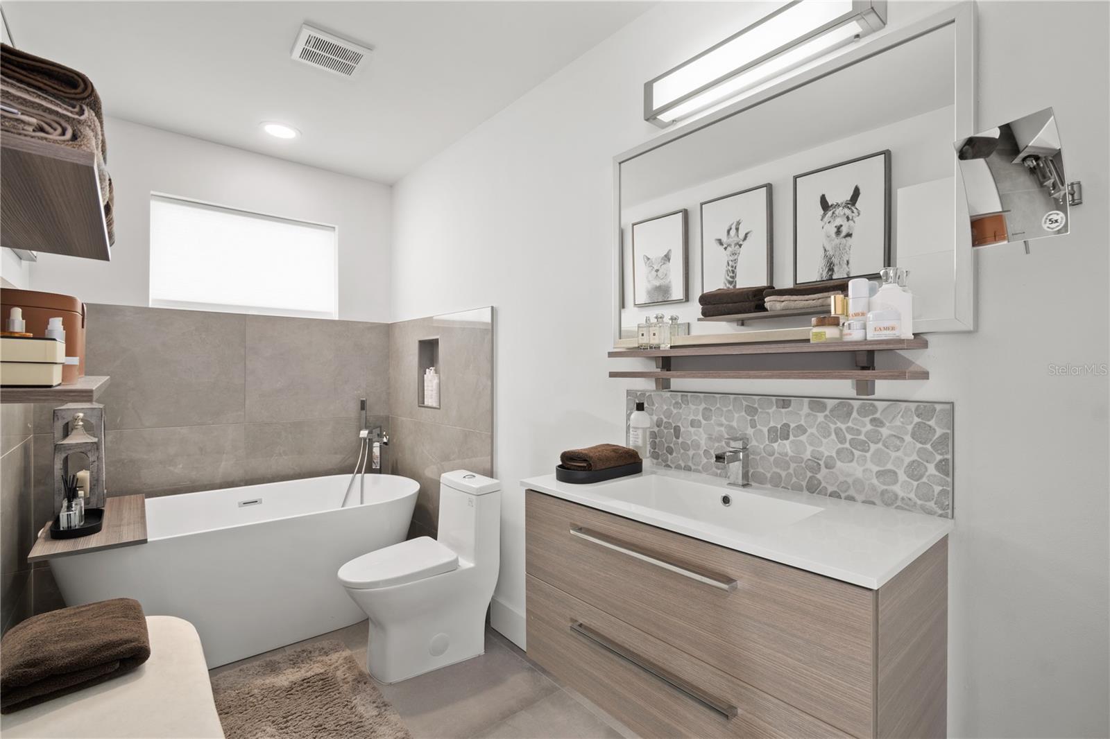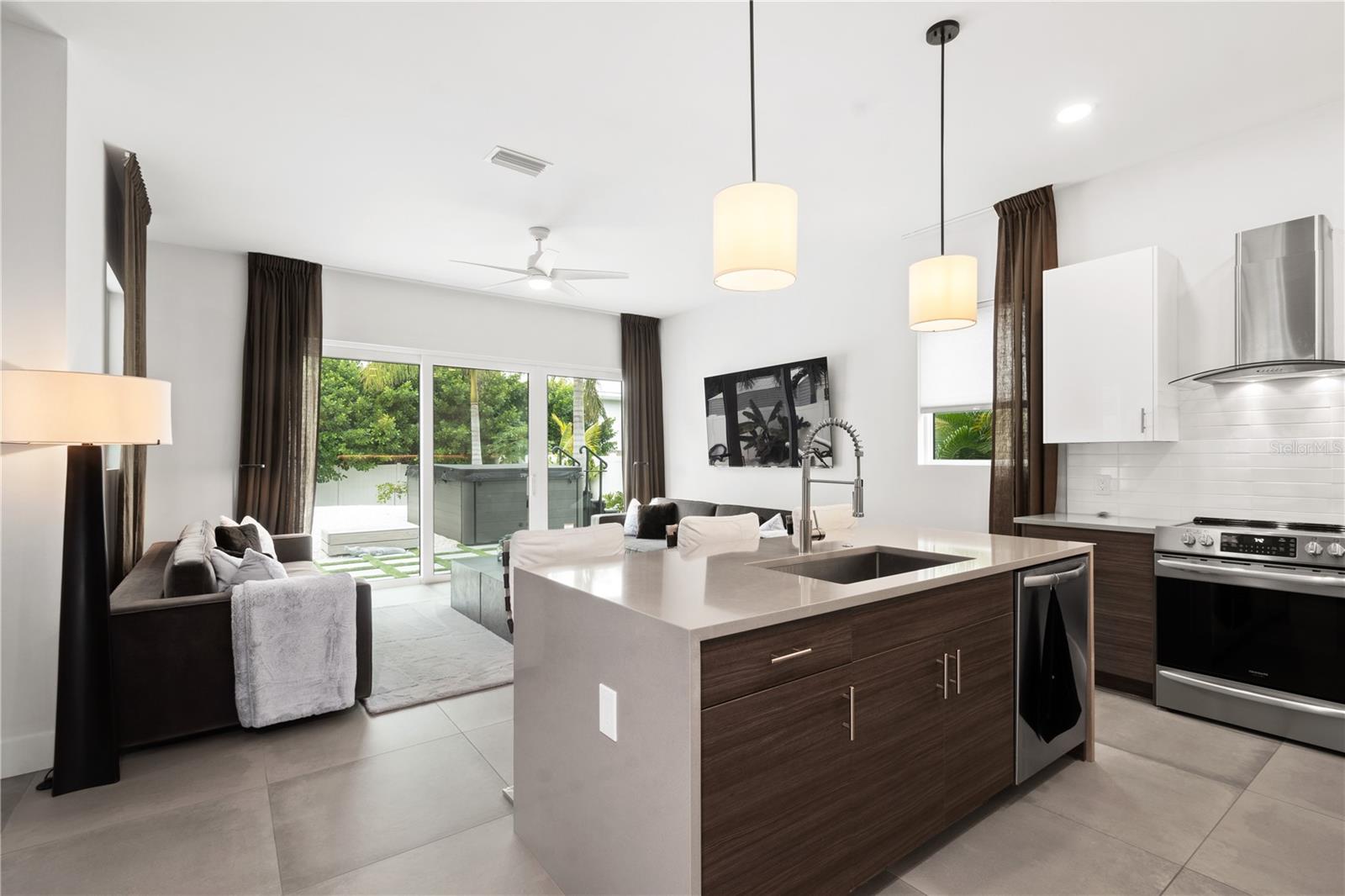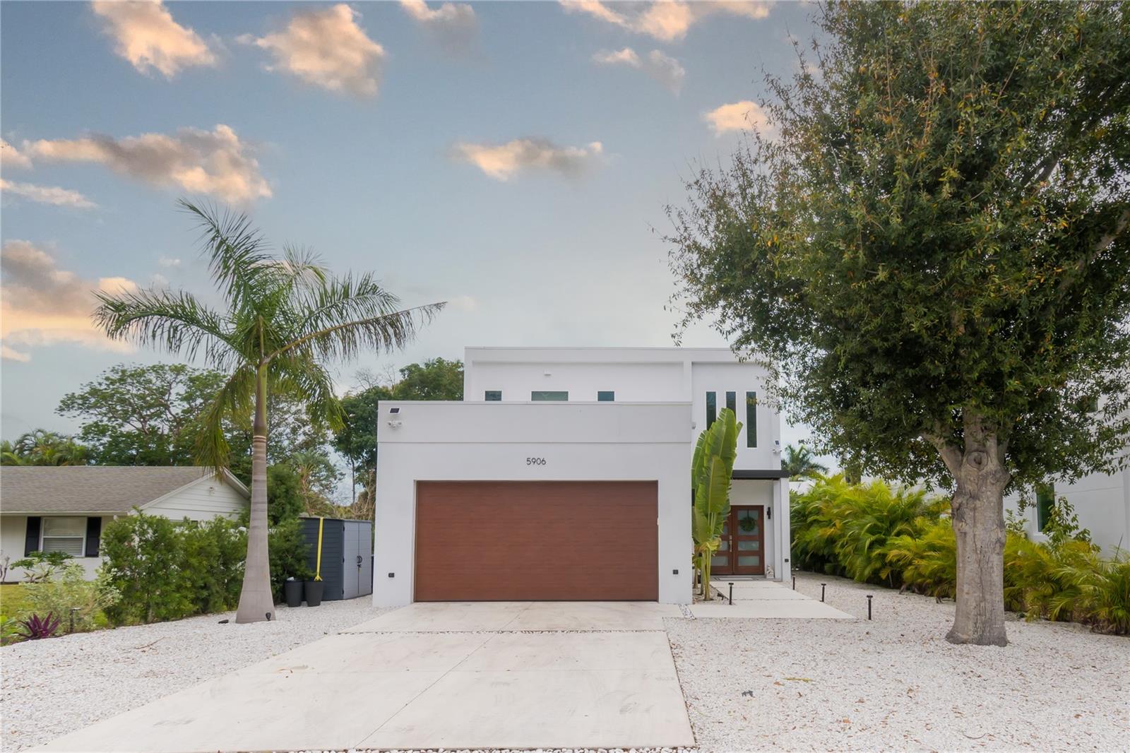 Modern Elegance in Prime West of Trail Location – Minutes from Siesta Key Welcome to 5906 Larchwood Avenue – a stunning, newly built 3-bedroom, 3-bathroom contemporary residence that offers the perfect blend of luxury, functionality, and location. Situated in Sarasota’s highly desirable West of Trail neighborhood, this home is just minutes from the world-famous Siesta Beach and vibrant Downtown Sarasota. Step inside and be welcomed by a bright, two-story foyer with a beautiful oak staircase and soaring ceilings. The open-concept floor plan flows seamlessly between the gourmet kitchen, dining area, and family room — all connected by oversized sliding glass doors that lead to a spacious covered lanai. Ideal for indoor-outdoor living! The main floor includes a guest bedroom with a full bathroom and dual access, perfect for visitors or multigenerational living. Upstairs, the airy landing opens to two additional bedrooms, including a luxurious primary suite featuring two walk-in closets, an oversized shower, a double-sink vanity, a private toilet room, and access to a screened-in balcony. The fenced, tropically landscaped backyard offers total privacy and is pool-ready — with plenty of space for a custom-designed pool, spa, or outdoor kitchen. Highlights: • Built in 2022 to modern codes (energy-efficient, hurricane-resistant) • Two-car garage with paver driveway • Upstairs laundry room with premium washer/dryer • Excellent school district • No HOA Located just steps from Philippi Estate Park, shops, restaurants, and a vibrant farmers market. Whether you’re relaxing at the beach or enjoying the local lifestyle, this home offers the best of Sarasota — move-in ready and waiting for you.